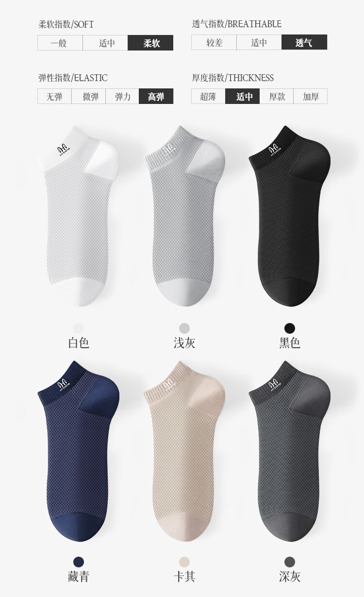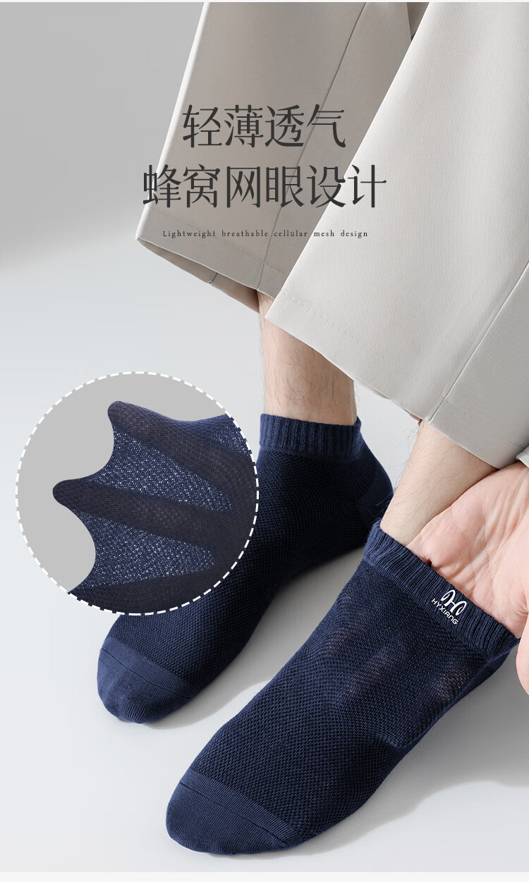 Hengyuanxiang socks men's summer pure cotton breathable mesh thin boat socks men's socks antibacterial and deodorant socks sweat-absorbent casual cotton socks 2 black + 2 dark gray + 2 navy blue - 6 pairs One size fits all
