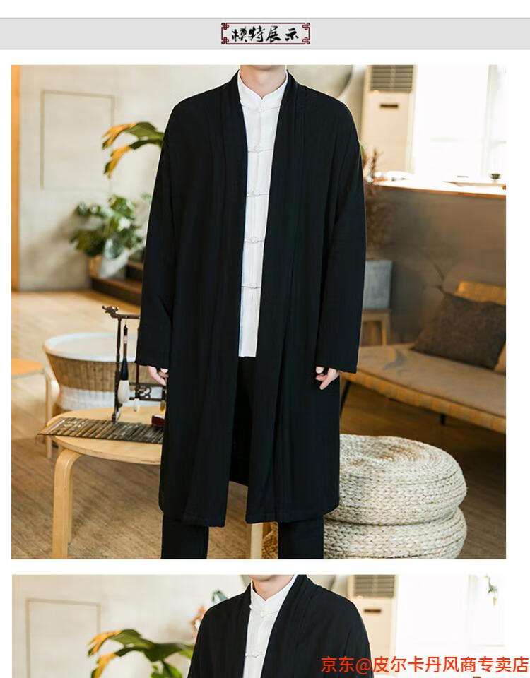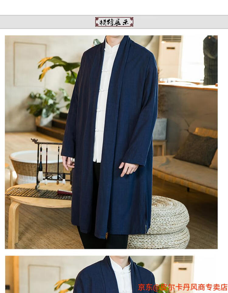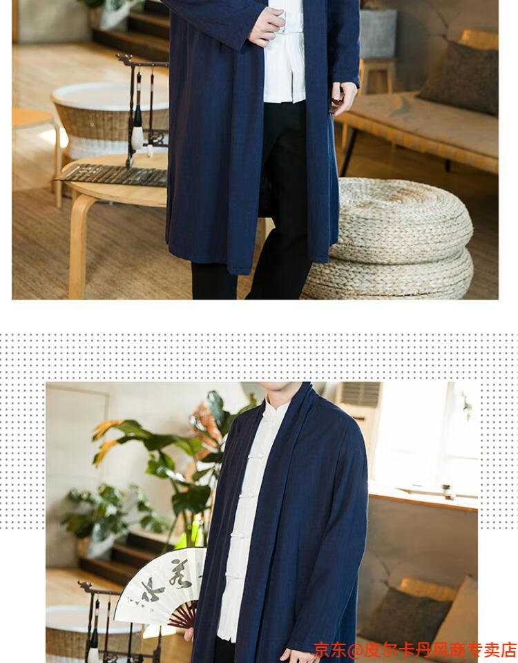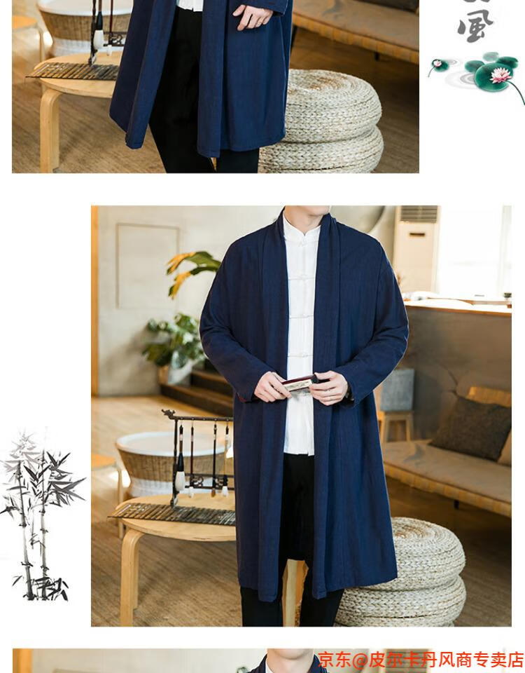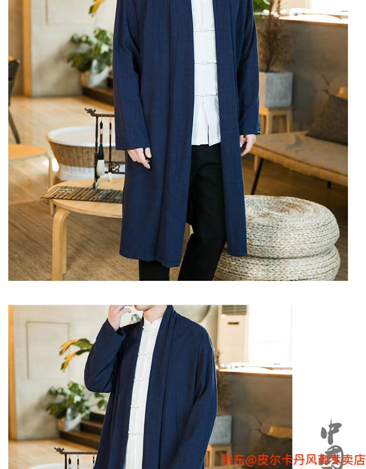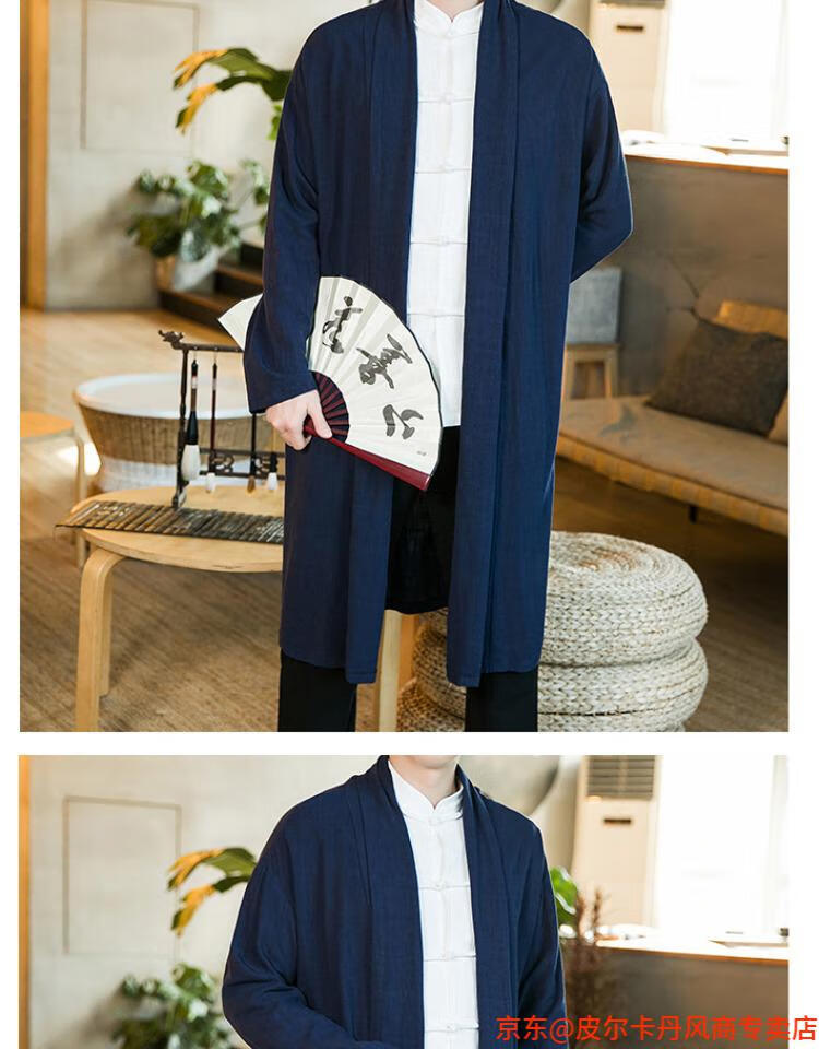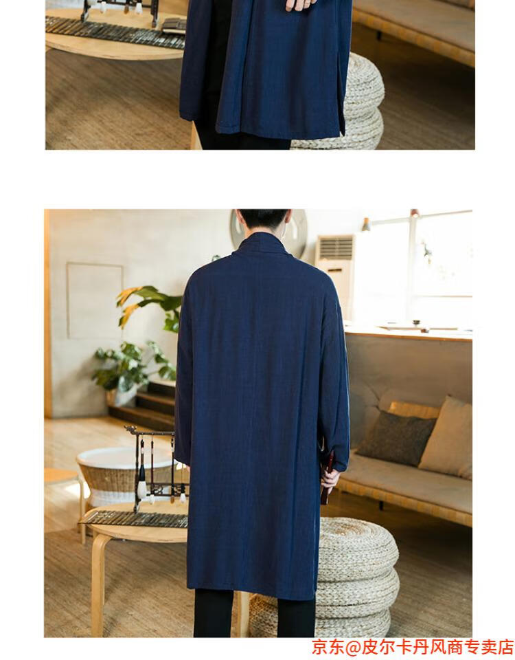 Пьер Карден (pierre cardin) длинная ветровка из хлопка и льна в китайском стиле, мужская свободная повседневная длинная рубашка с лацканами, плащ Ханфу, двубортный повседневный пиджак, темно-синий, M 100-120Jin Jin, вес 0,5 кг.