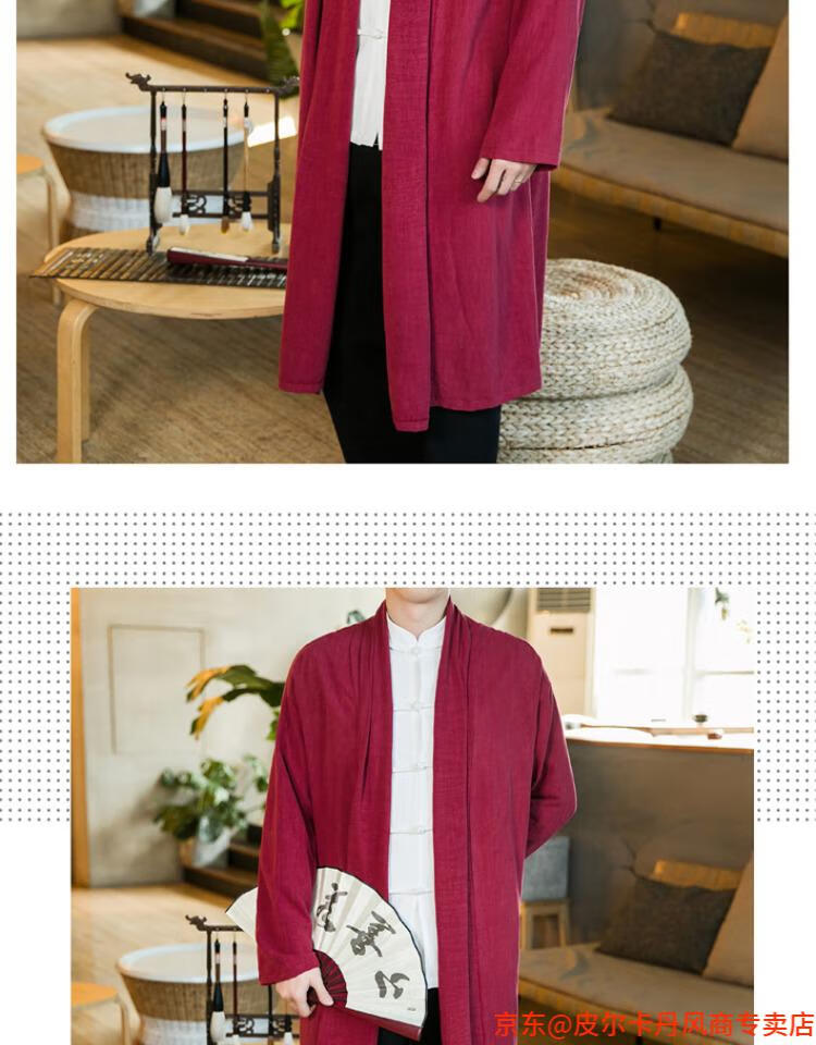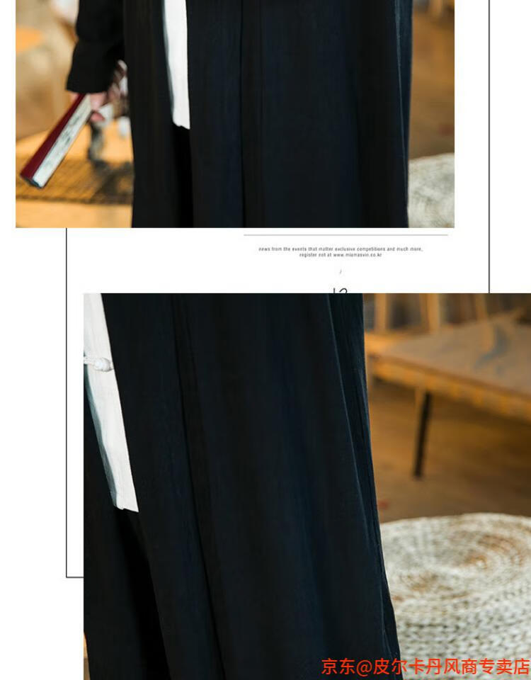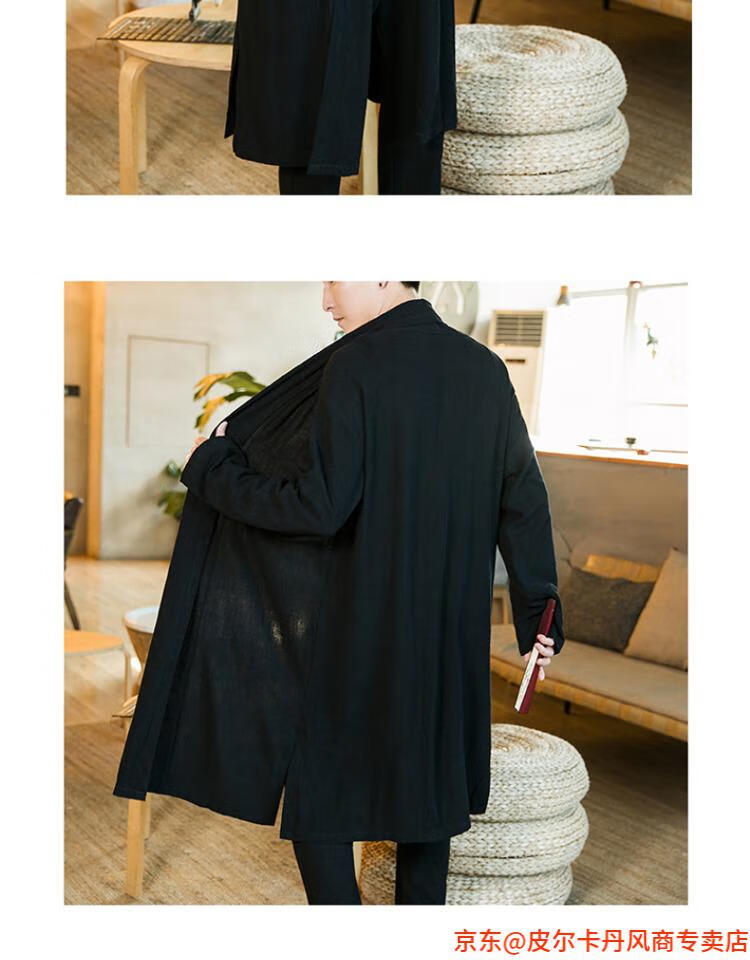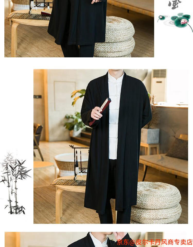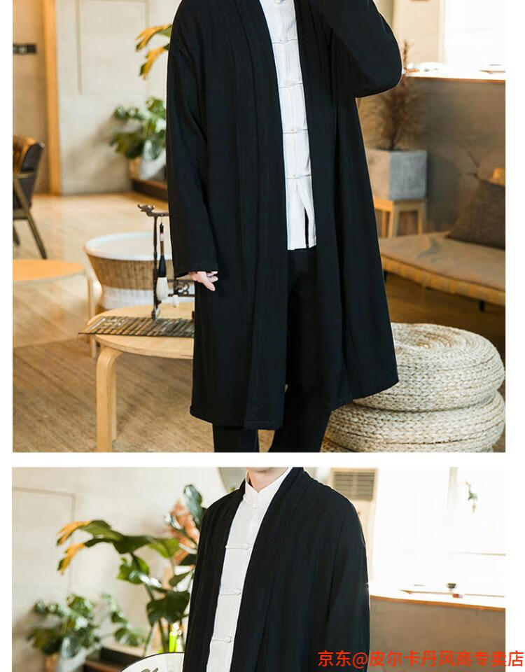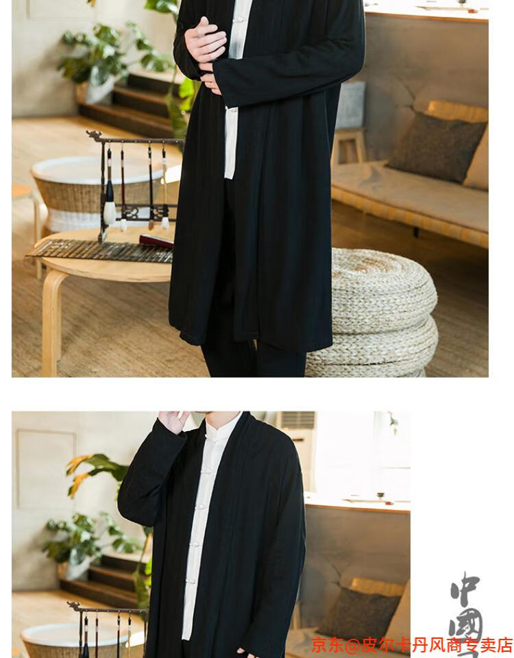 Пьер Карден (pierre cardin) длинная ветровка из хлопка и льна в китайском стиле, мужская свободная повседневная длинная рубашка с лацканами, плащ Ханфу, двубортный повседневный пиджак, темно-синий, M 100-120Jin Jin, вес 0,5 кг.