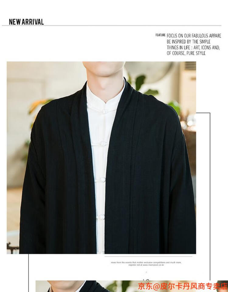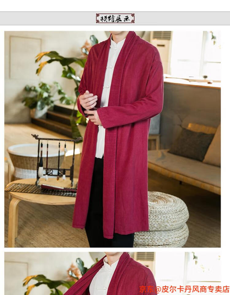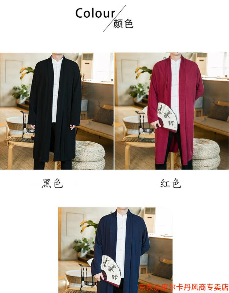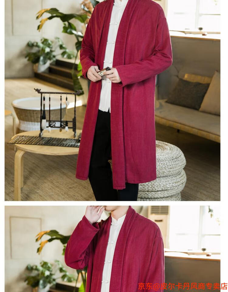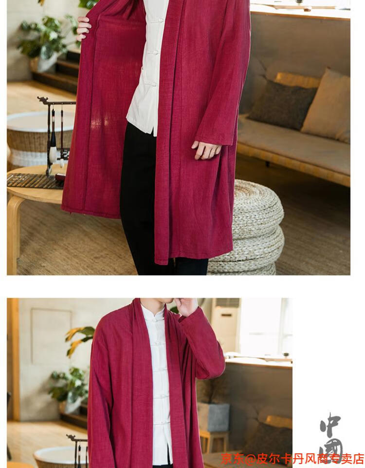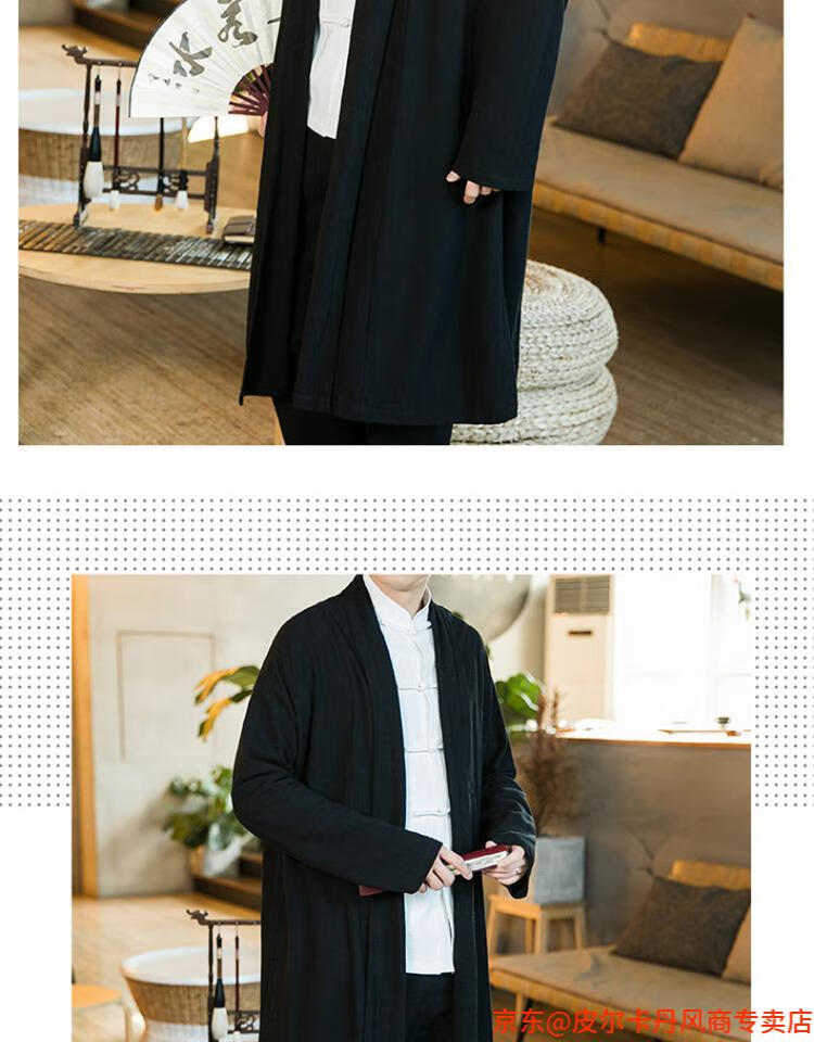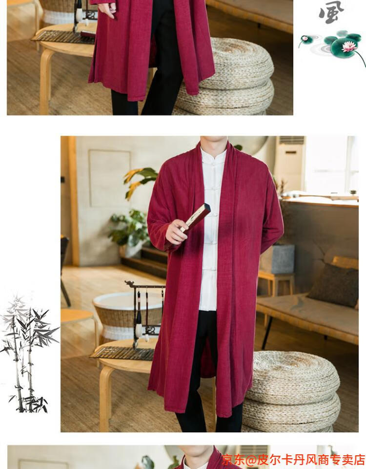 Пьер Карден (pierre cardin) длинная ветровка из хлопка и льна в китайском стиле, мужская свободная повседневная длинная рубашка с лацканами, плащ Ханфу, двубортный повседневный пиджак, темно-синий, M 100-120Jin Jin, вес 0,5 кг.