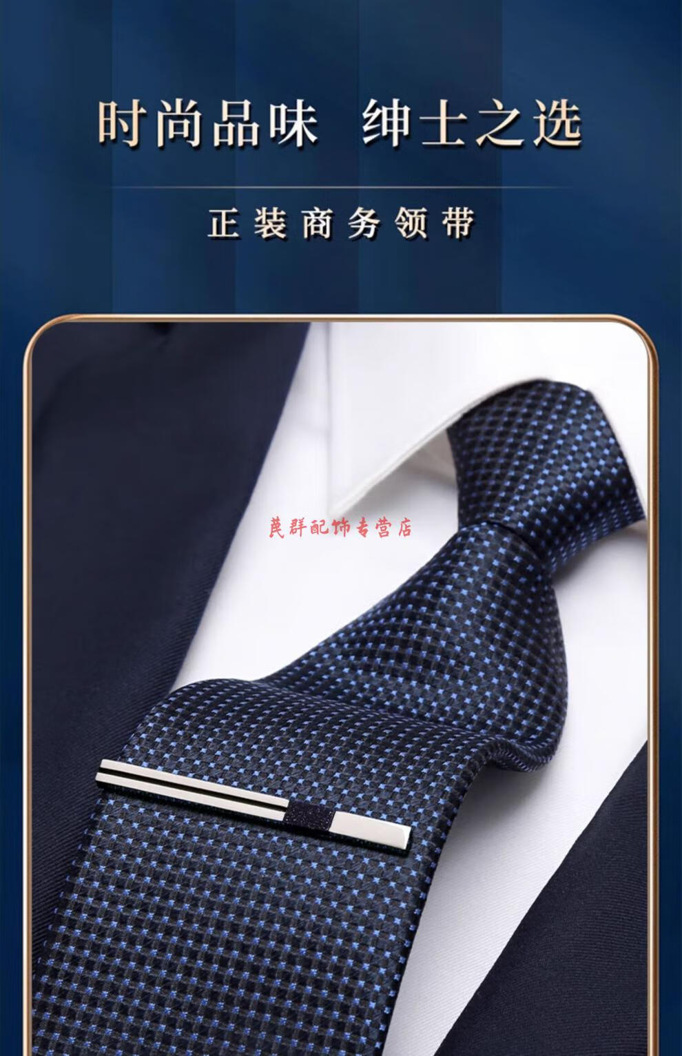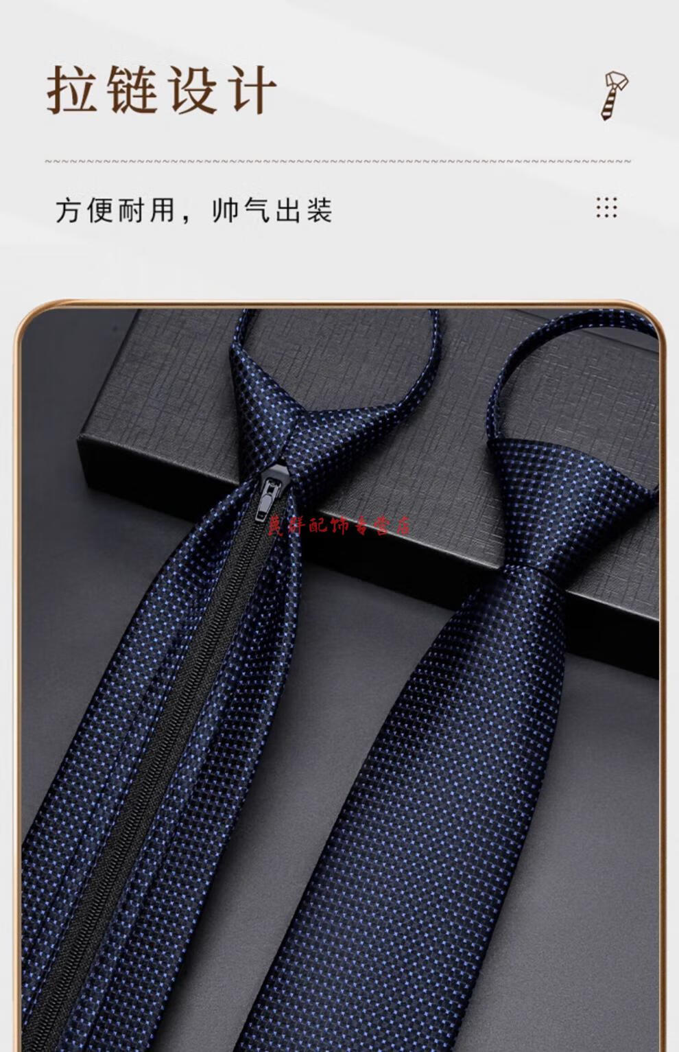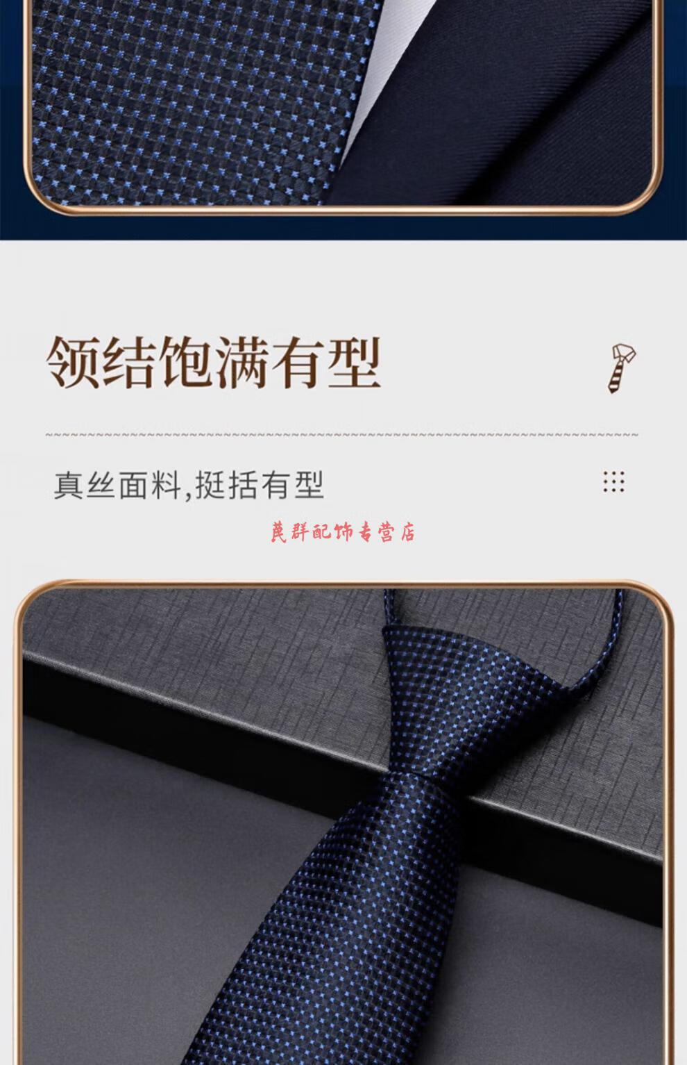 恒源祥男士真丝领带拉链式正装商务面试职业易拉得免打结蓝色桑蚕 藏青暗格领带+领带夹