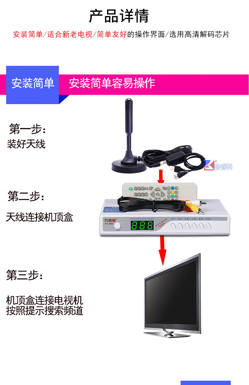 万家旺地面波电视天线电视接收器顶盒无线数字室内天线dtmb机顶盒室内外 单独机顶盒套装(需要自有天线 不带米天线连接线