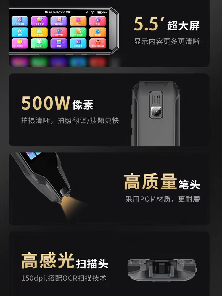 华为机适用英语点读笔小学初中高中生智能学习全科单词扫读词翻译 256G黑4.0寸全科同步教材视投屏