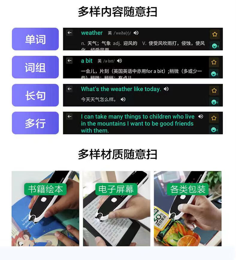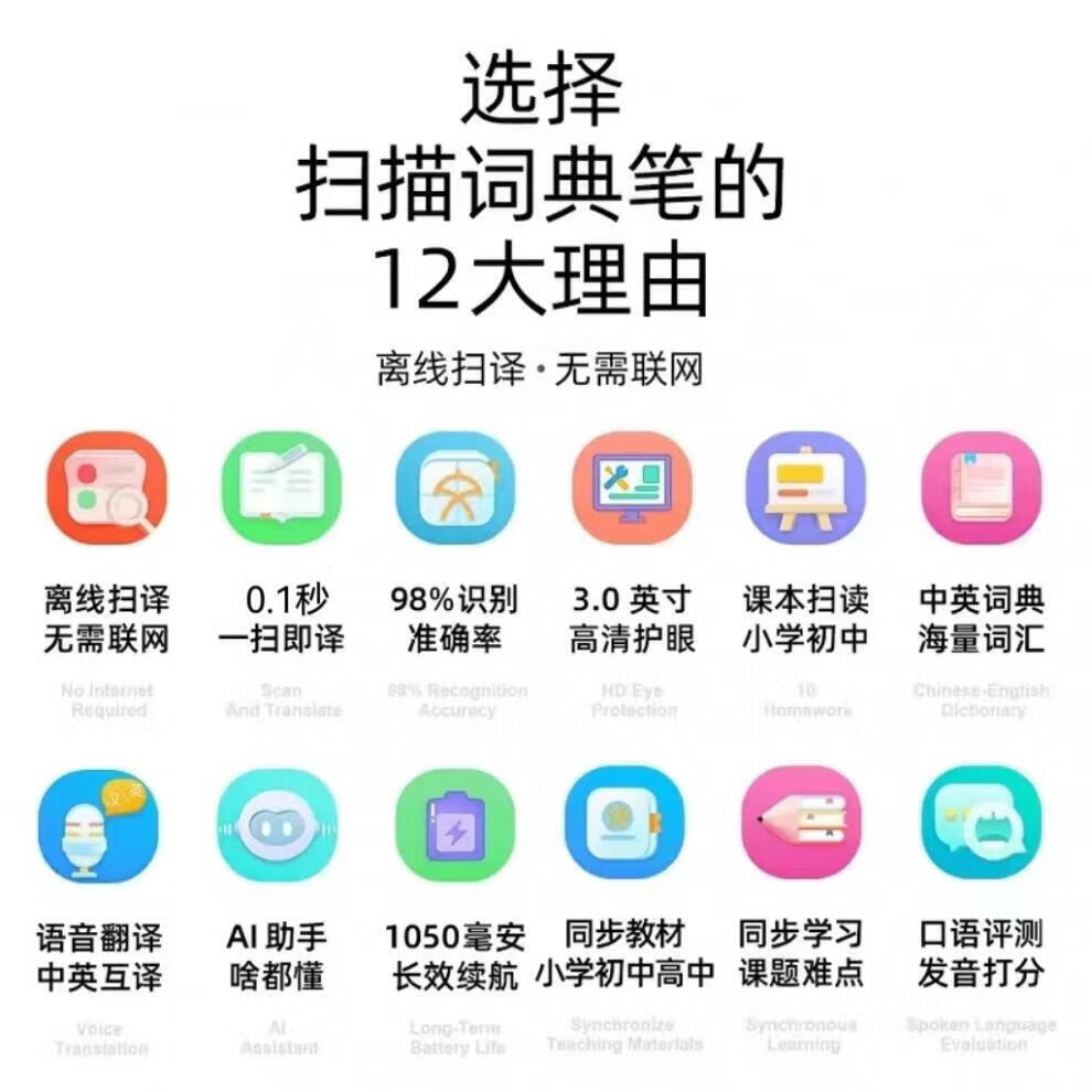 Huawei machine is suitable for reading pen, English scanning pen, translation dictionary pen for reading from first grade to high school, primary school 1-4, Xueba offline model, dedicated for grades 1-9, high-definition screen