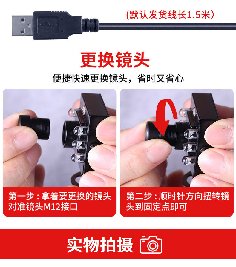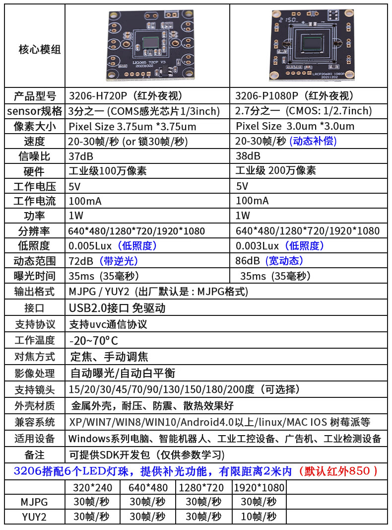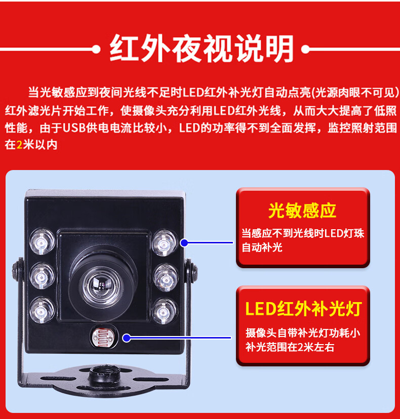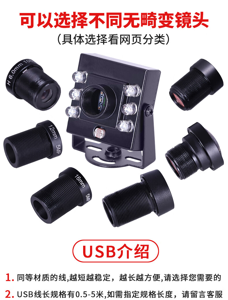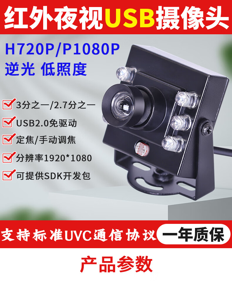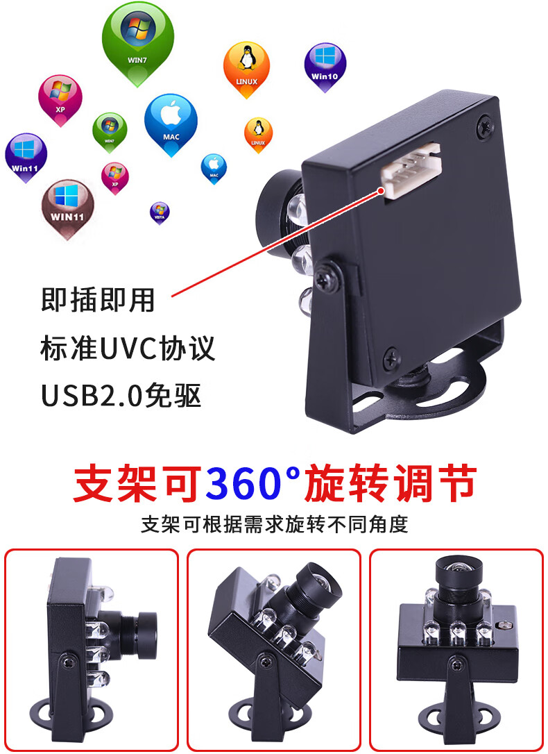 中维奥柯720P100万像素高清红外夜视补光USB2.0摄像头1080P200万像素linux逆光低照度支持二次开发工业相机 H720P_2.9mm100度(无畸变)