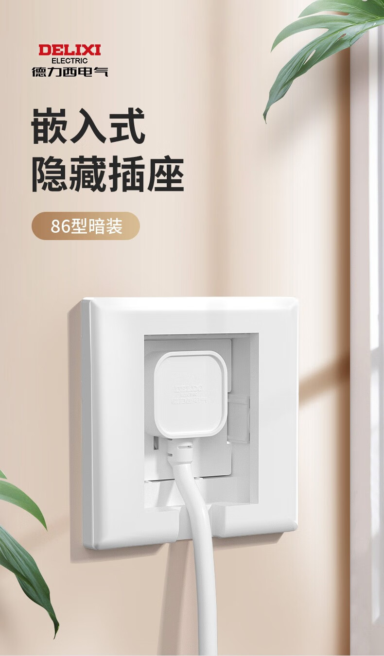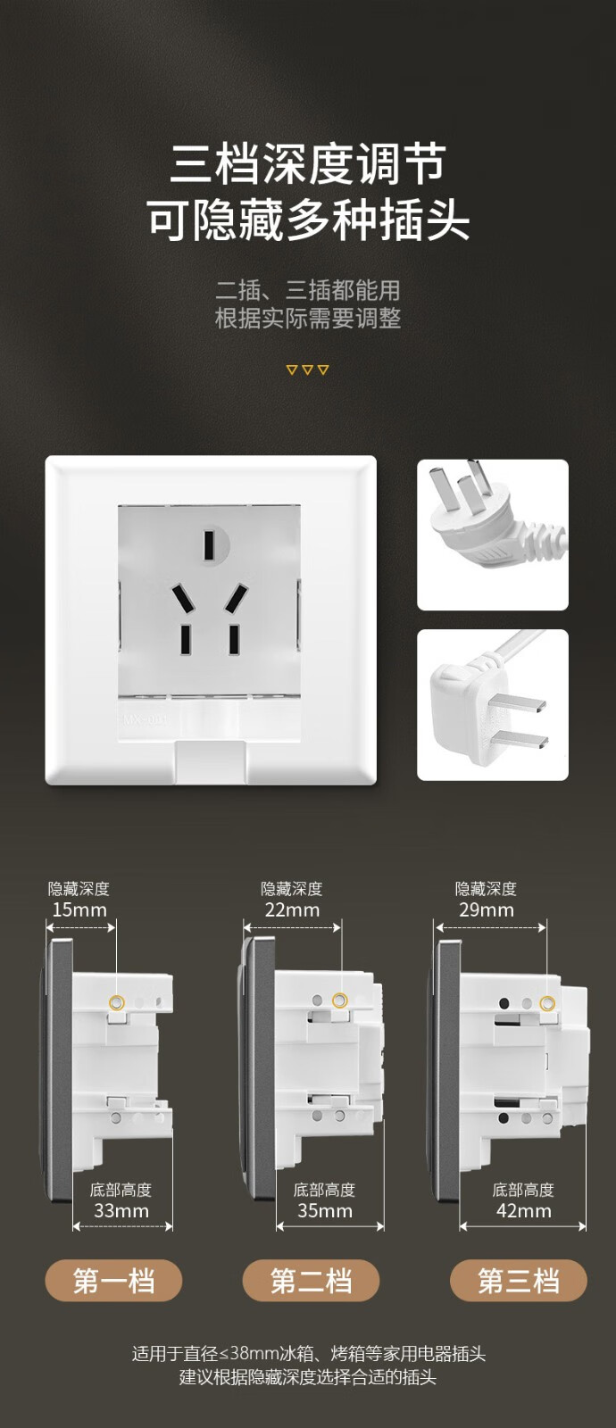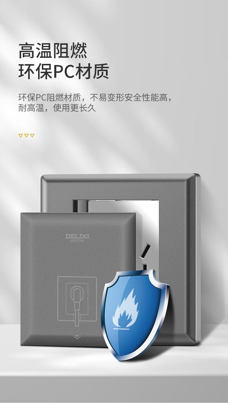 DELIXI Schaltsteckdose Typ 86, Einbausteckdose, tiefenverstellbar, Haushaltsklimaanlage, Kühlschrank, Nachttisch, versteckte Steckdose, klassisch, fünf Löcher, 10 A, Grau
