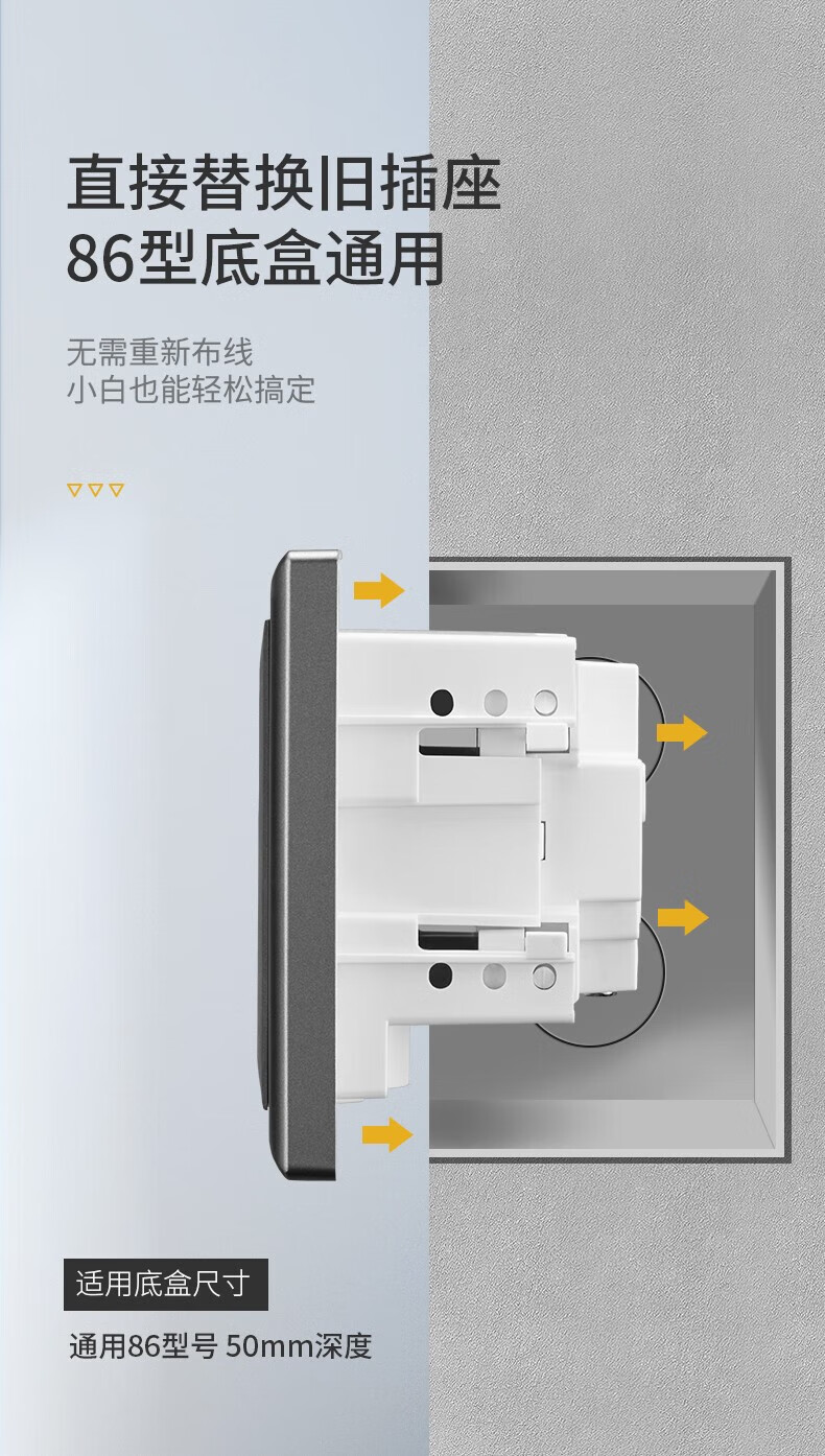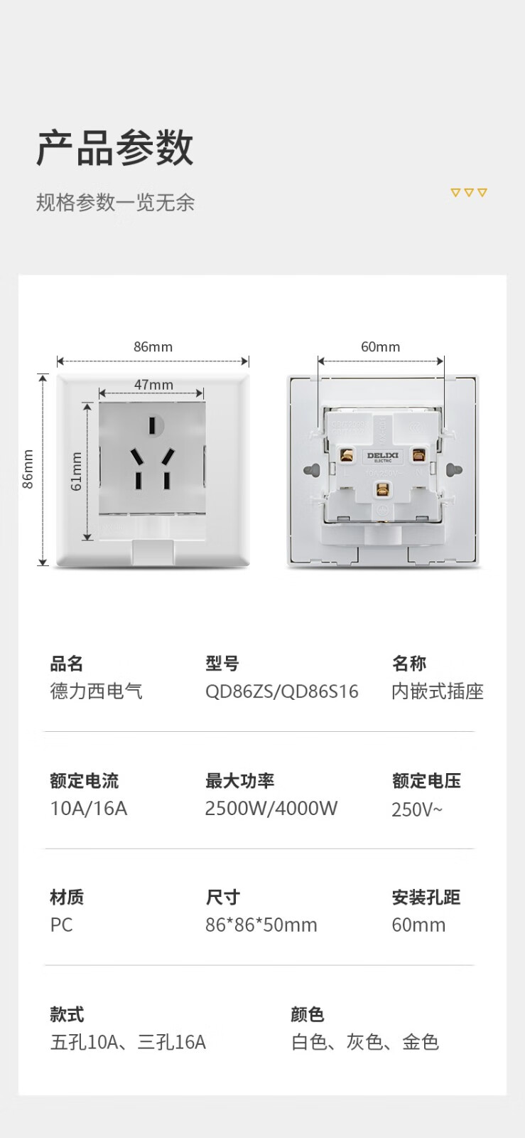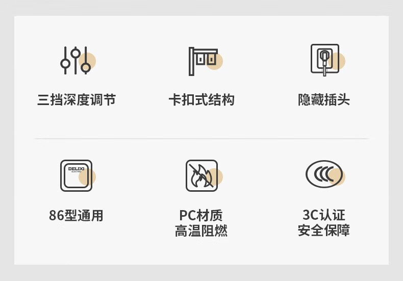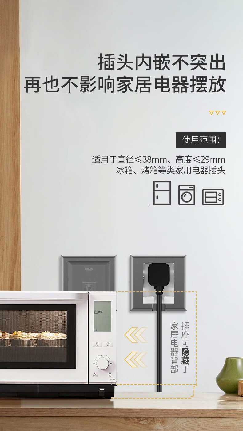 DELIXI Schaltsteckdose Typ 86, Einbausteckdose, tiefenverstellbar, Haushaltsklimaanlage, Kühlschrank, Nachttisch, versteckte Steckdose, klassisch, fünf Löcher, 10 A, Grau