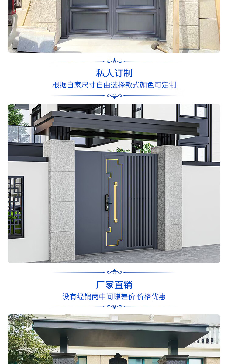 智耀铝合金门楼新中式别墅大门农村自建房铝艺庭院入户门院子定制门头 款式一样式图