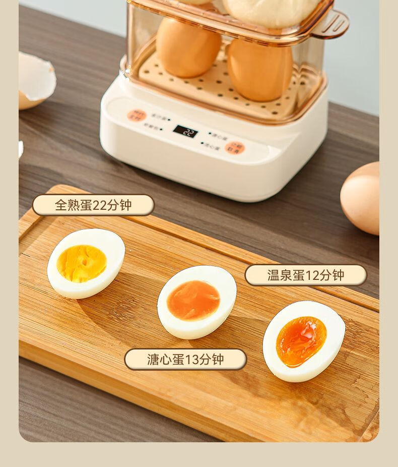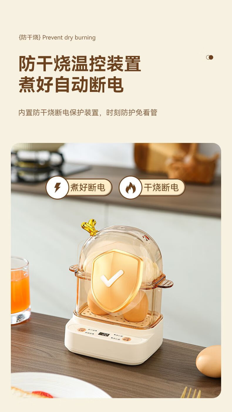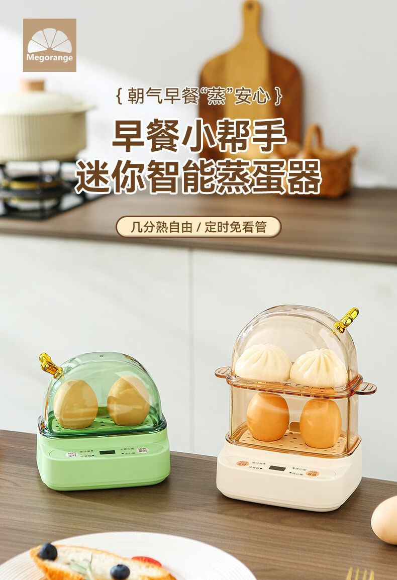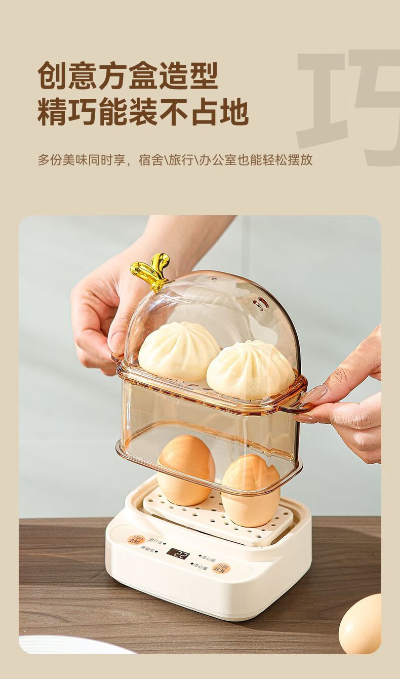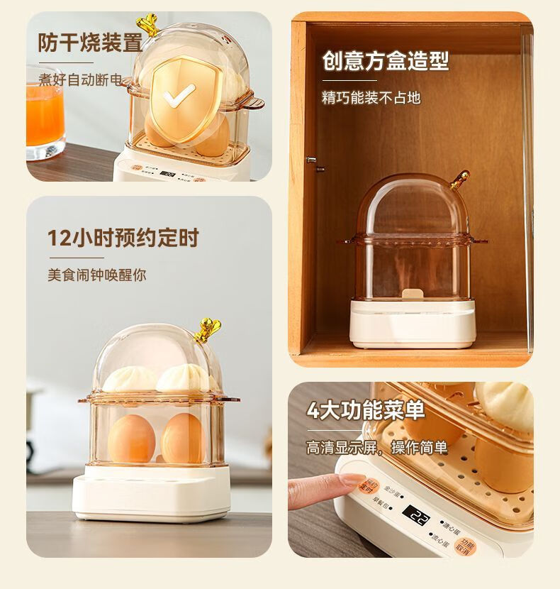 Qiandu Orange can reserve egg cooker, smart egg steamer, timed electric steamer, small one-person office steaming corn artifact, small pot for boiling eggs, mini small steamer, automatic power off, single layer, apricot smart version