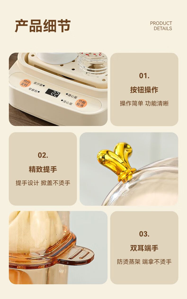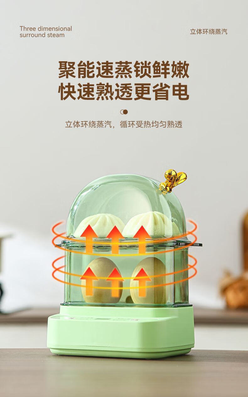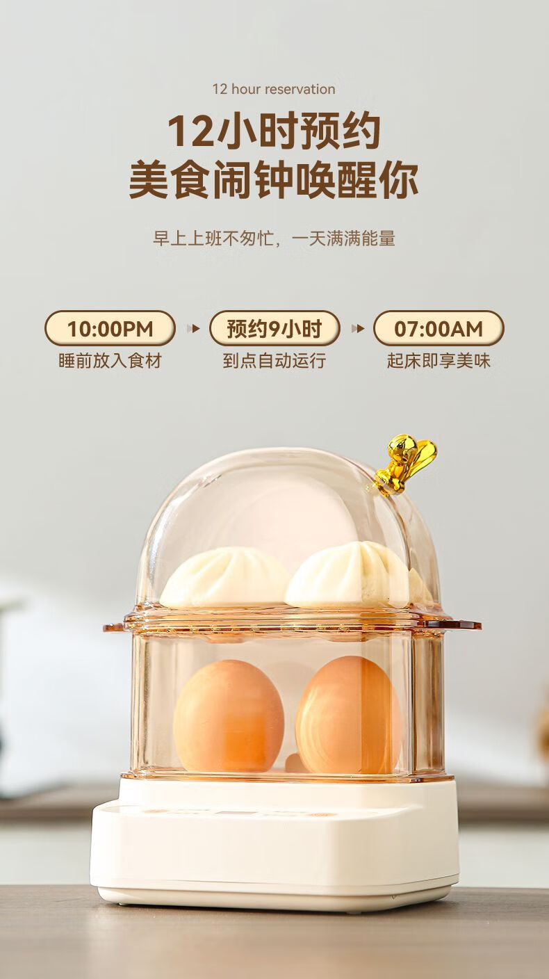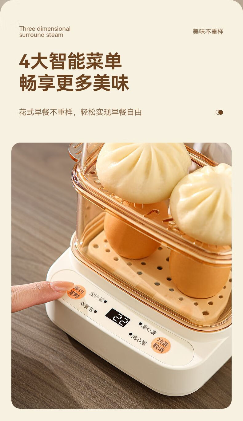 Qiandu Orange can reserve egg cooker, smart egg steamer, timed electric steamer, small one-person office steaming corn artifact, small pot for boiling eggs, mini small steamer, automatic power off, single layer, apricot smart version
