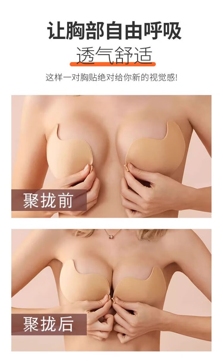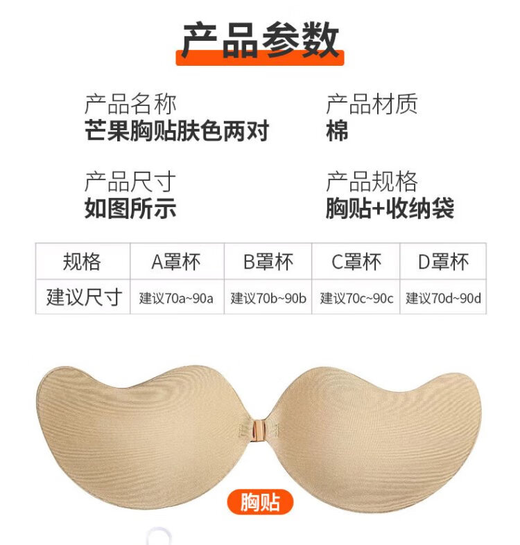 妙奕嘉芒果聚拢胸贴女婚纱专用文胸乳贴硅胶隐形内衣大胸小胸防凸点无痕 芒果胸贴肤色两对 A罩杯【建议70a-90a】