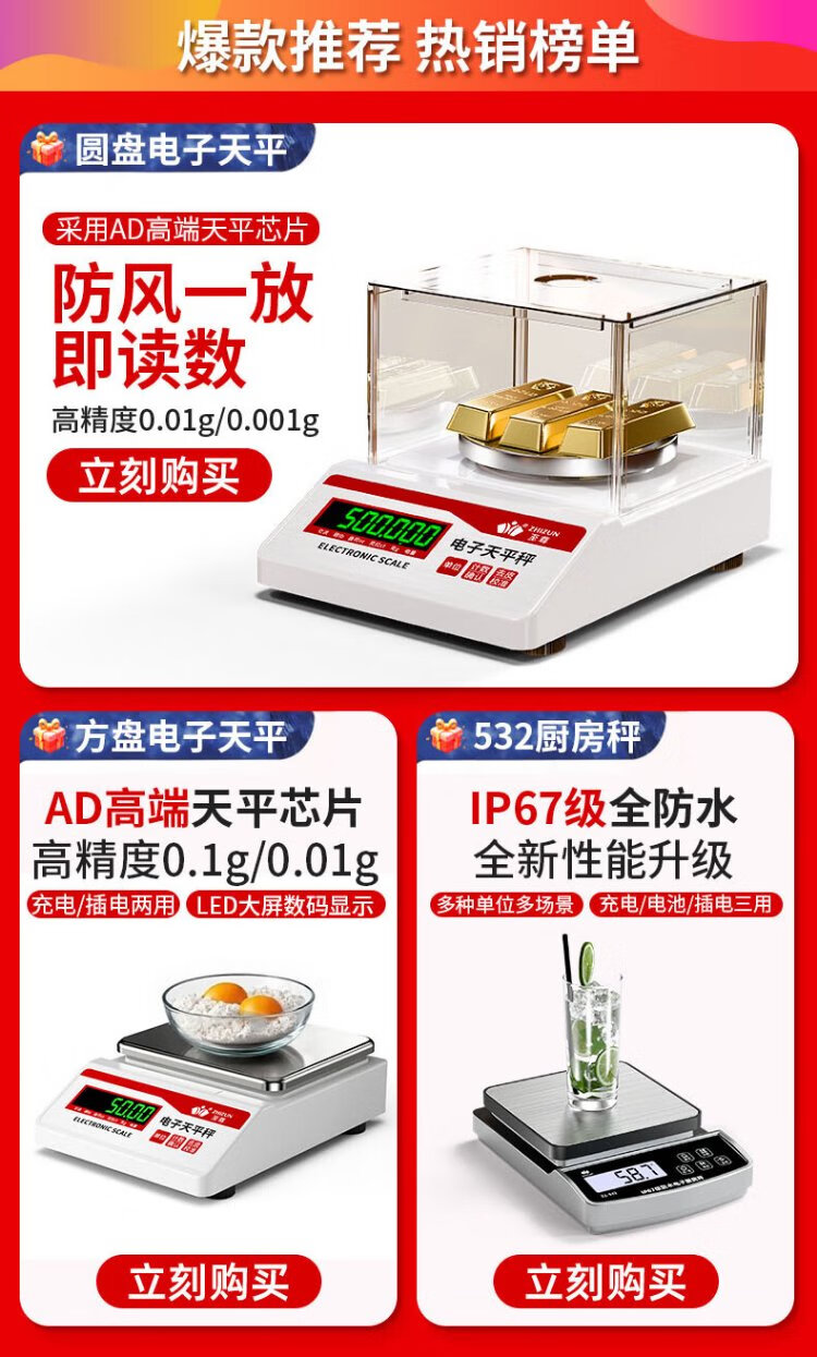 ZHIZUN weighing electronic scale kitchen scale small household electronic scale high-precision 0.1g small food scale gram weight scale black face sticker 15kg/1g