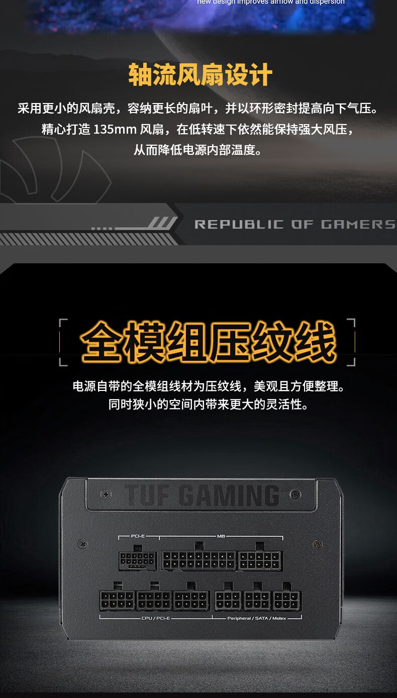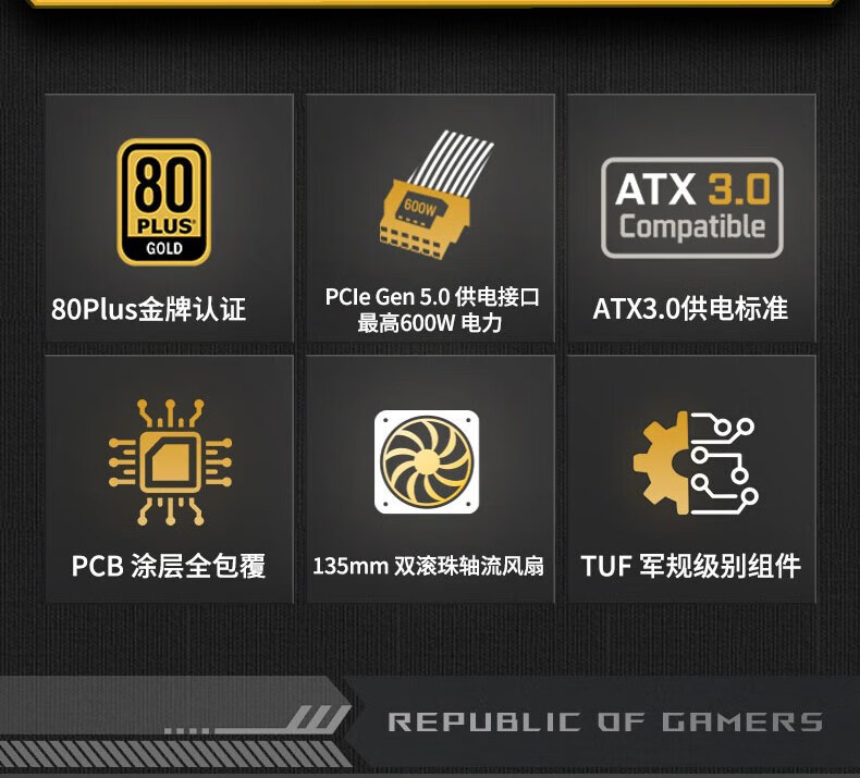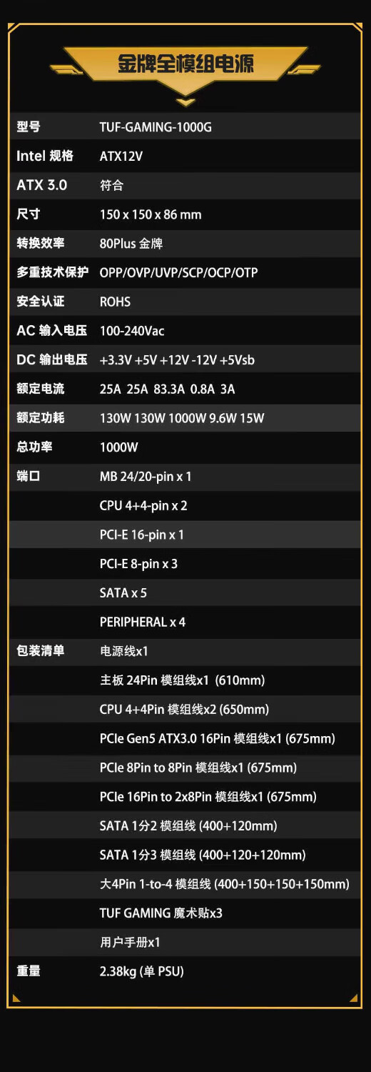 ASUS loader TUF GAMING 1000G gold medal full module power supply/native ATX3.0/PCB coating/80PLUS gold certification/Pcie 5.0/desktop power supply TUF-GAMING-850G loader