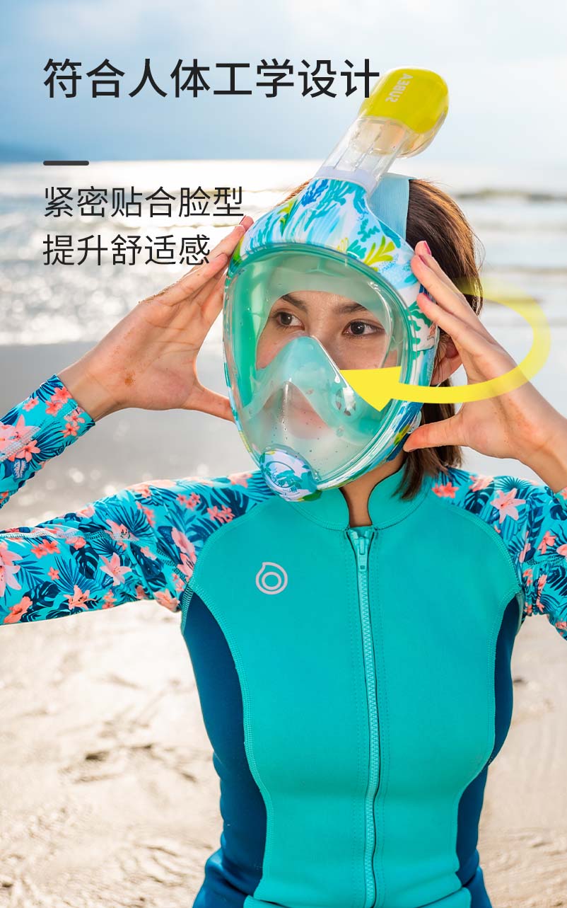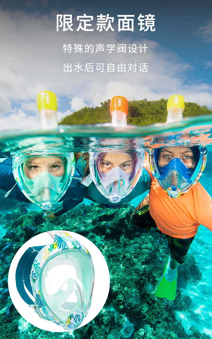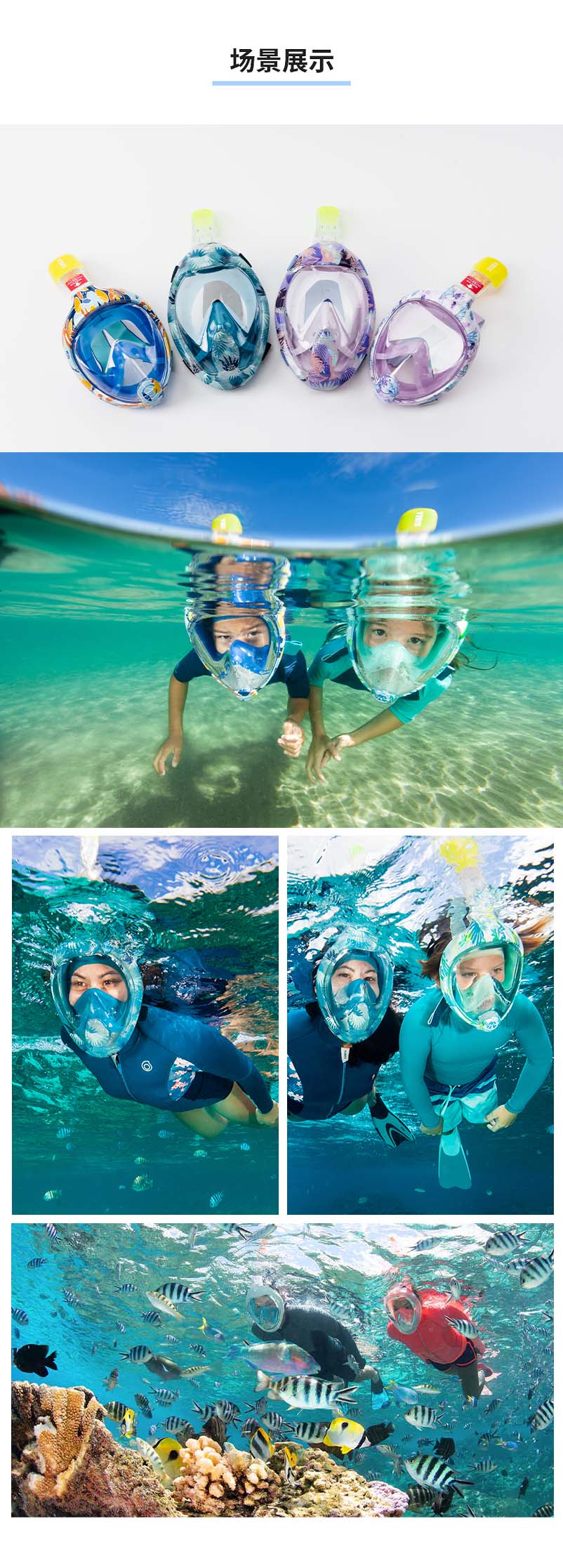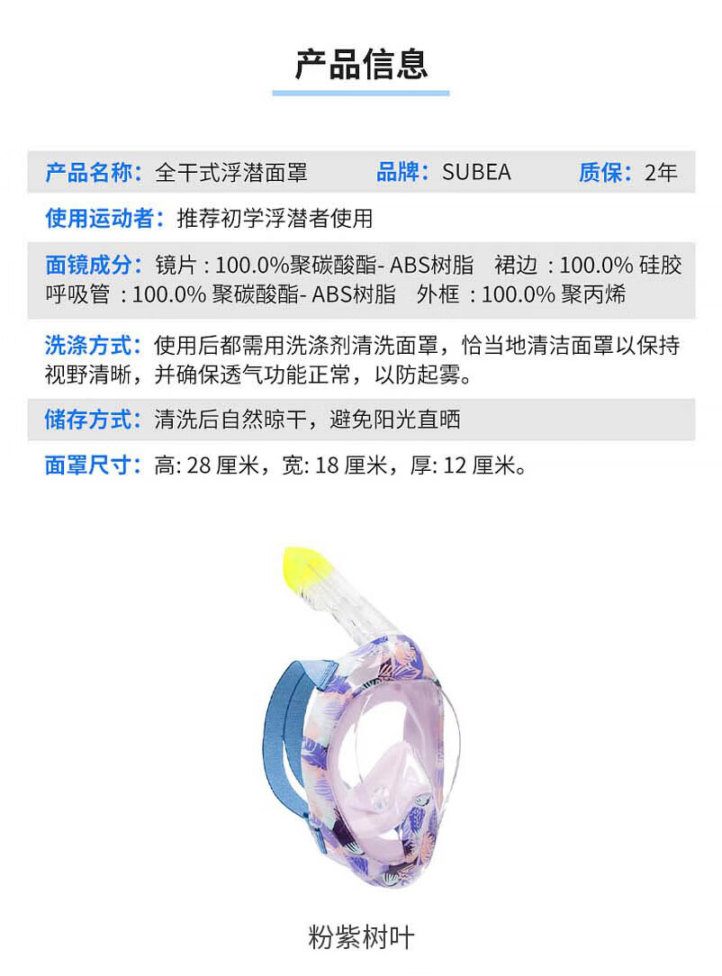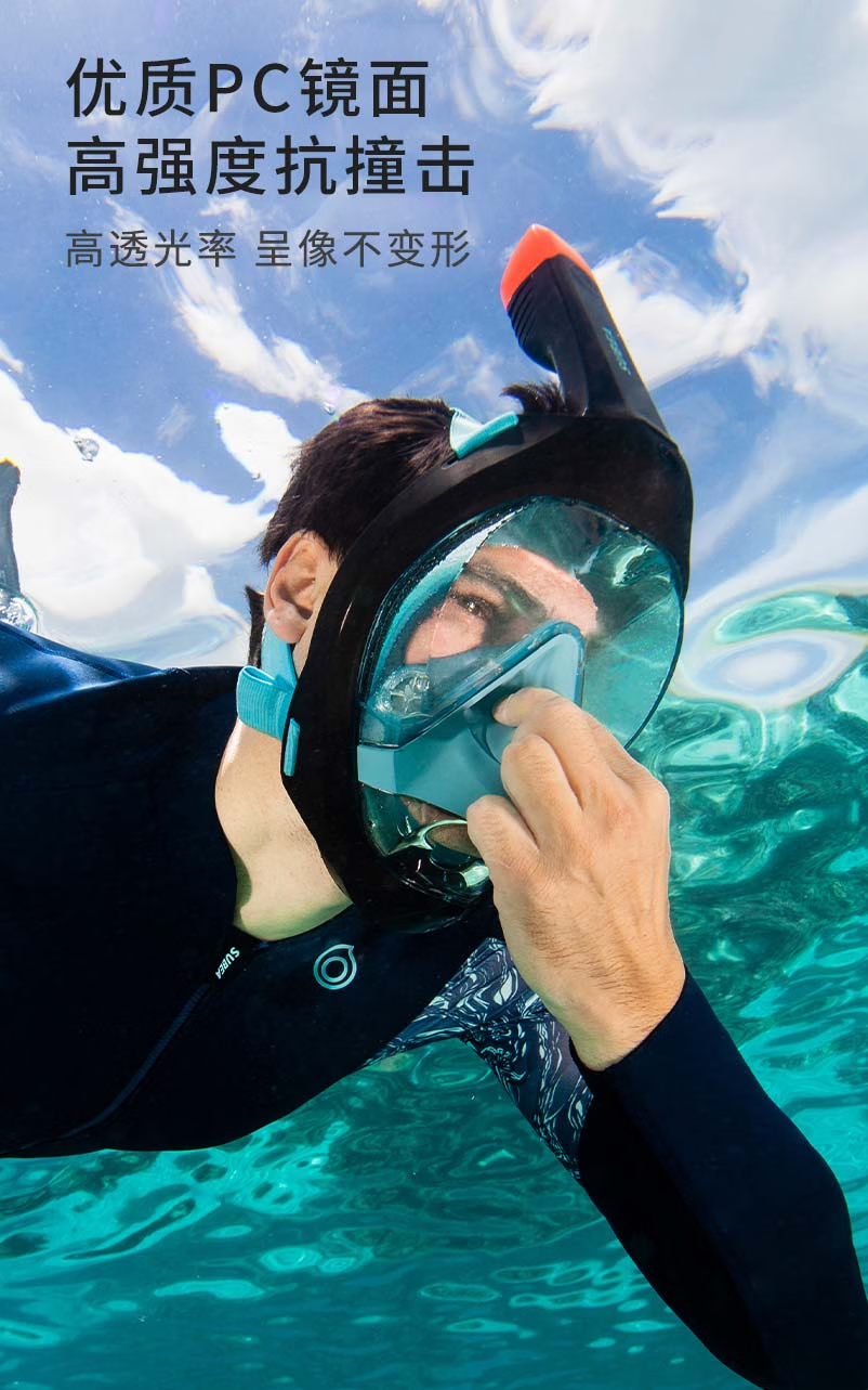 迪卡侬浮潜面罩潜水镜装备成人全干式呼吸面镜游泳装备 升级款【成人款M/L】青紫色