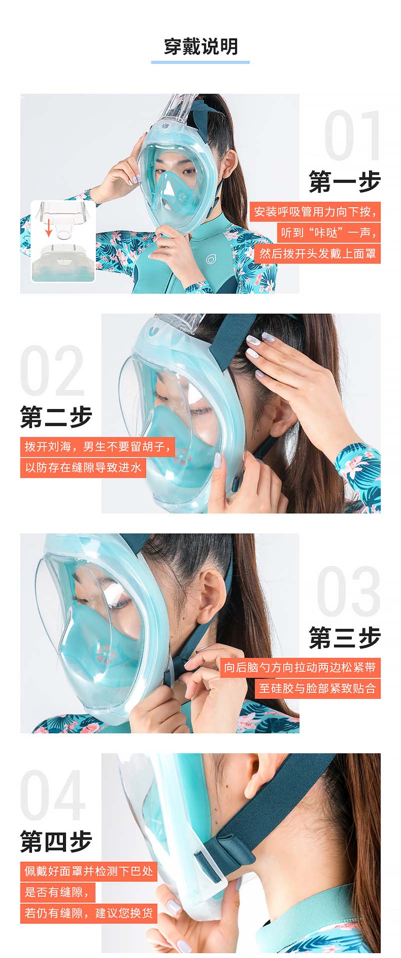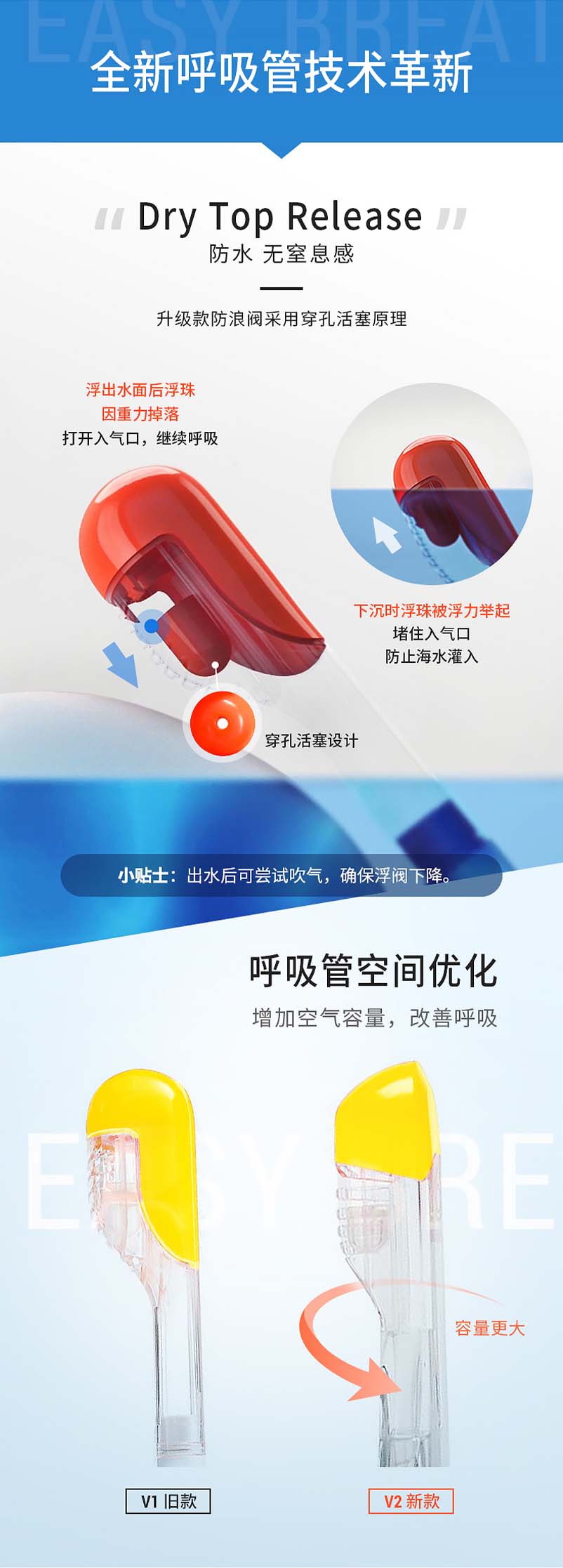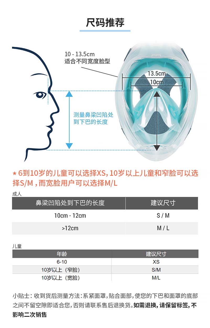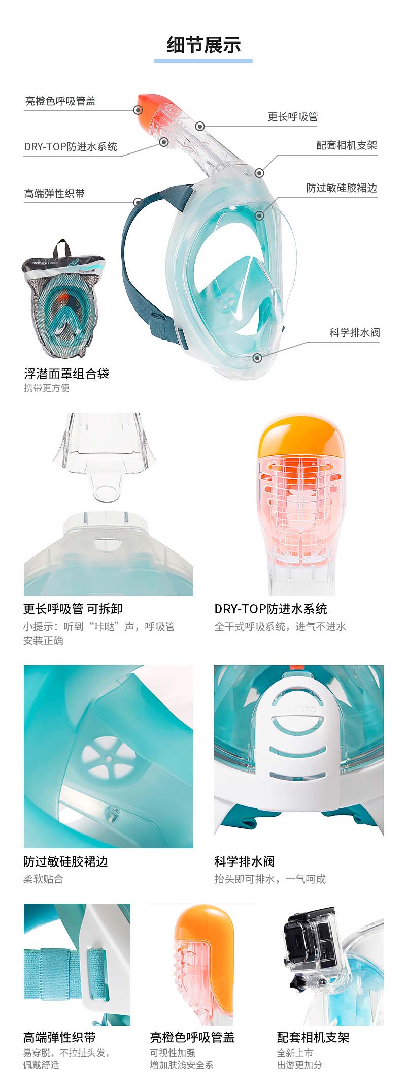 迪卡侬浮潜面罩潜水镜装备成人全干式呼吸面镜游泳装备 升级款【成人款M/L】青紫色