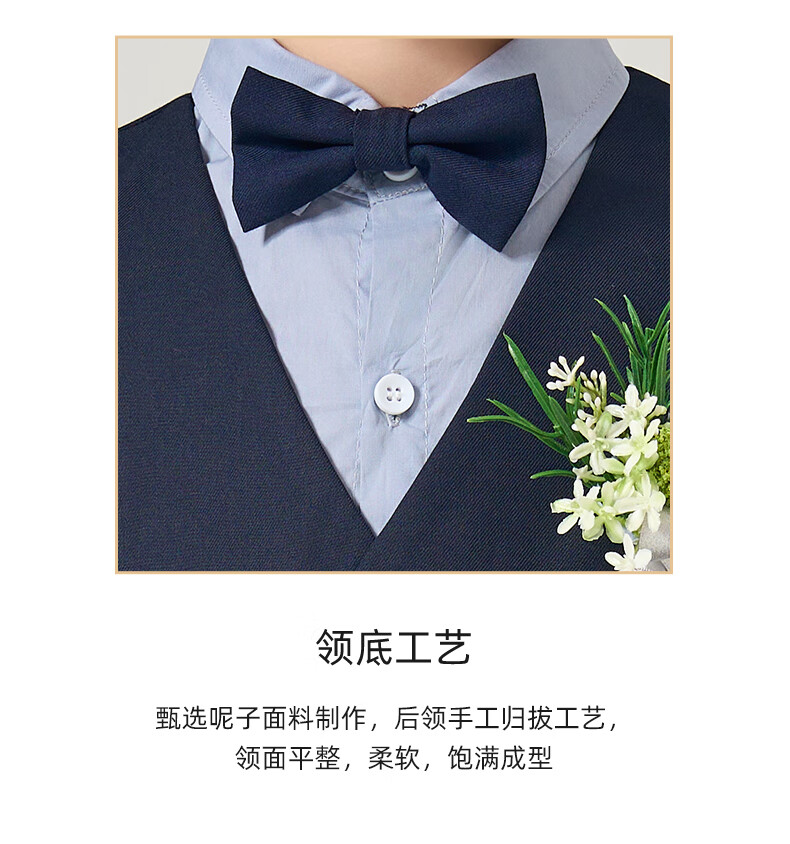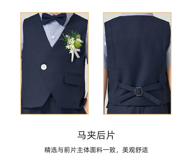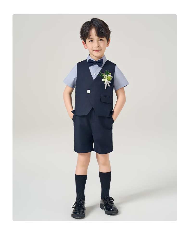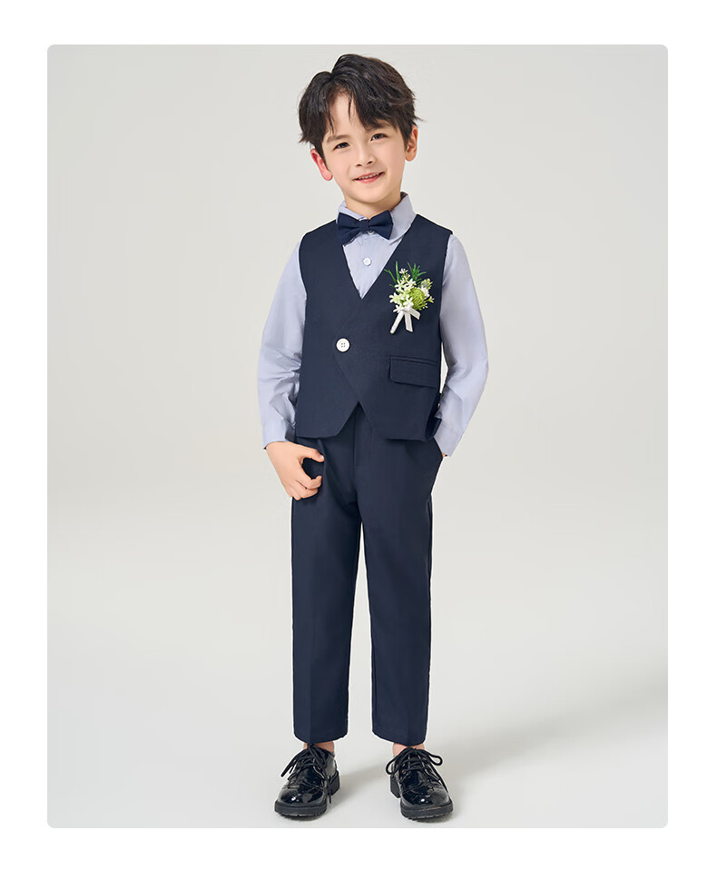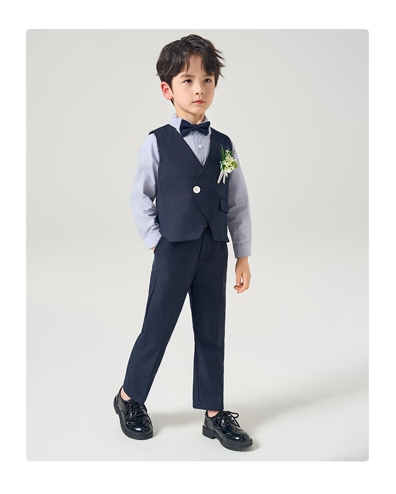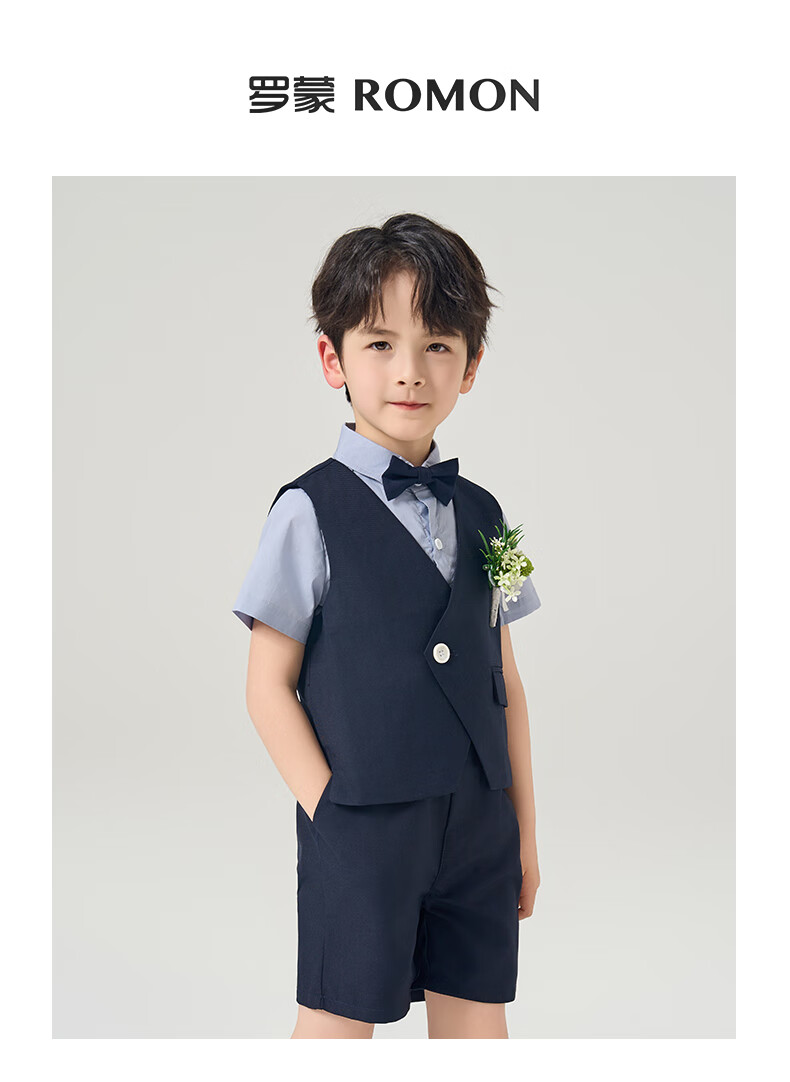 罗蒙礼服男童西装套装英伦风男宝周岁生日宴会西服花童毕业儿童演 马甲套系:马甲+长裤 90