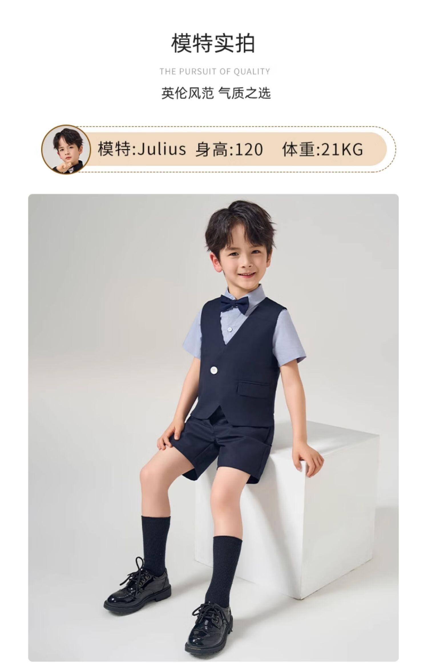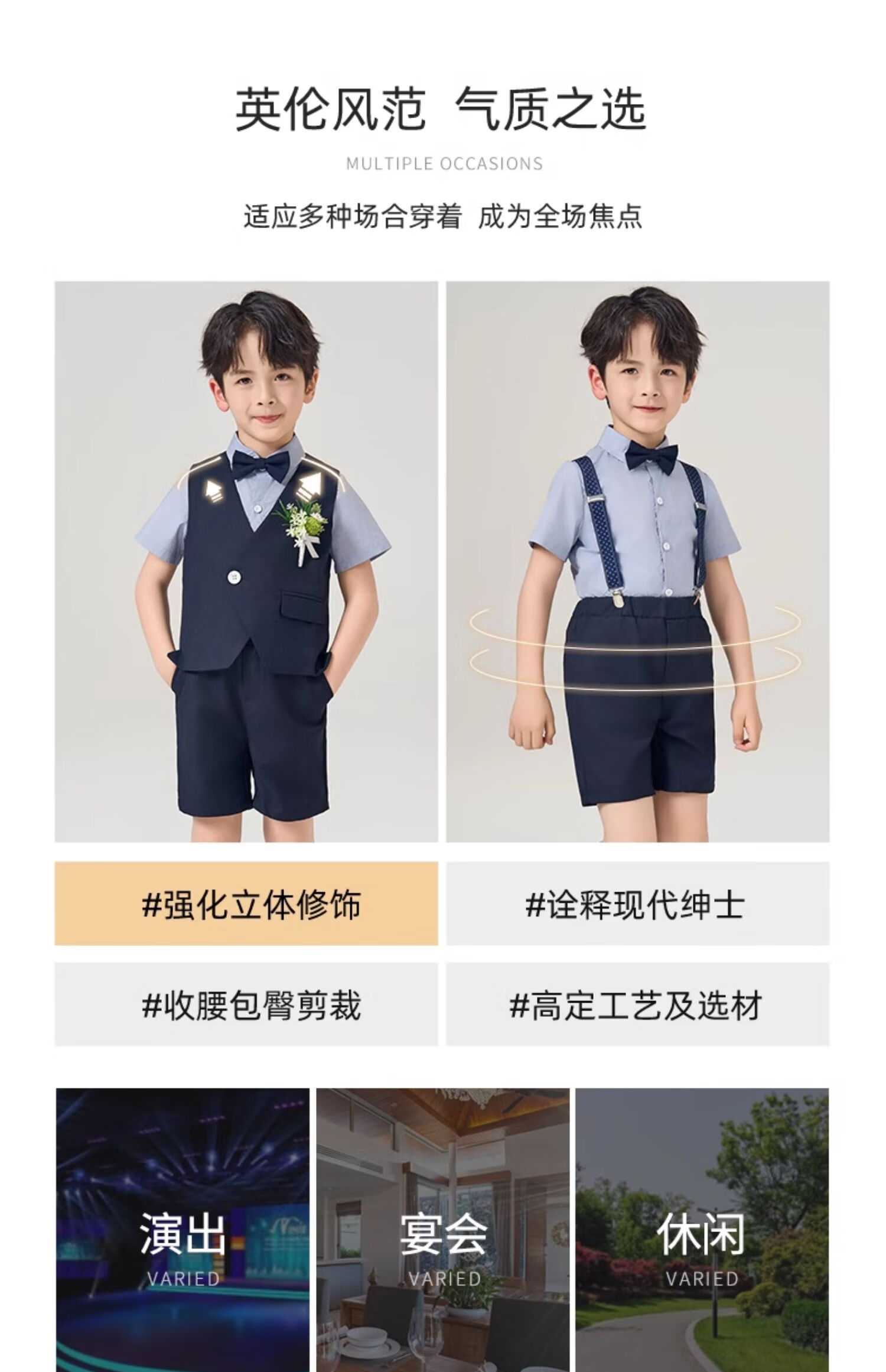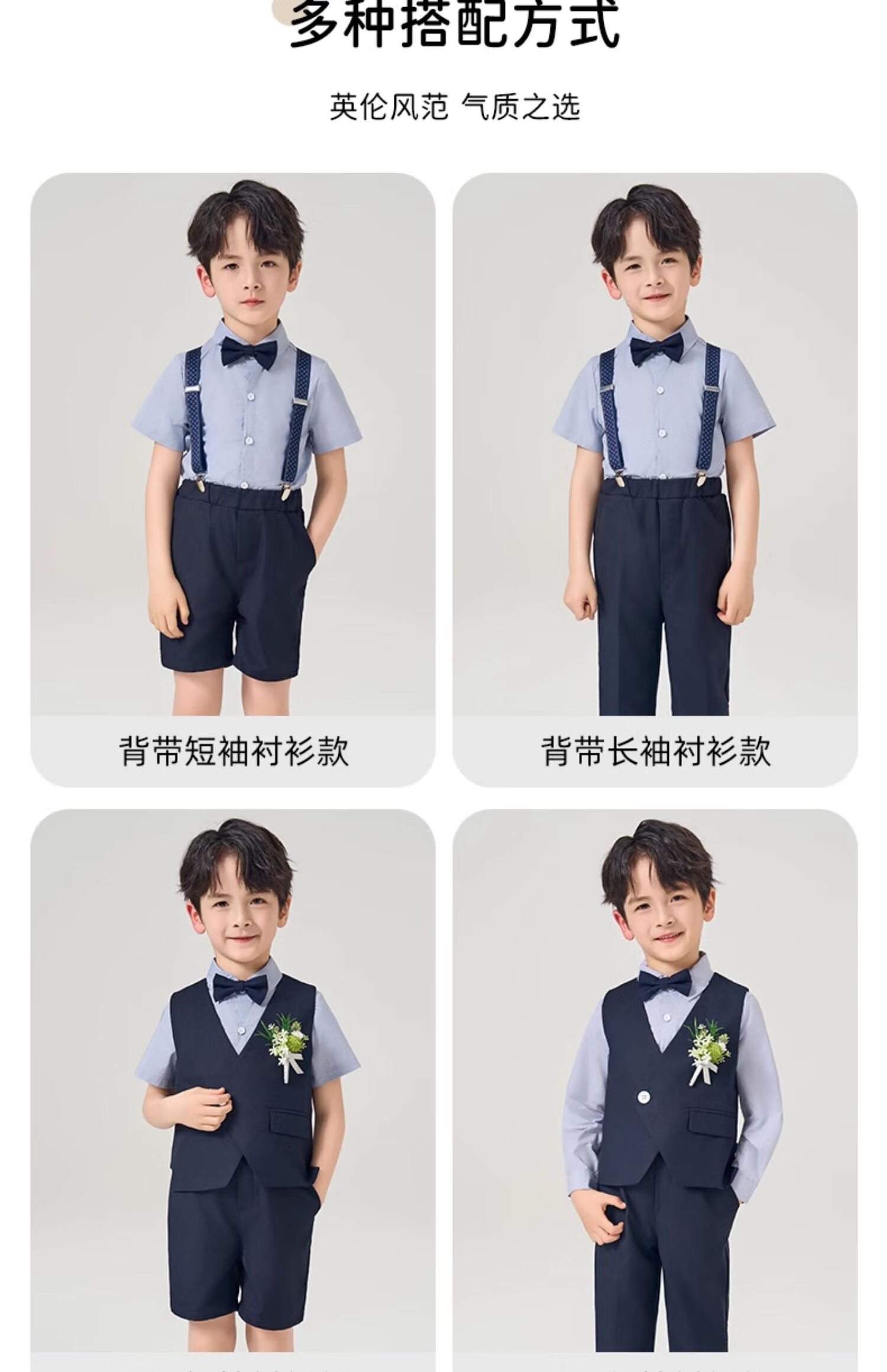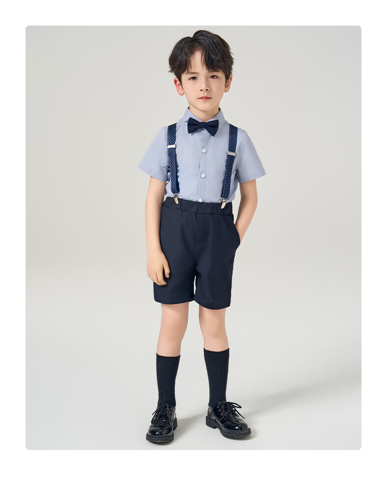 罗蒙礼服男童西装套装英伦风男宝周岁生日宴会西服花童毕业儿童演 马甲套系:马甲+长裤 90