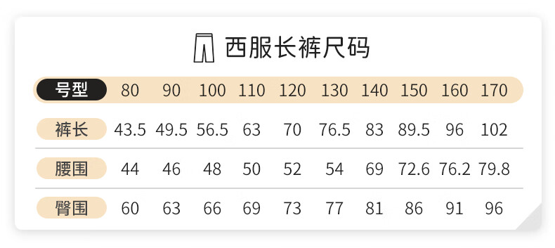 China (cm) 160-165/84-86 165-170 / 88-90 167-172 / 92-96 168-173 / 98-102 170-176 / 106-110