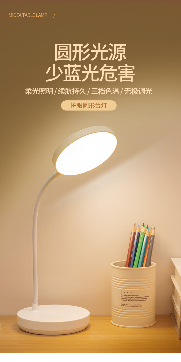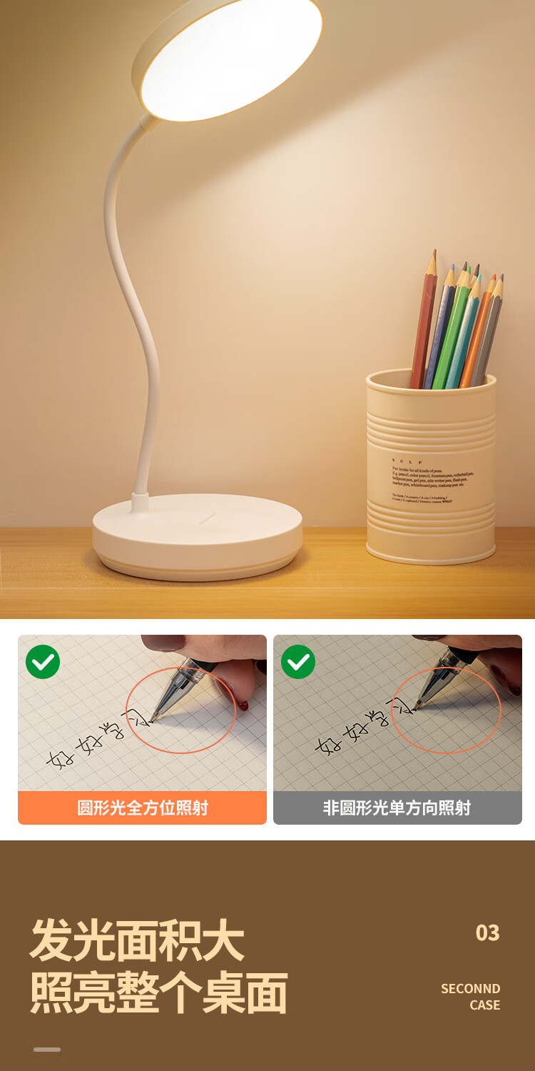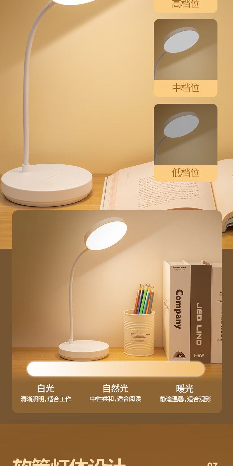 Poetry student table lamp dormitory reading table lamp study special led eye protection dormitory desk rechargeable bedroom bedside lamp 4000MWH scientific eye protection rechargeable plug dual-use + three-color touch switch