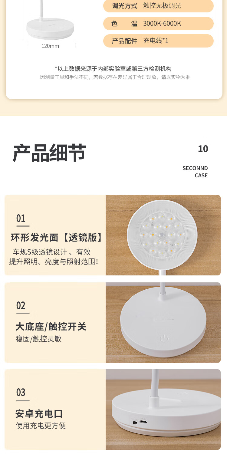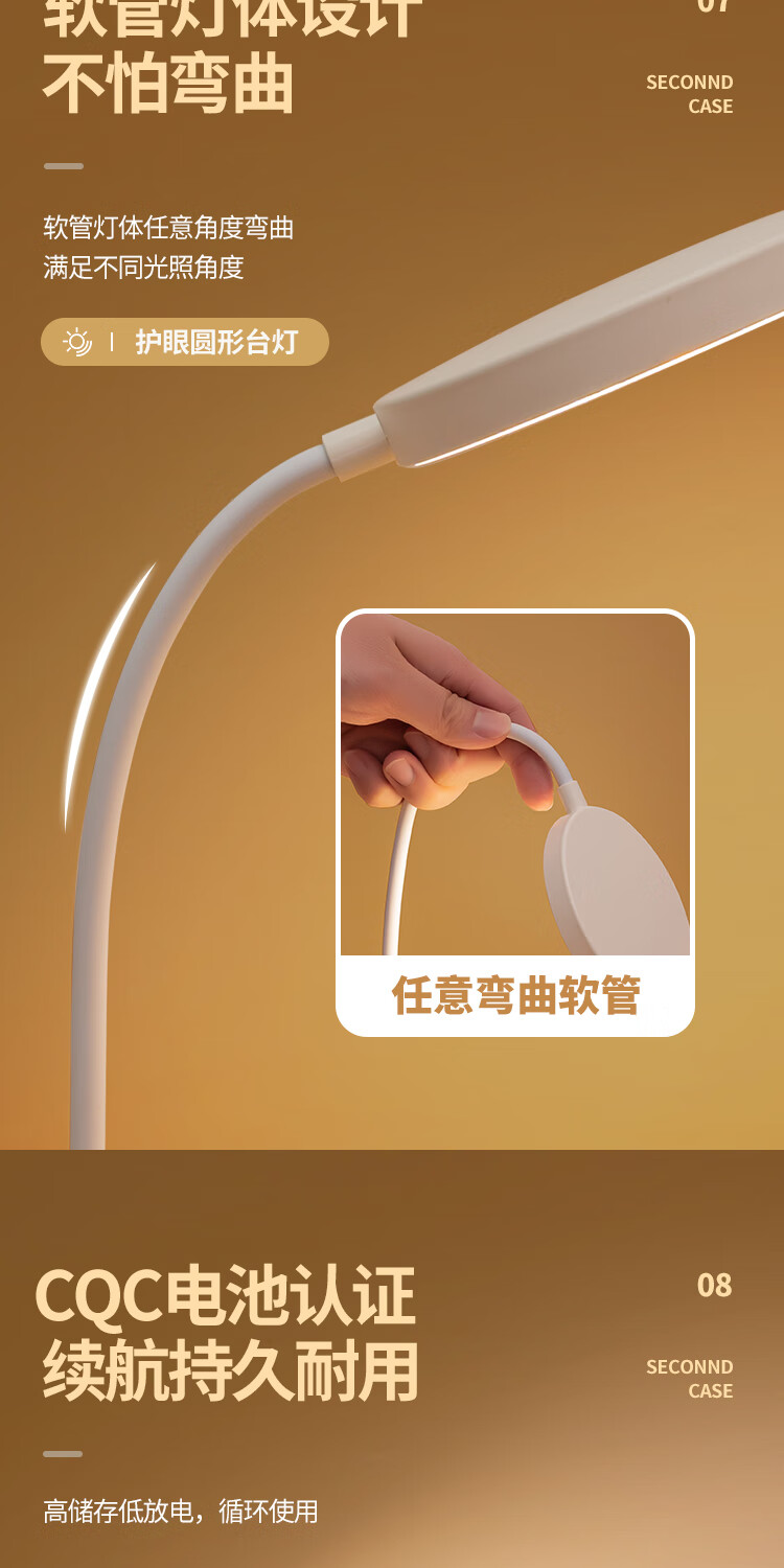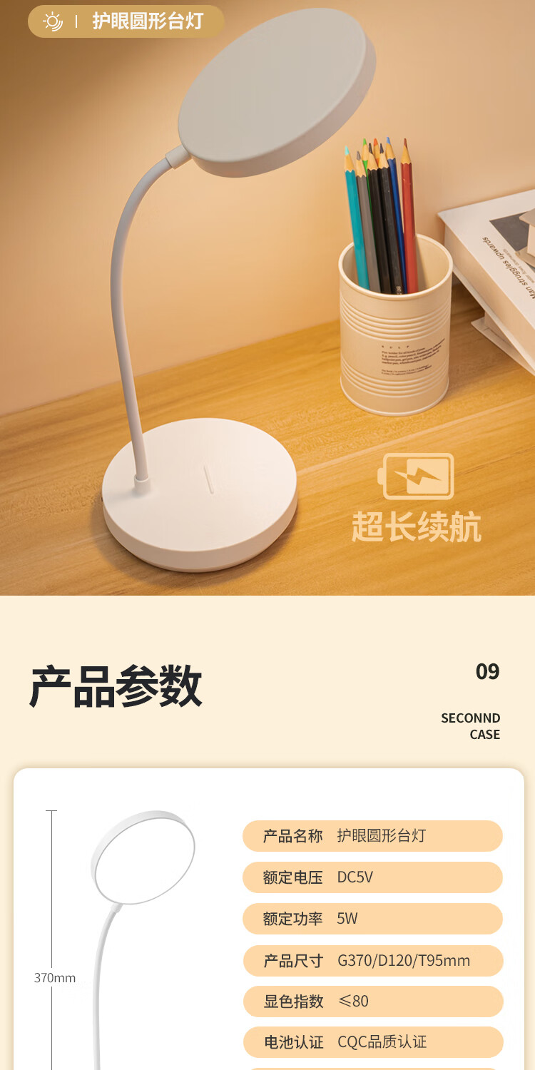 Poetry student table lamp dormitory reading table lamp study special led eye protection dormitory desk rechargeable bedroom bedside lamp 4000MWH scientific eye protection rechargeable plug dual-use + three-color touch switch