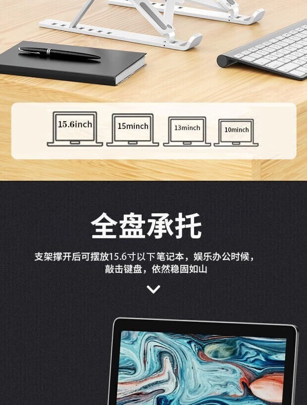凯宠笔记本电脑支架托架桌面增高散热器折叠便携增高悬空式支撑架子立式悬空升降底座自由调节可收纳 【白色升级款】7.9-17英寸笔记本平板丨自由调节 通用