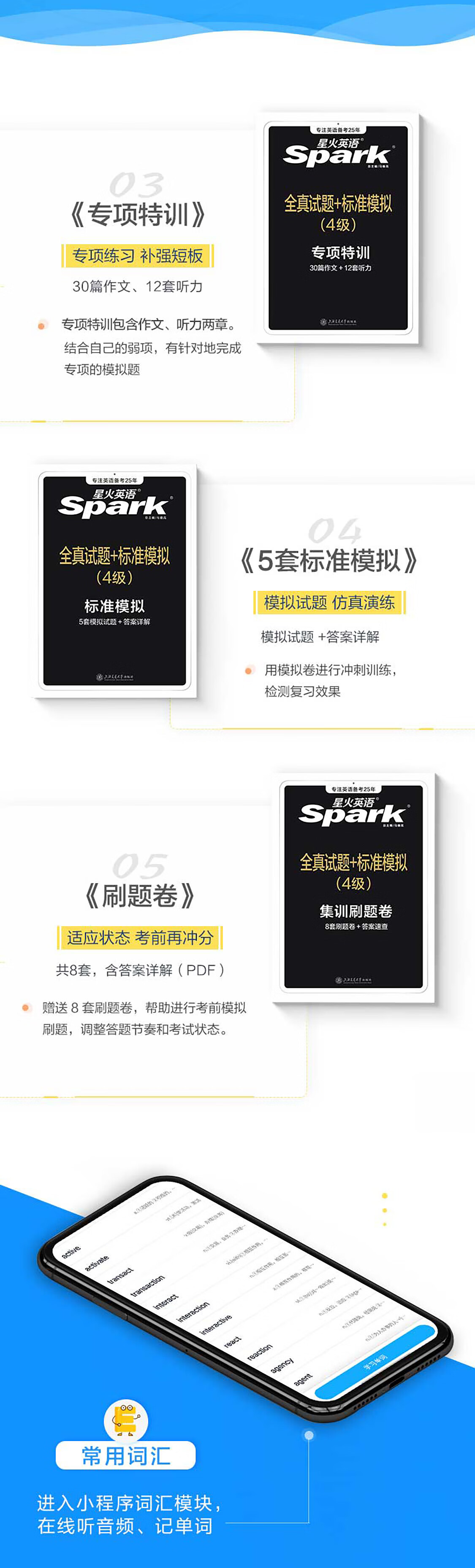 Applicable à l'examen Spark English niveau 4 de décembre 2025, y compris les épreuves réelles de test de juin, les épreuves réelles de test de niveau 4, la formation aux tests de simulation, le matériel de préparation aux examens passés, l'écoute, la lecture, la traduction et l'écriture de vocabulaire unique d'anglais universitaire de niveau 4, un ensemble complet spécial de livres, les épreuves réelles de test de niveau 4 + l'écoute.