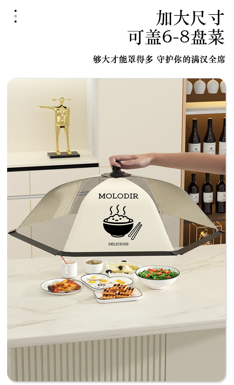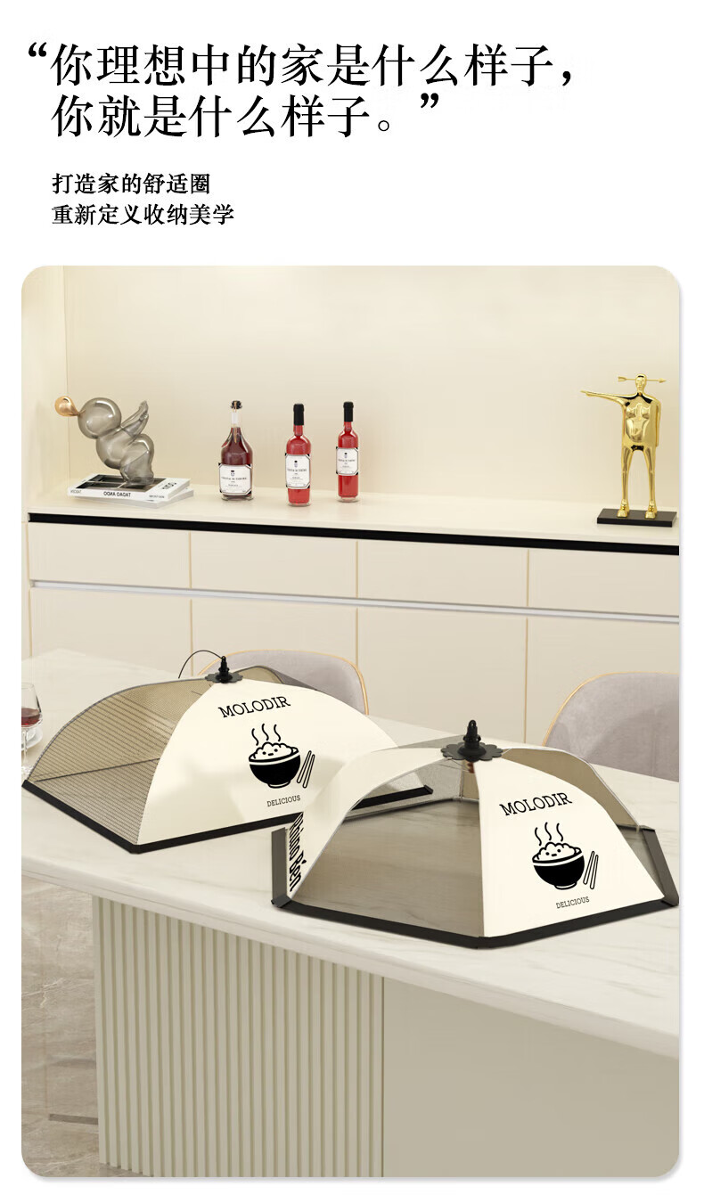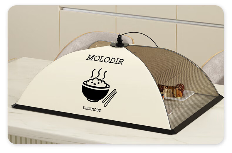 ShouMi breathable food cover new foldable dining table cover food cover dust-proof insect-proof and fly-proof household vegetable cover umbrella cream black bowl rectangular 50*70cm (comes with hook