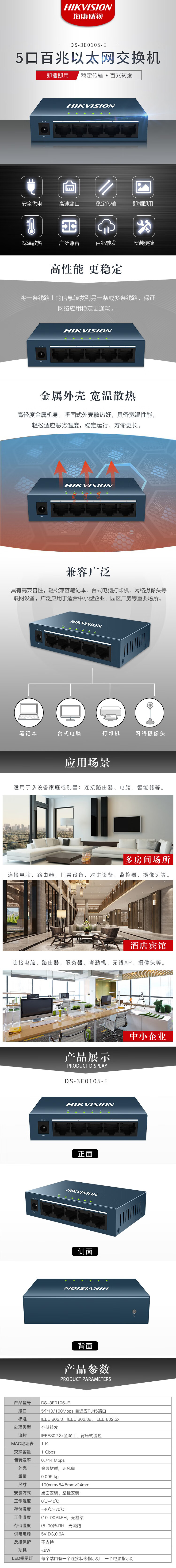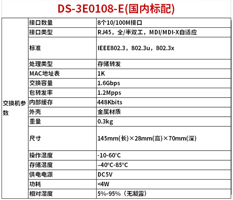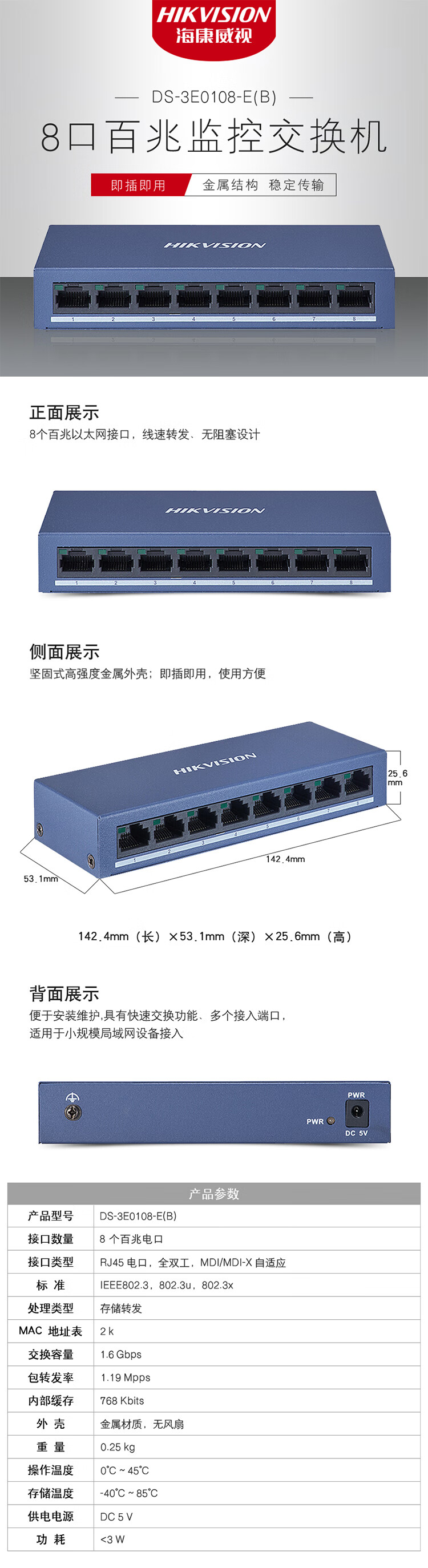 Hikvision (HIKVISION) 5 ports 8 ports 16 ports 24 ports boîtier en fer commutateur Gigabit 100 M moniteur de transmission sans gestion réseau équipement de sécurité répartiteur de réseau convertisseur hub répartiteur de câble réseau DS-XS08GD (boîtier en plastique Gigabit à 8 ports)