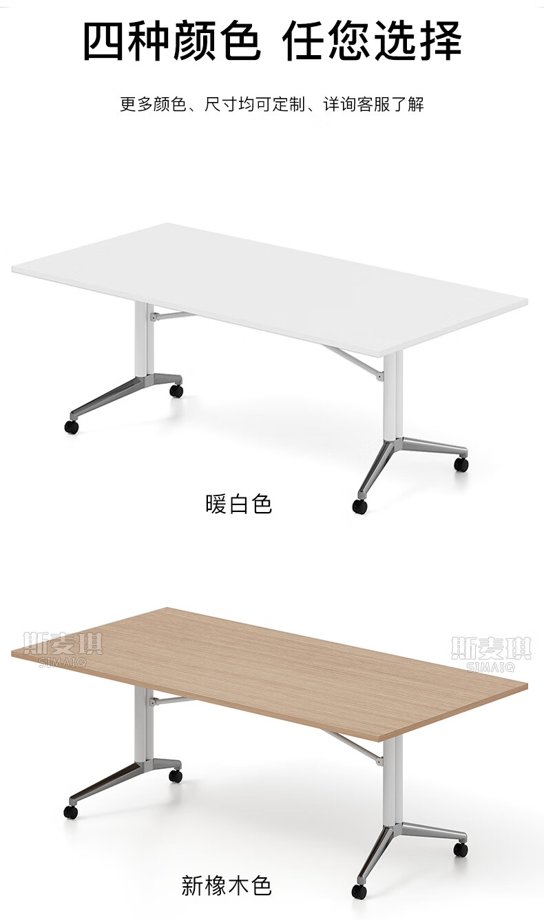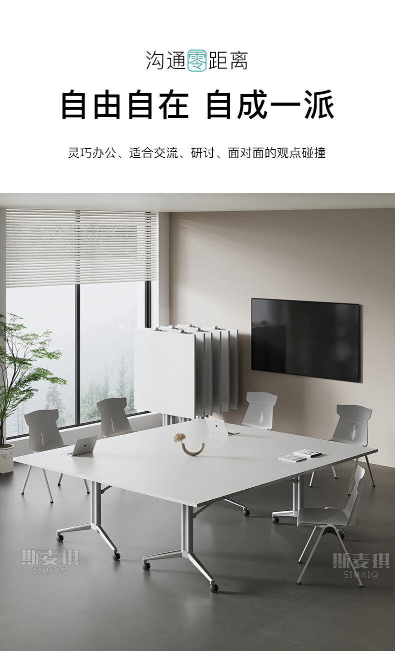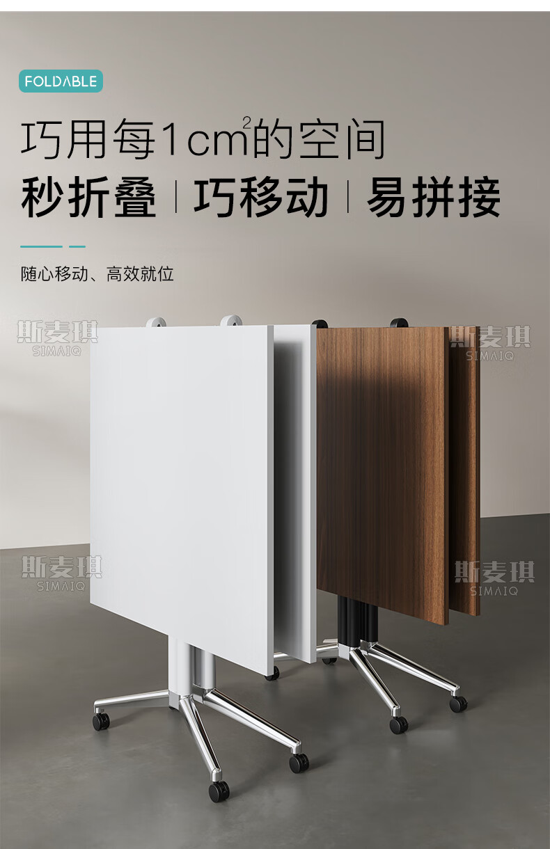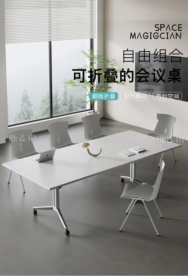 SMG movable folding conference table, long table, training table, telescopic splicing office table with wheels, extra large and detachable 1.6*0.8 meters (new oak color)