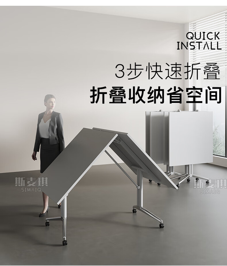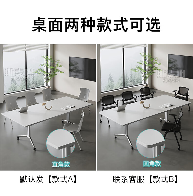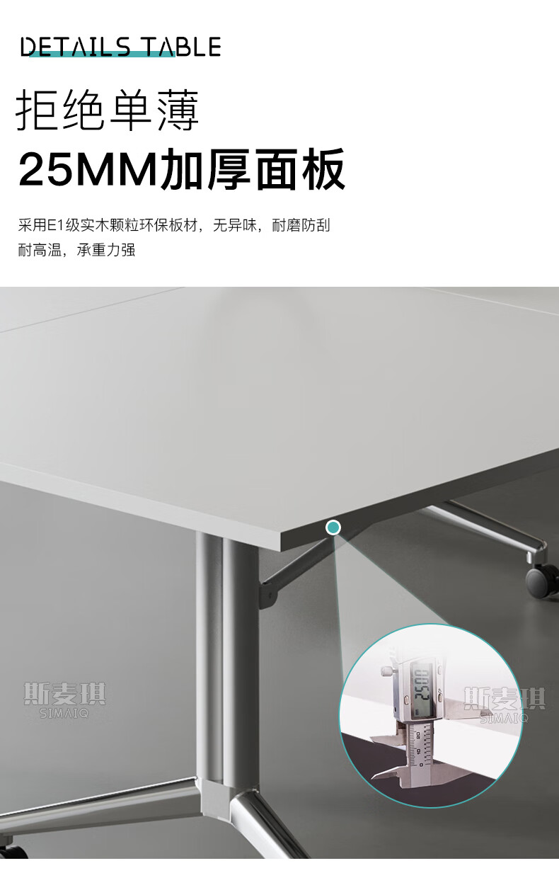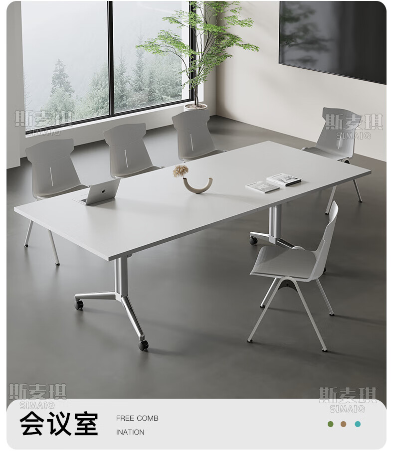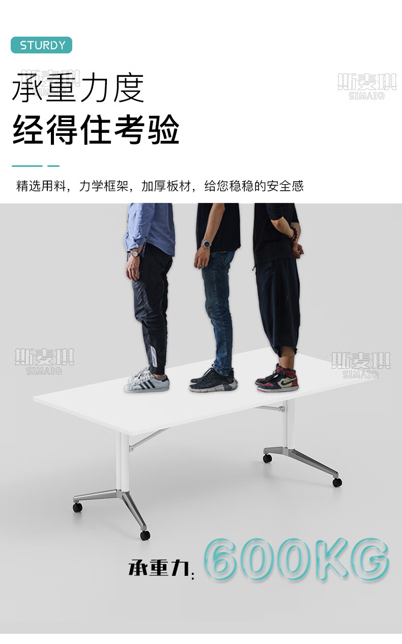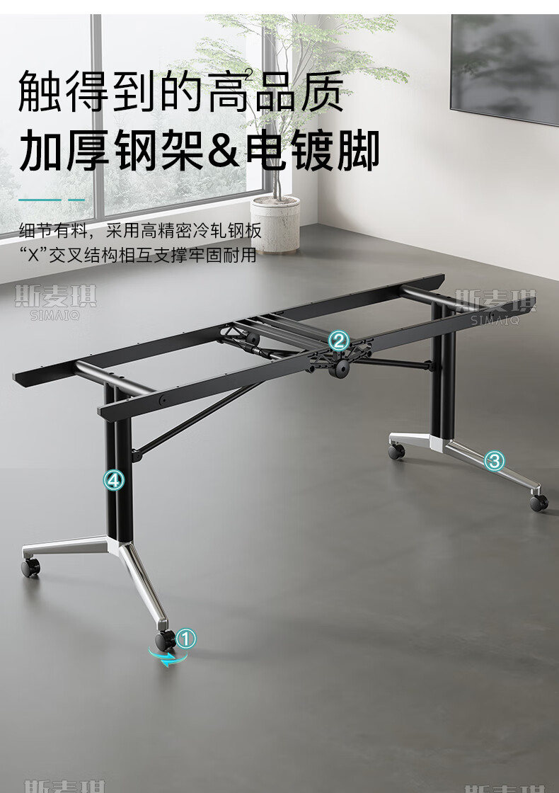 SMG movable folding conference table, long table, training table, telescopic splicing office table with wheels, extra large and detachable 1.6*0.8 meters (new oak color)