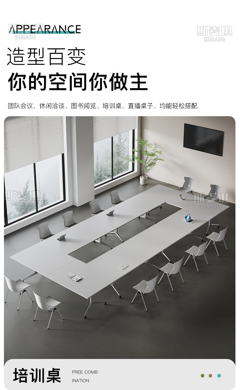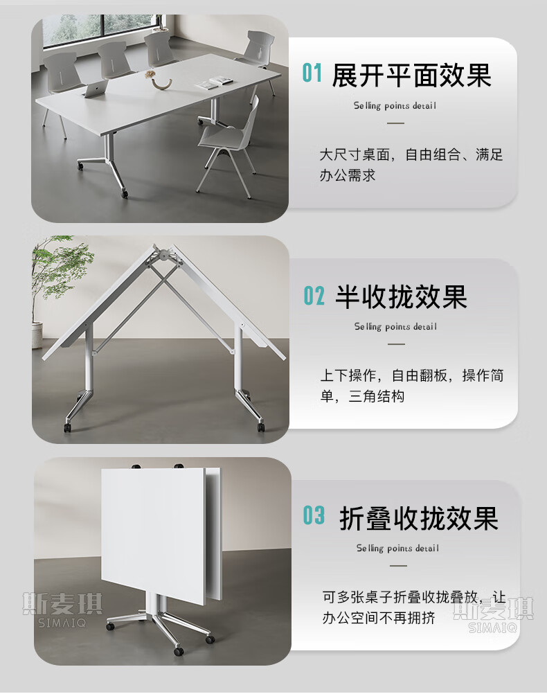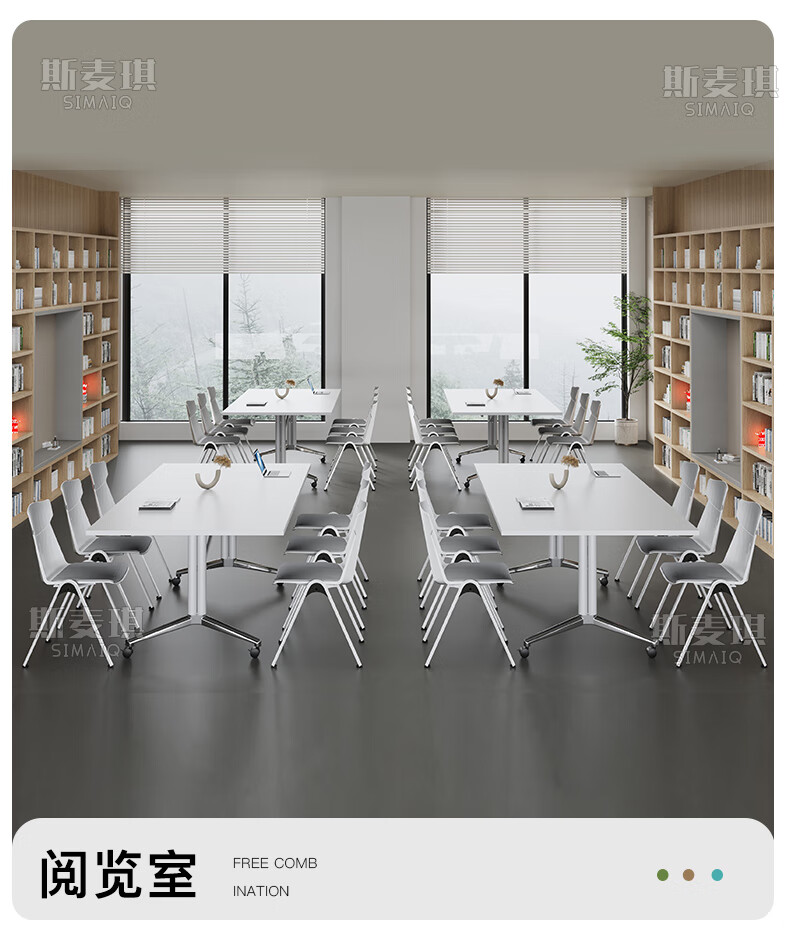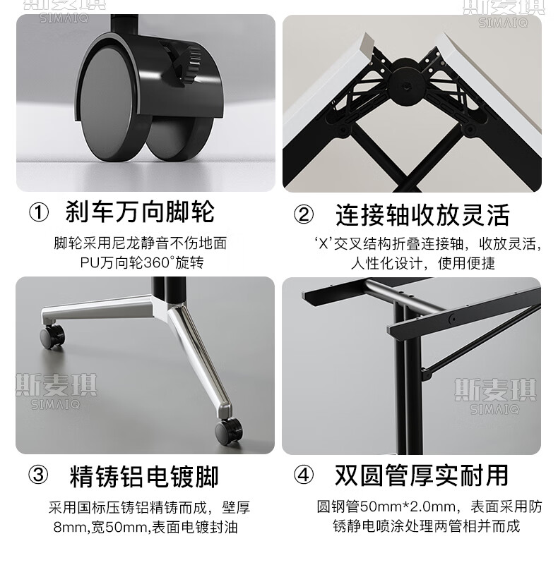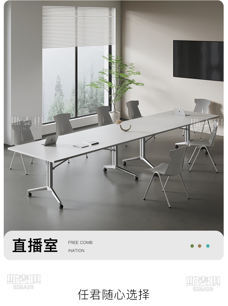 SMG movable folding conference table, long table, training table, telescopic splicing office table with wheels, extra large and detachable 1.6*0.8 meters (new oak color)