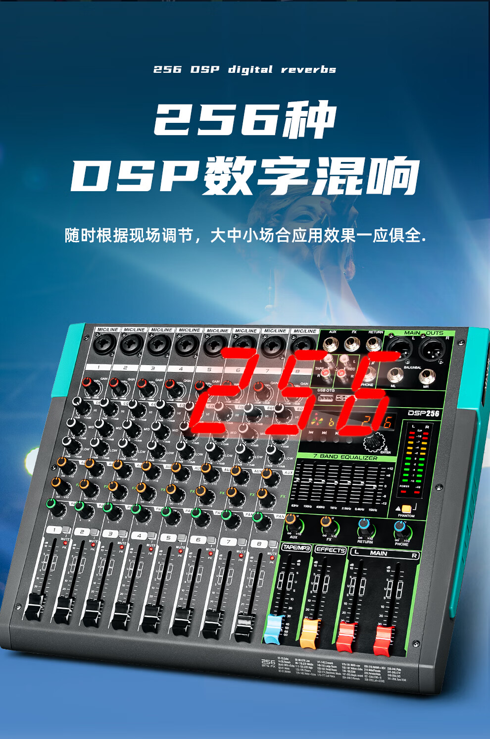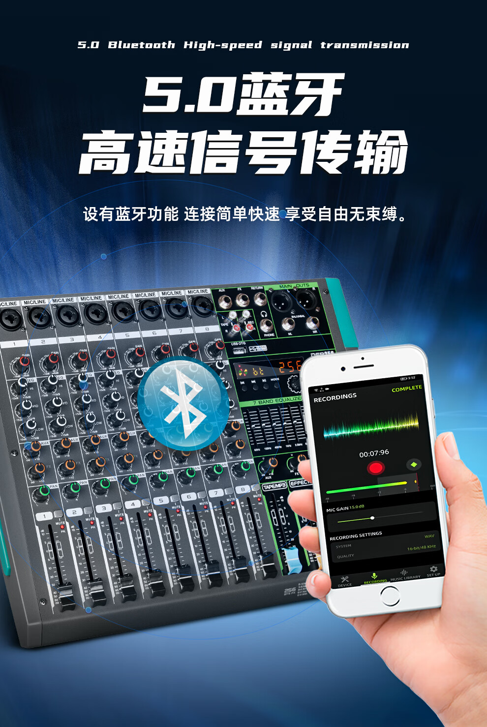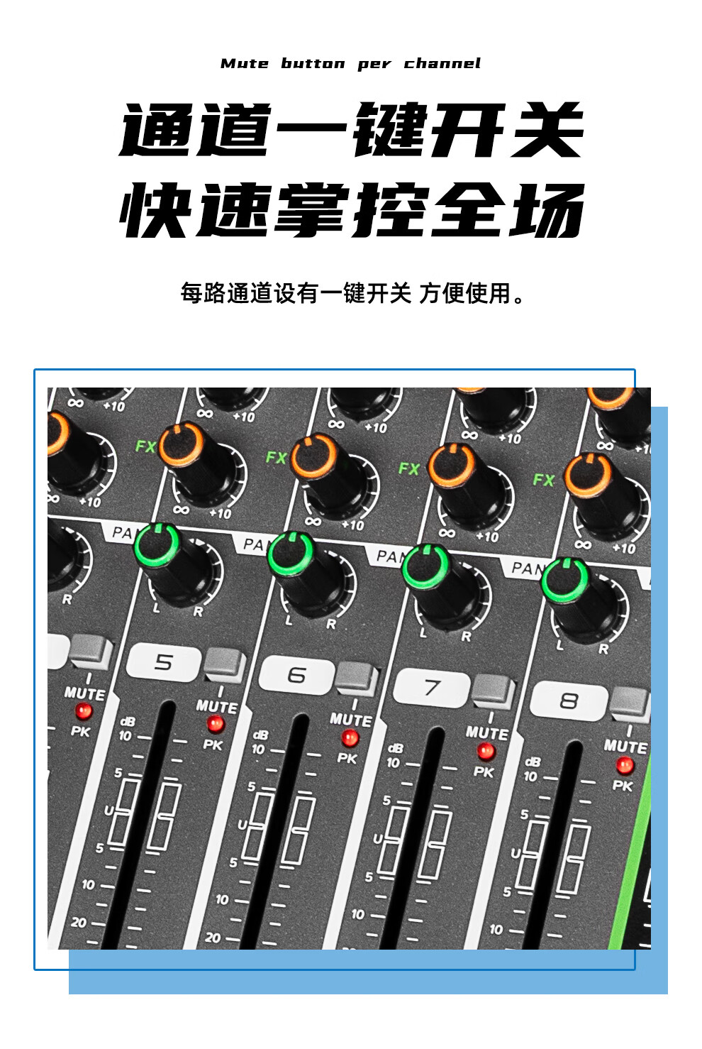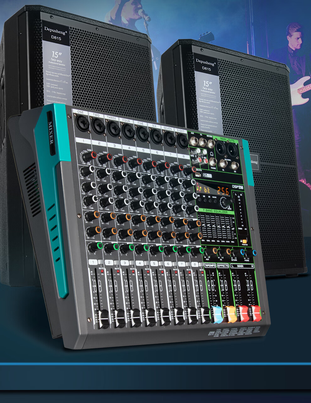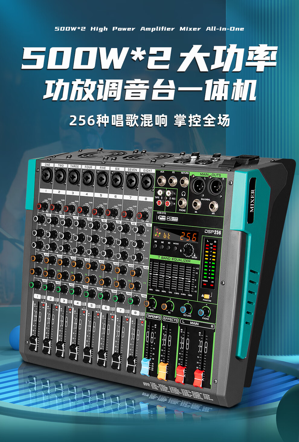 depusheng 得普声GT2调音台带功放一体机256种预设效果蓝牙USB无线播放大功率8路舞台演出婚庆会议家用乐队 500W+500W带功放调音台