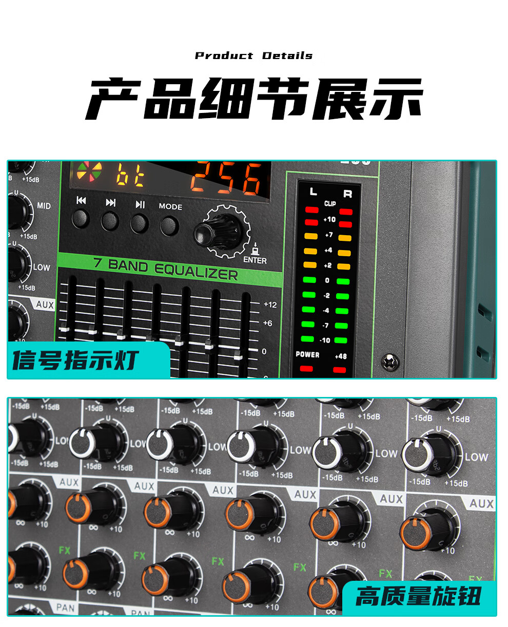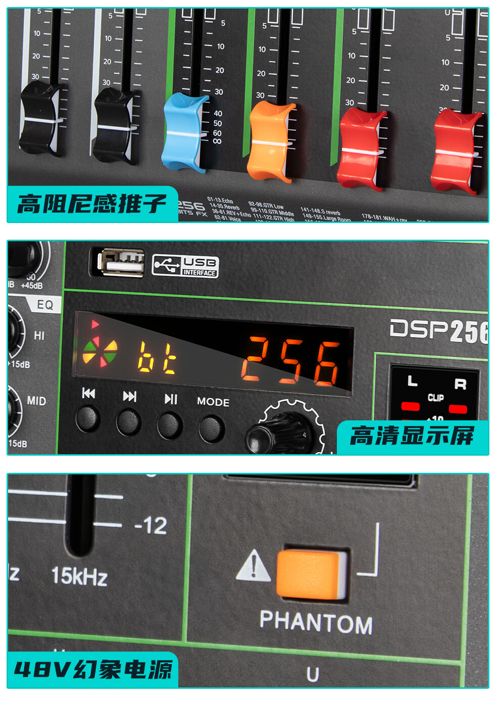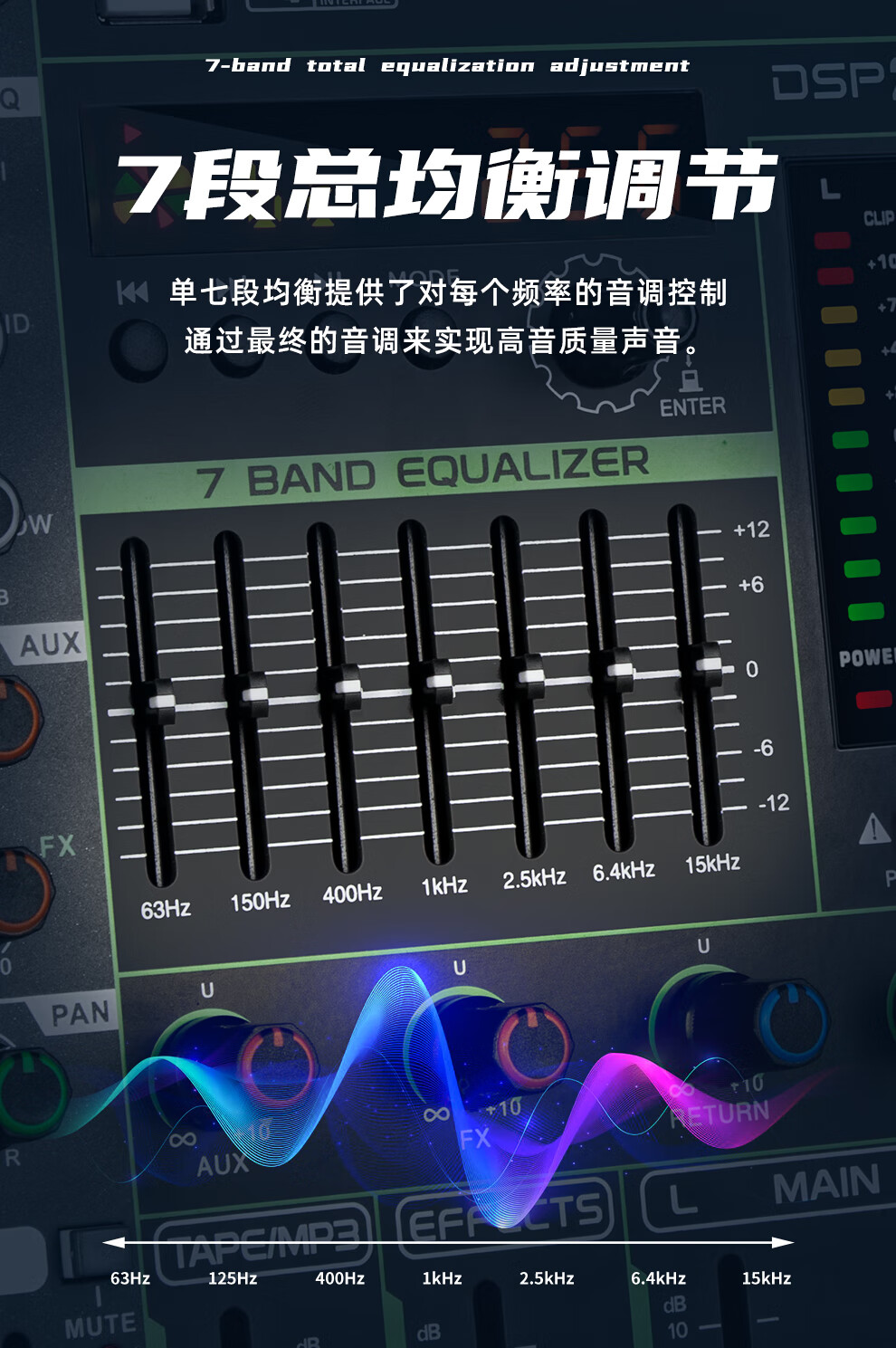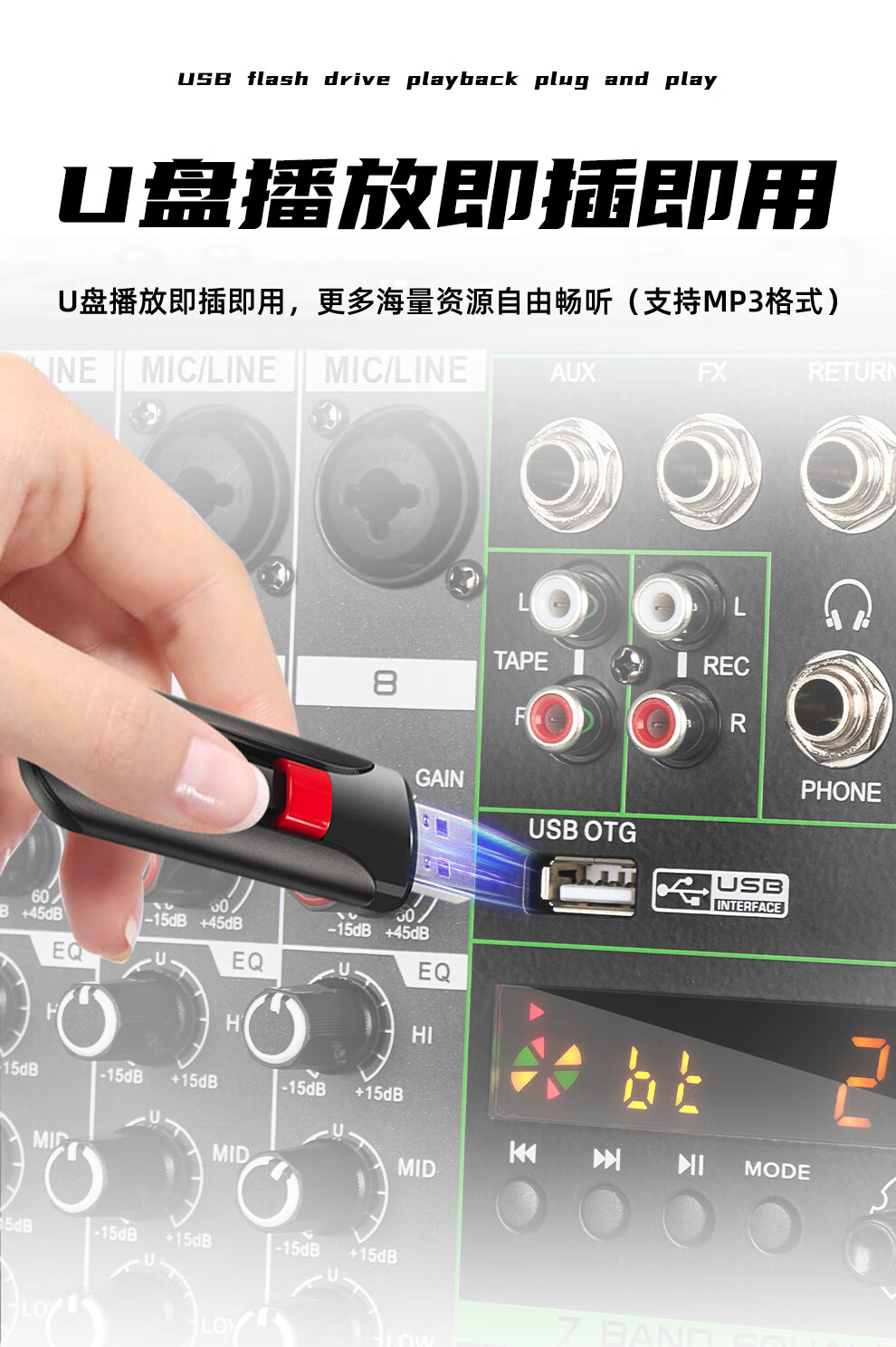 depusheng 得普声GT2调音台带功放一体机256种预设效果蓝牙USB无线播放大功率8路舞台演出婚庆会议家用乐队 500W+500W带功放调音台