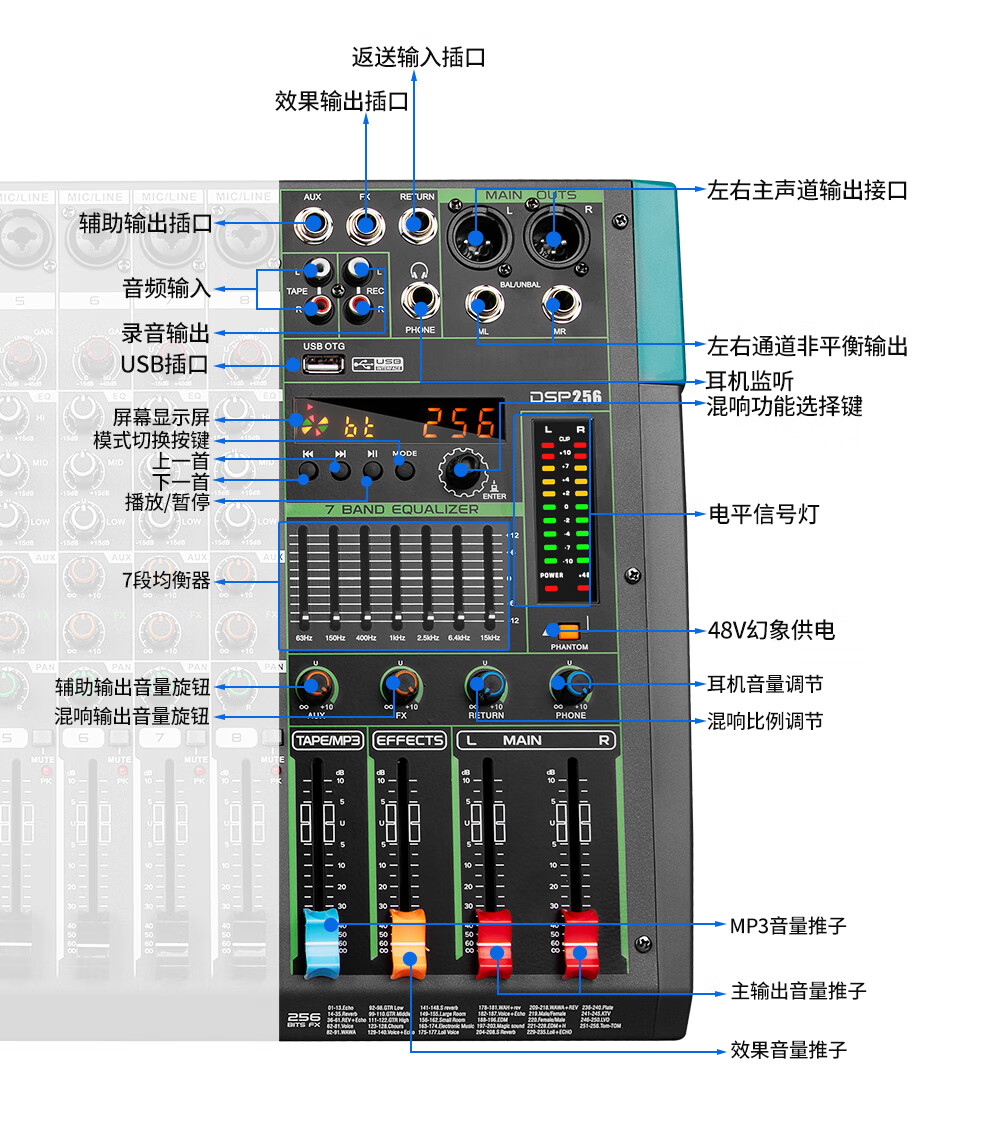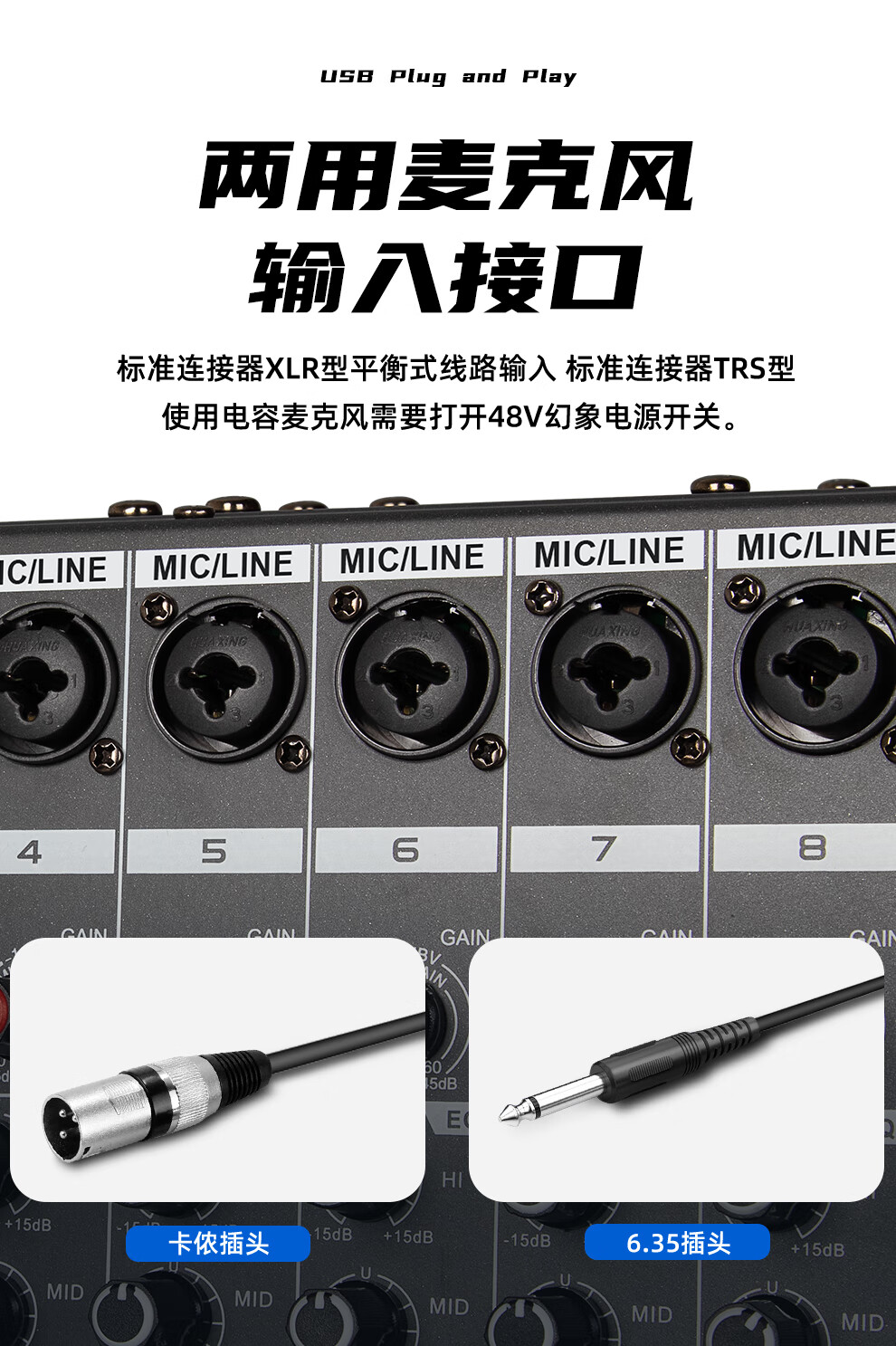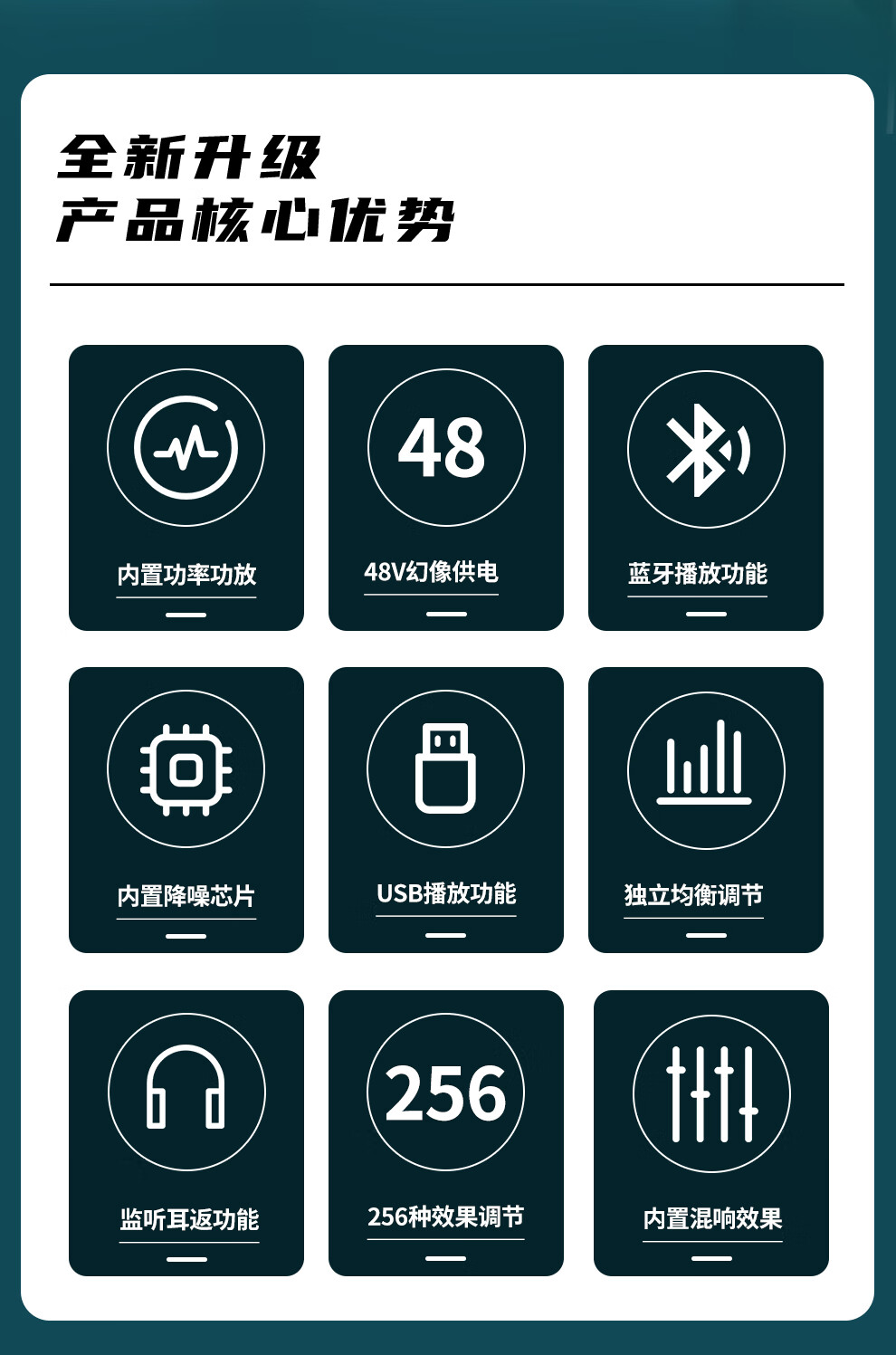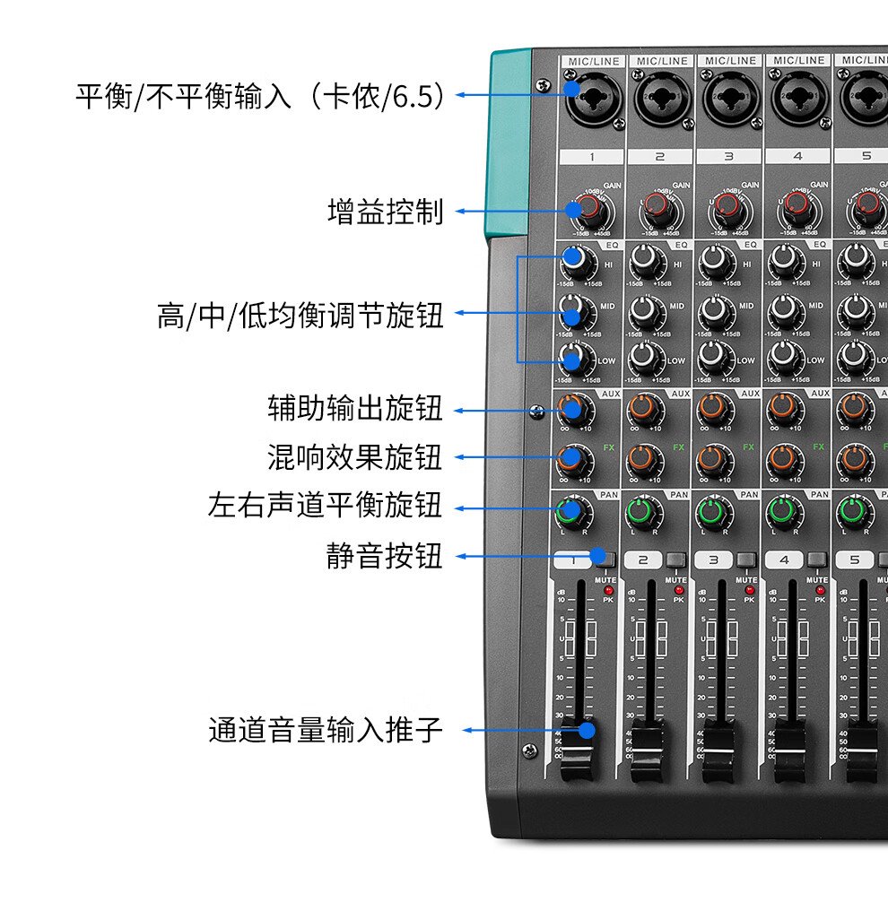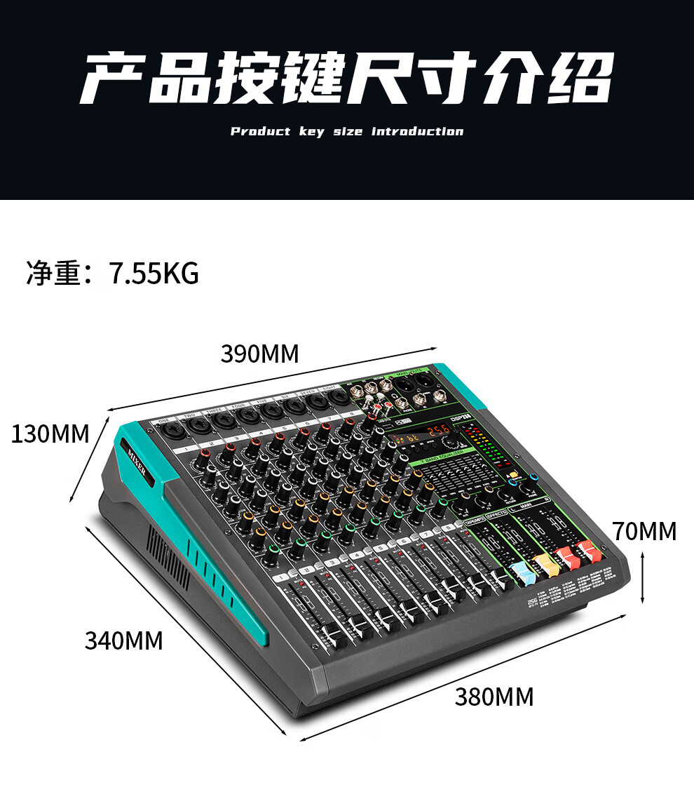 depusheng 得普声GT2调音台带功放一体机256种预设效果蓝牙USB无线播放大功率8路舞台演出婚庆会议家用乐队 500W+500W带功放调音台