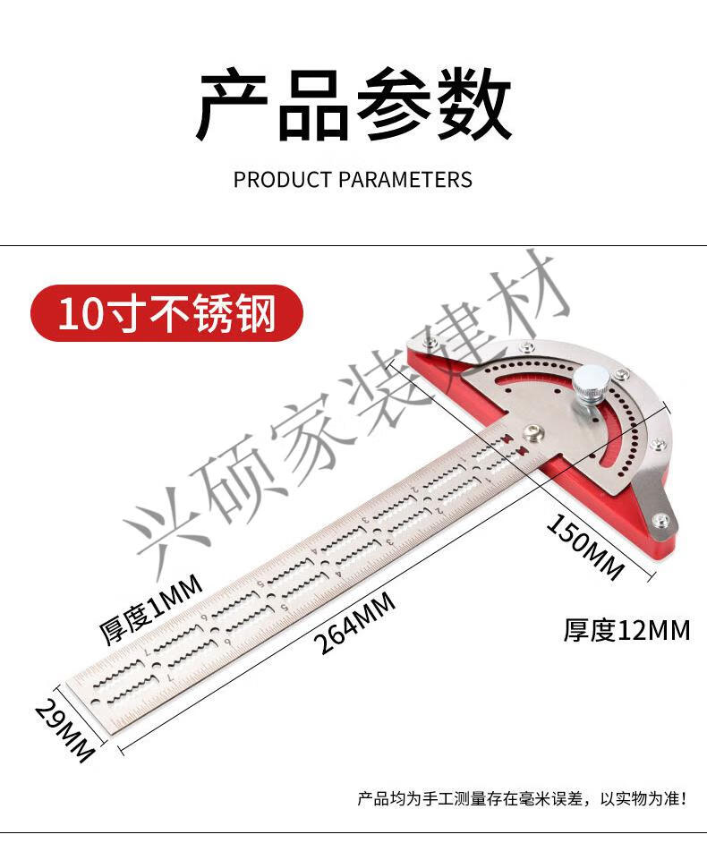 Xiali carpentry ruler edge ruler angle ruler woodworking design measurement tool multifunctional arc semicircle movable square ruler 10 inches