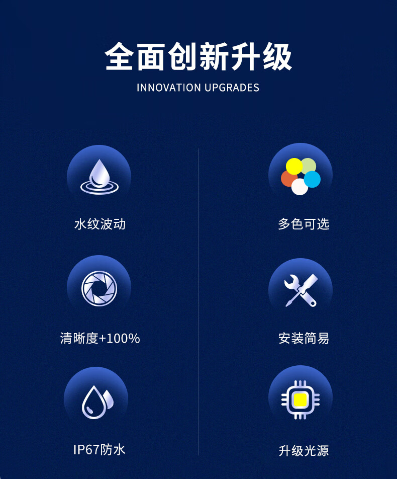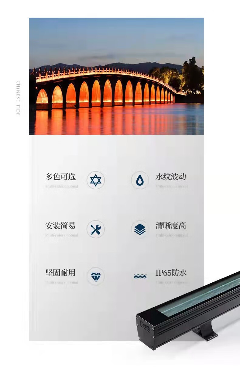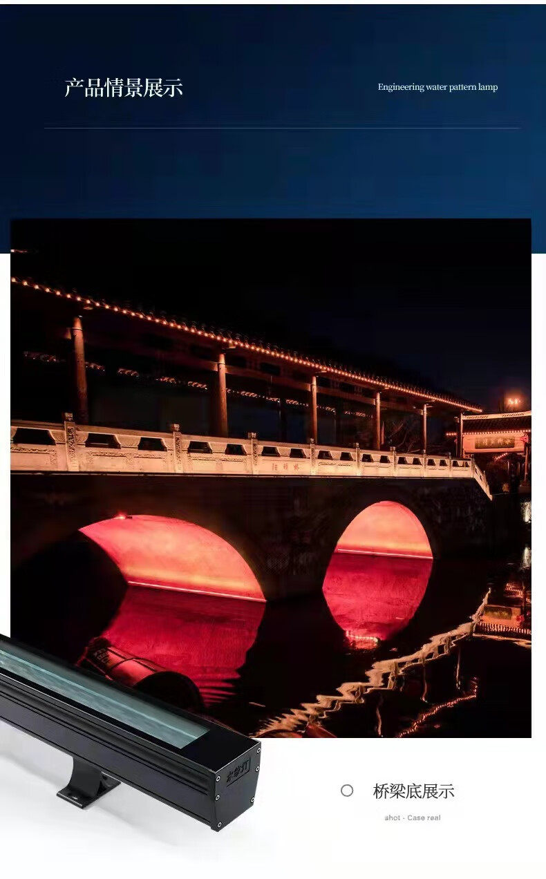 Lampe d'extérieur dynamique à motif d'eau 3D, étanche, LED, mur, sol, pont en arc, éclairage de fond, atmosphère d'eau qui coule, rondelle murale monochrome Hu lumière bleue