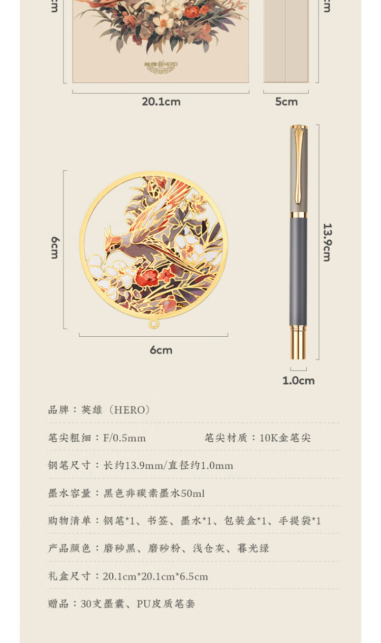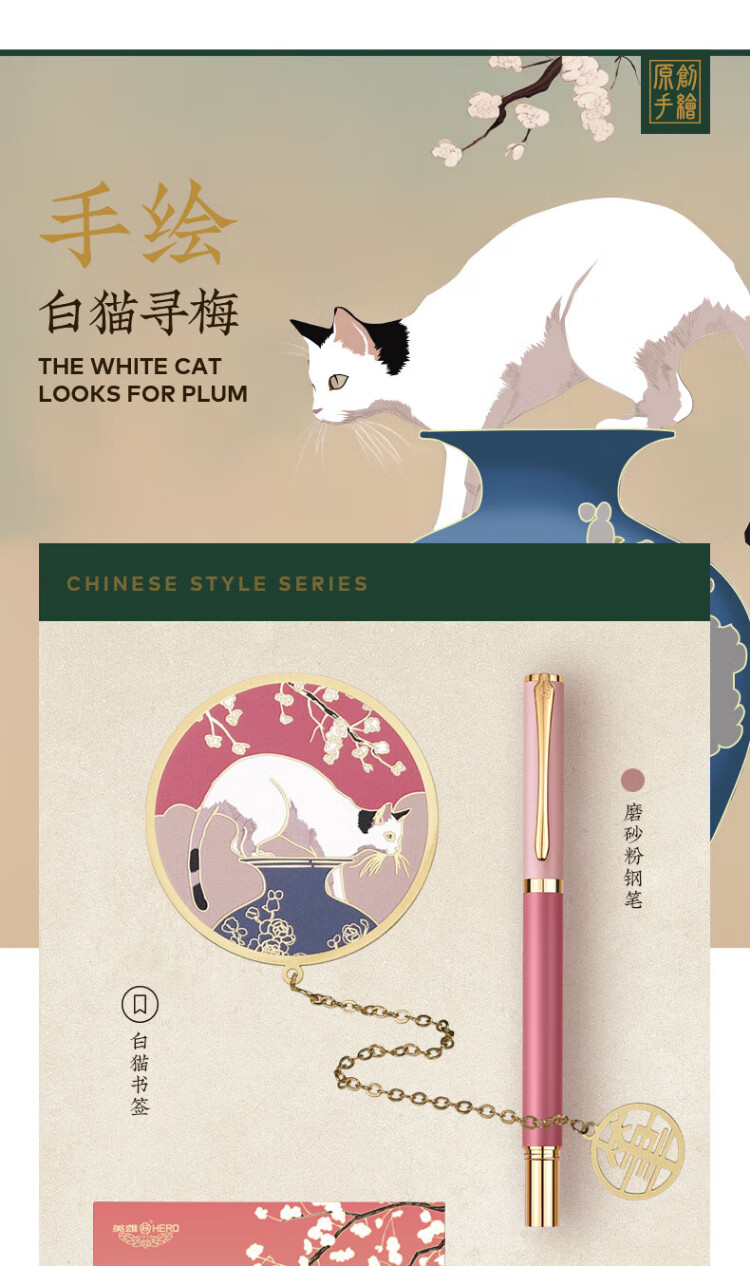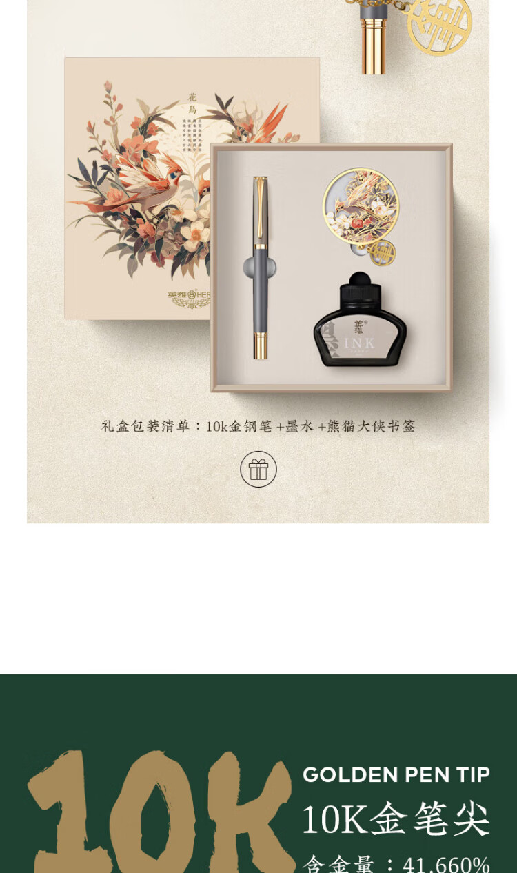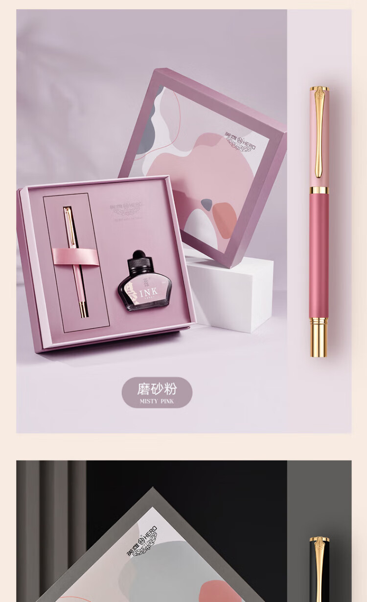 英雄【热门商品】钢笔女士精致10K金笔商务男士成人练字高端礼盒高颜值学生生日送老师礼品定制礼物 磨砂粉(寻梅书签套装)