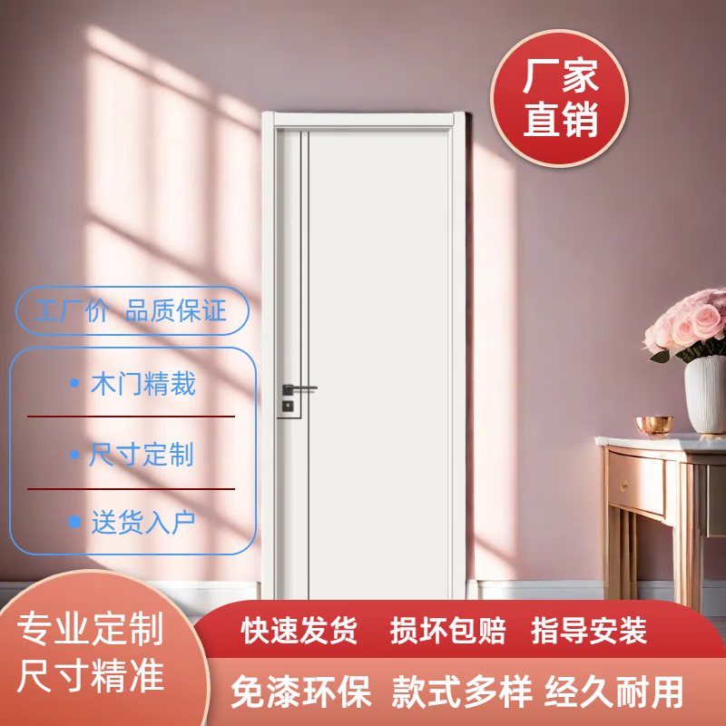 卧室木门房间门简约室内门门框木门定制自装木门隔音隔断门工厂销 E-026暖白色 单门扇