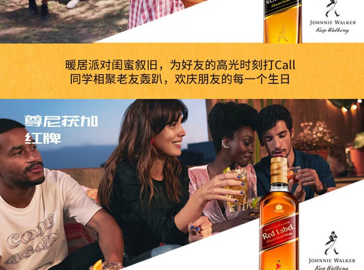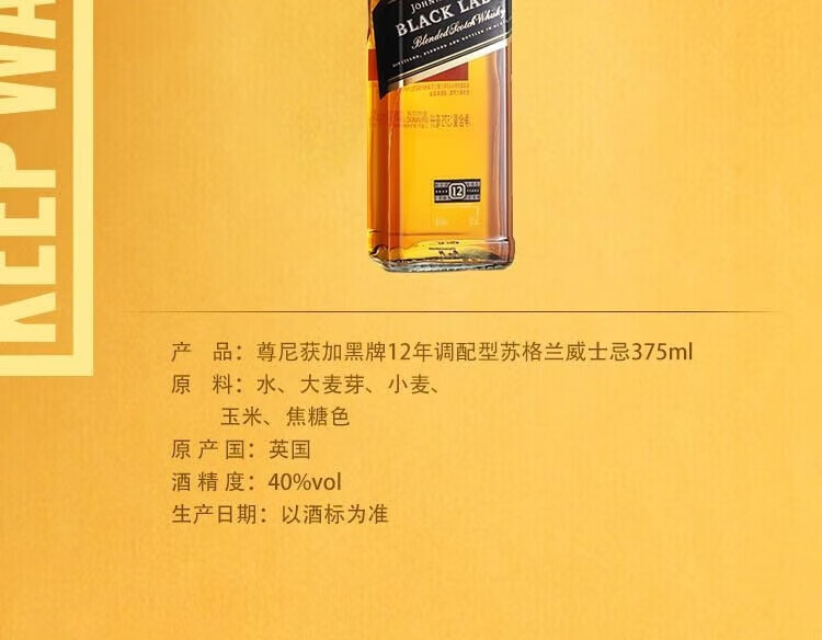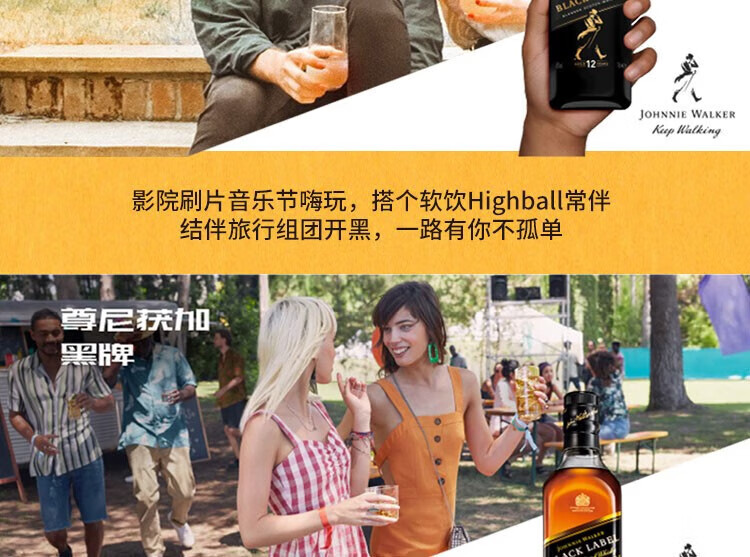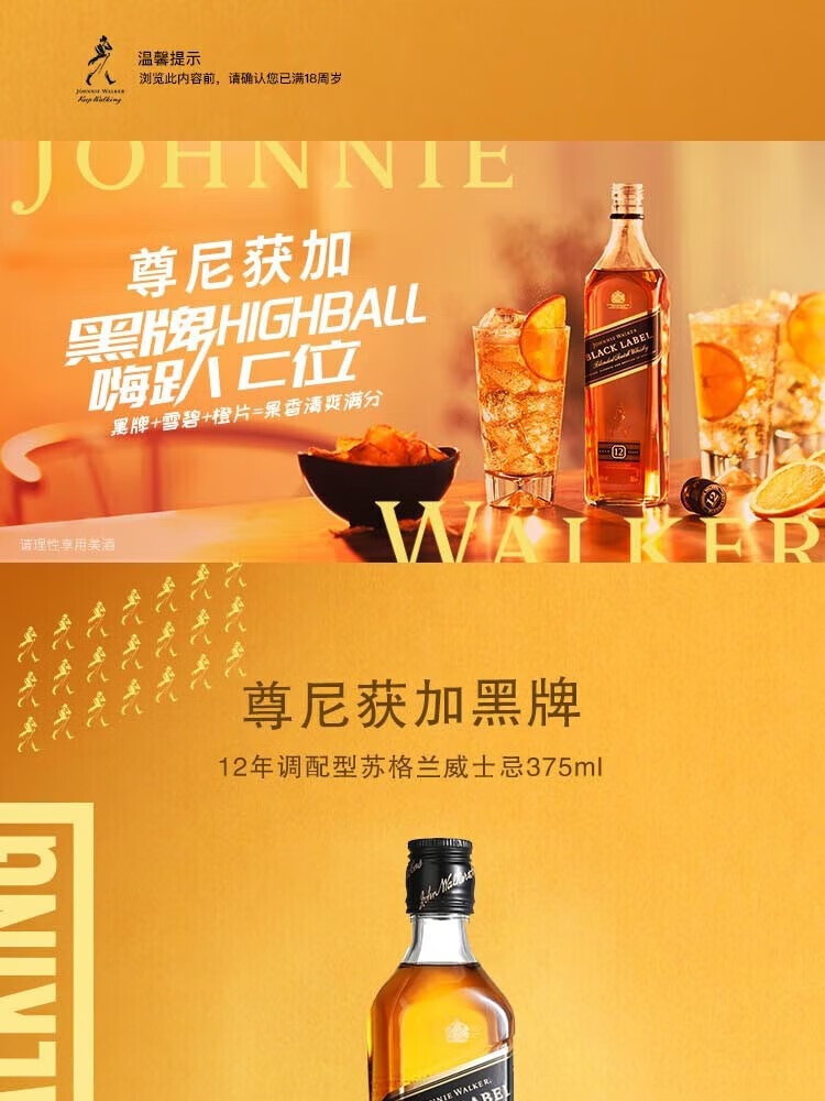 尊尼获加黑牌黑方12年 苏格兰威士忌 调和型 英国进口洋酒鸡尾 高华仕行货 黑牌小酒伴50ml