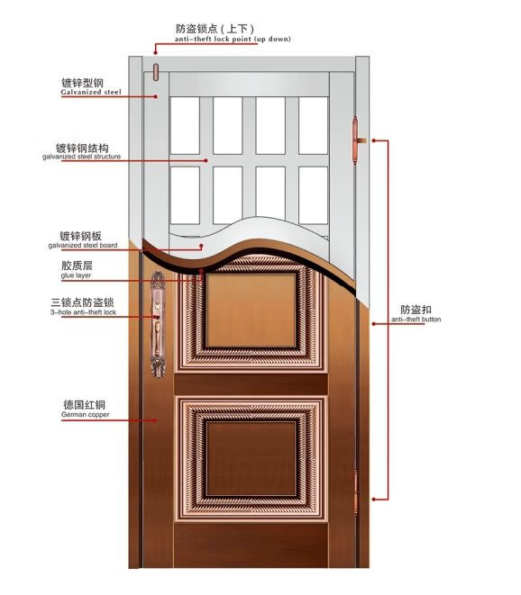 维诺亚钢门304镀钢豪华中式农村别墅庭院自建房堂屋双开四开大门 钢铜材质0.8厚度 色卡