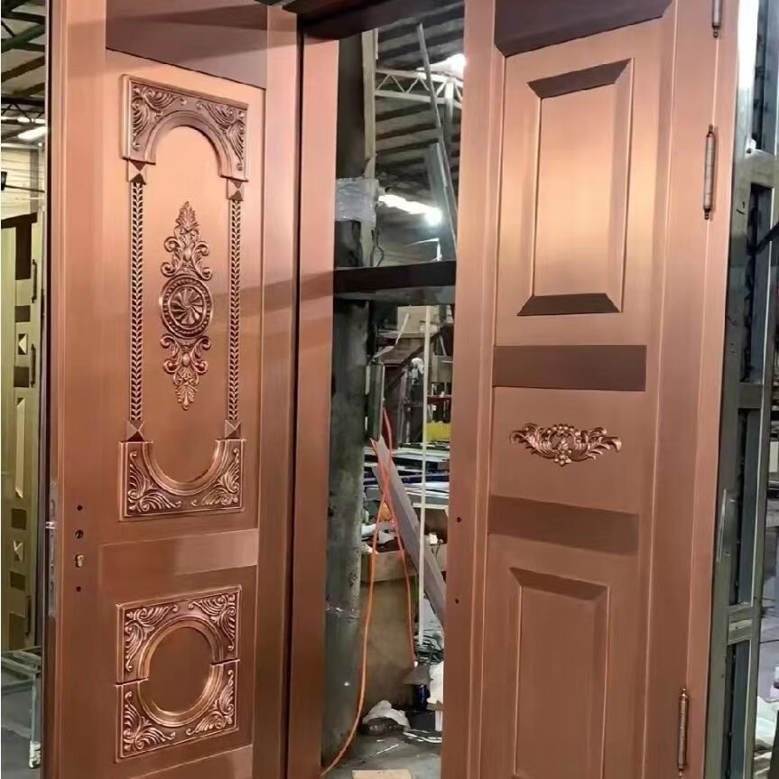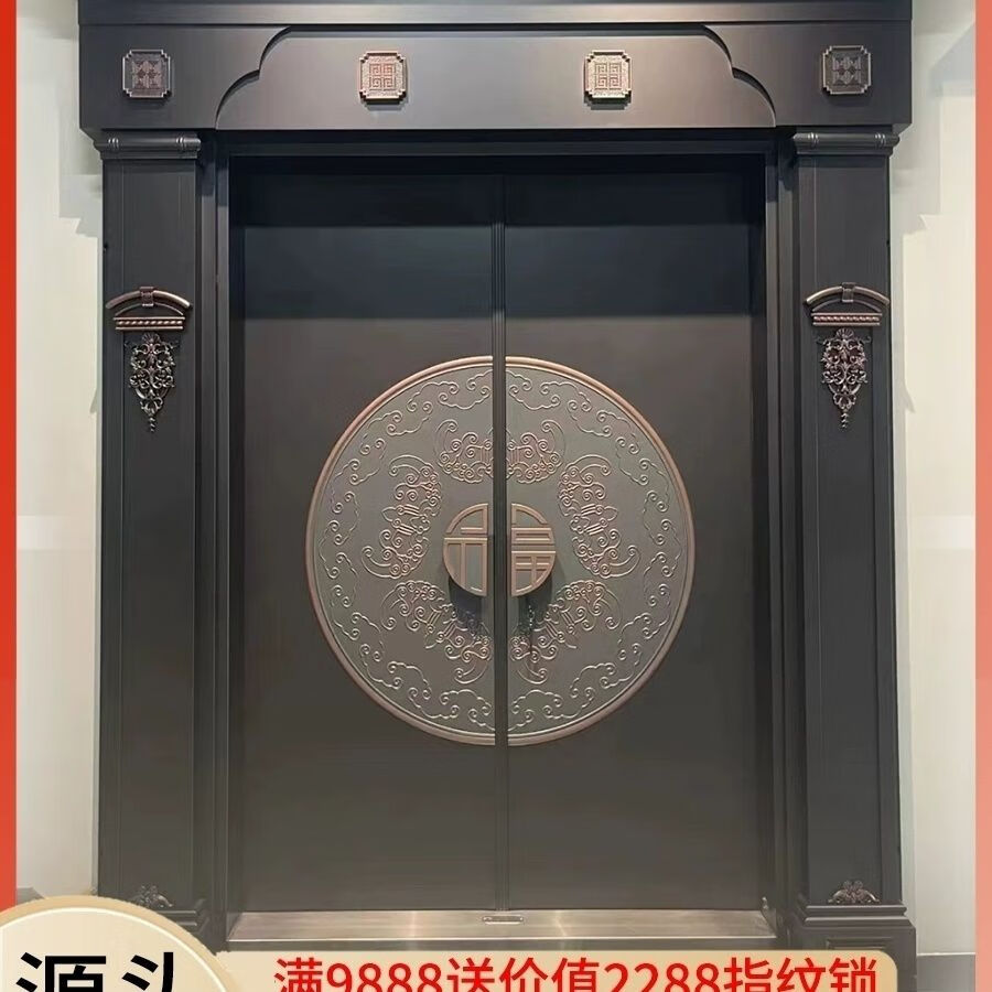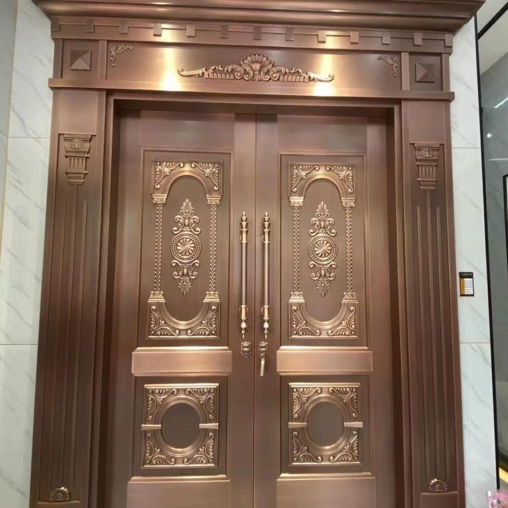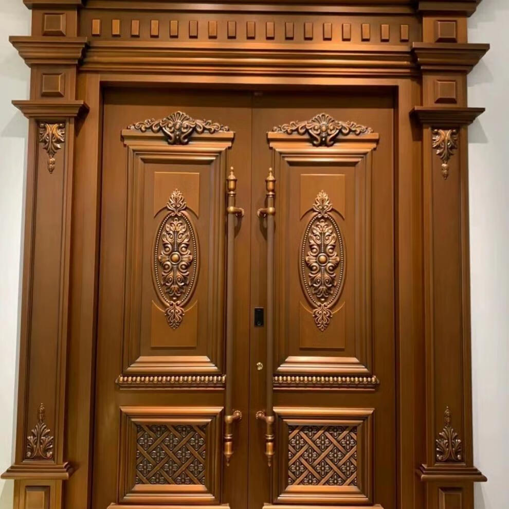 维诺亚铜门别墅大门双开门农村自建房镀铜对开子母入户门铸铝门定制 钢铜0.8镀锌龙骨PVC防火平方价