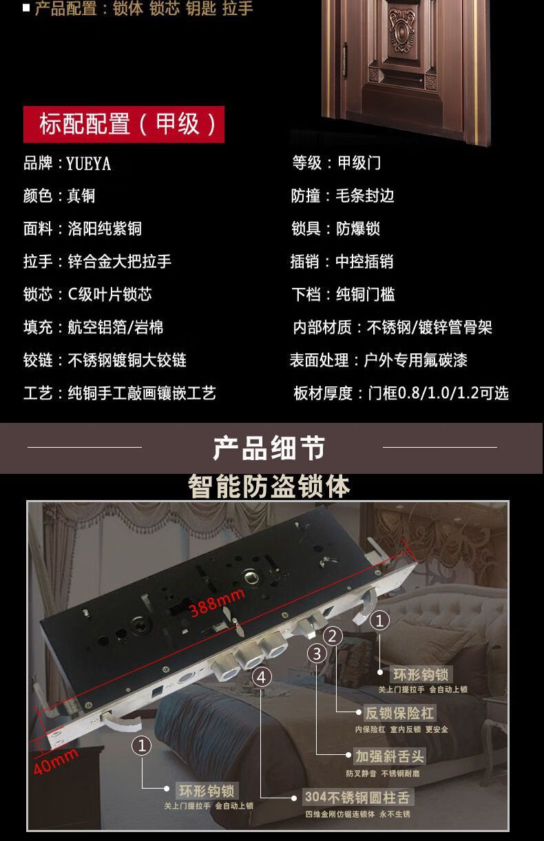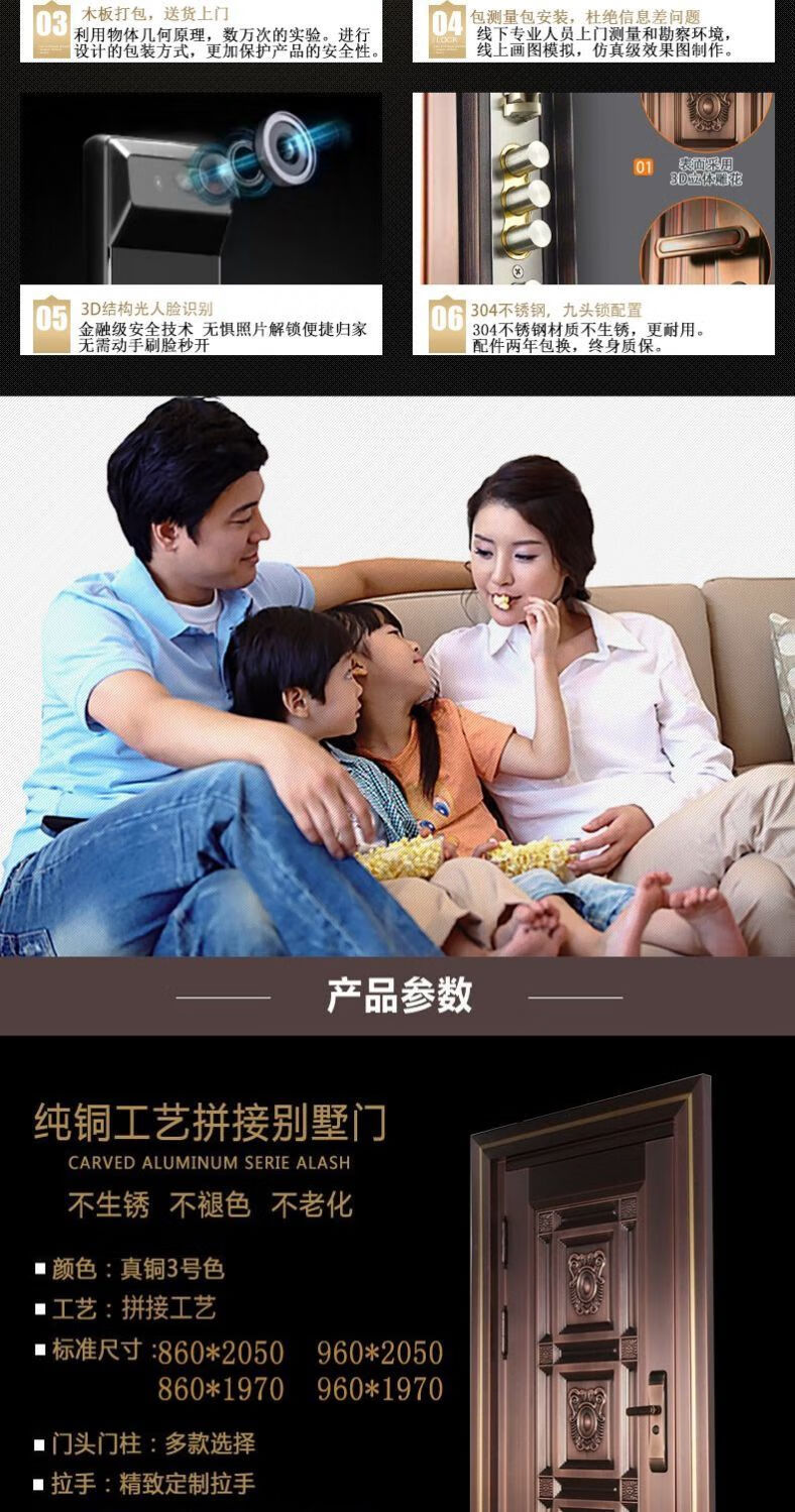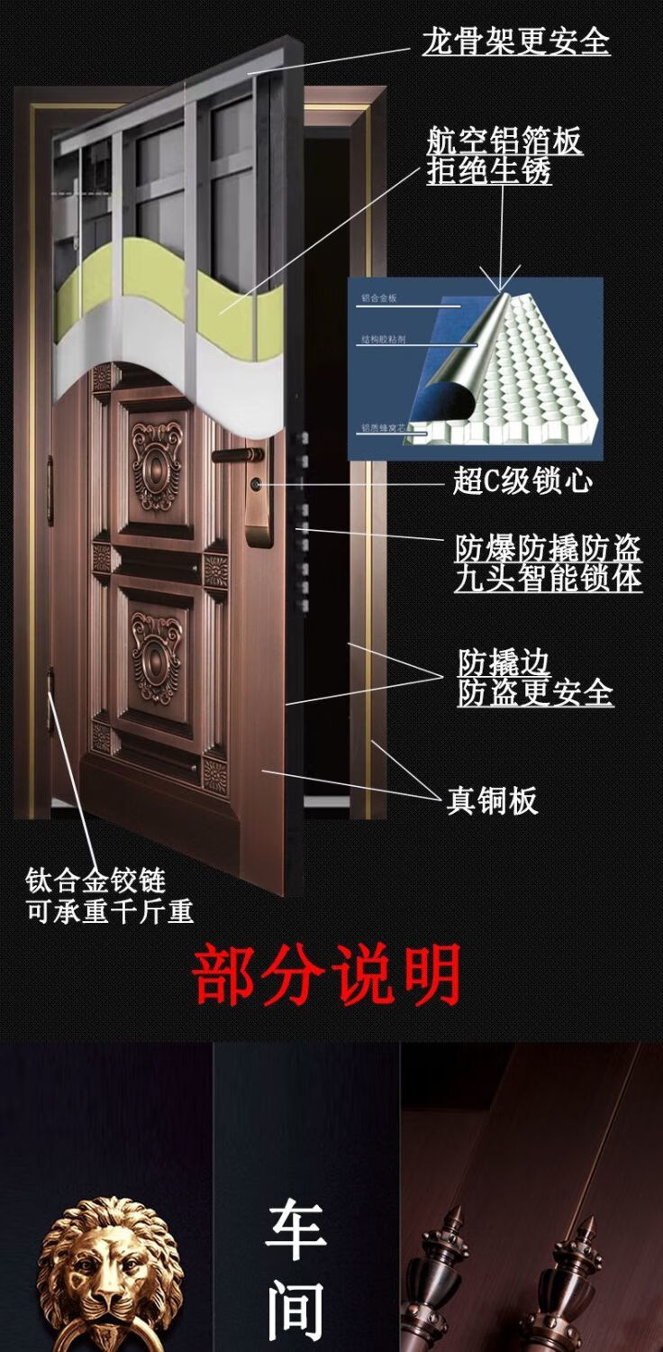 维诺亚铜门别墅大门双开门农村自建房镀铜对开子母入户门铸铝门定制 钢铜0.8镀锌龙骨PVC防火平方价