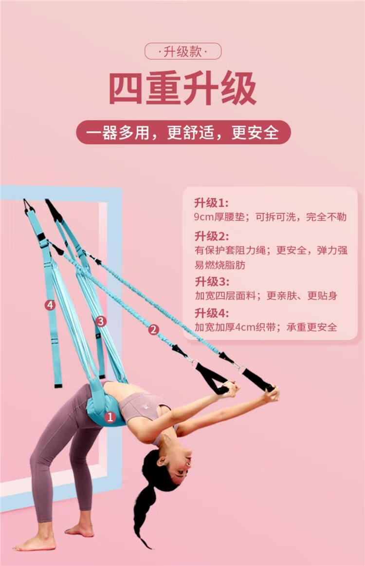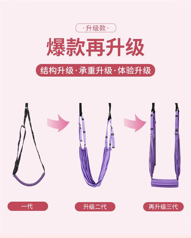 Jatu Dace suspendierter Trainingsgürtel Salto Hilfsartefakt Spannseil Ein-Wort-Pferdedehnung untere Taille Lufthandstandspanner zweite Generation lila + Widerstandsseil lila 2 Stück + Handzugring 2