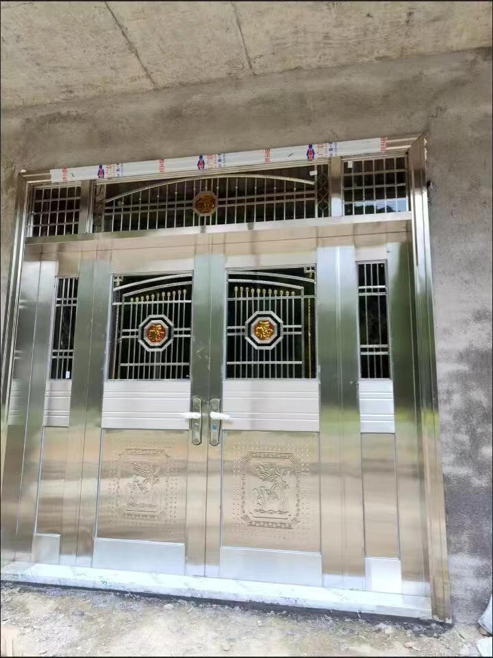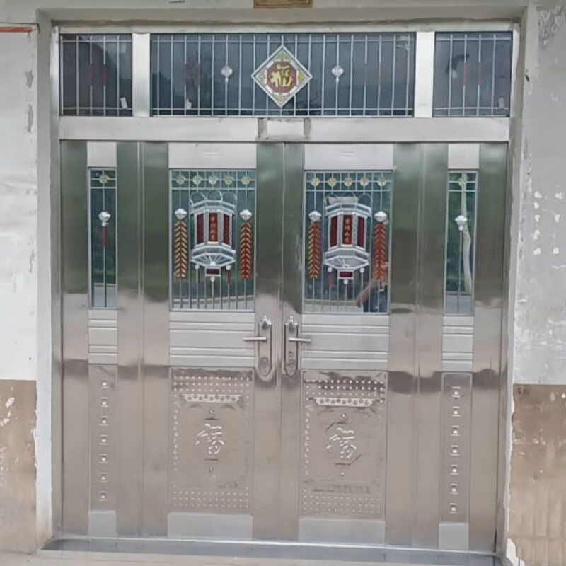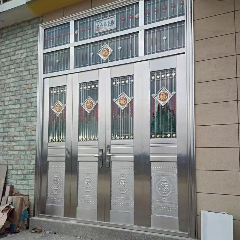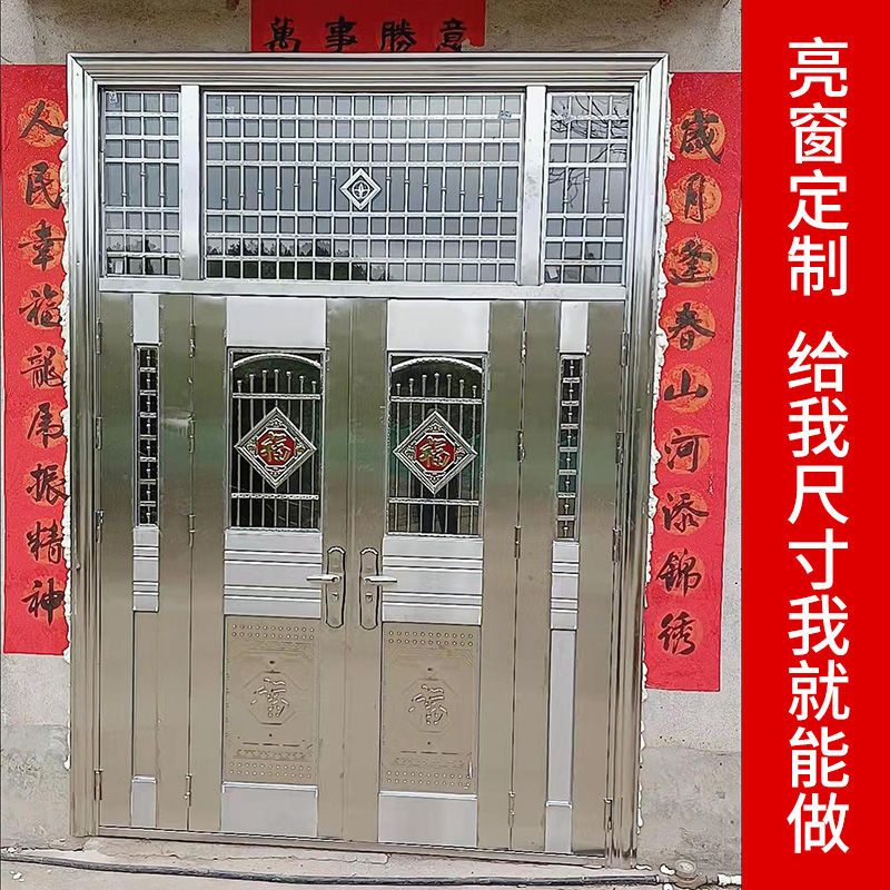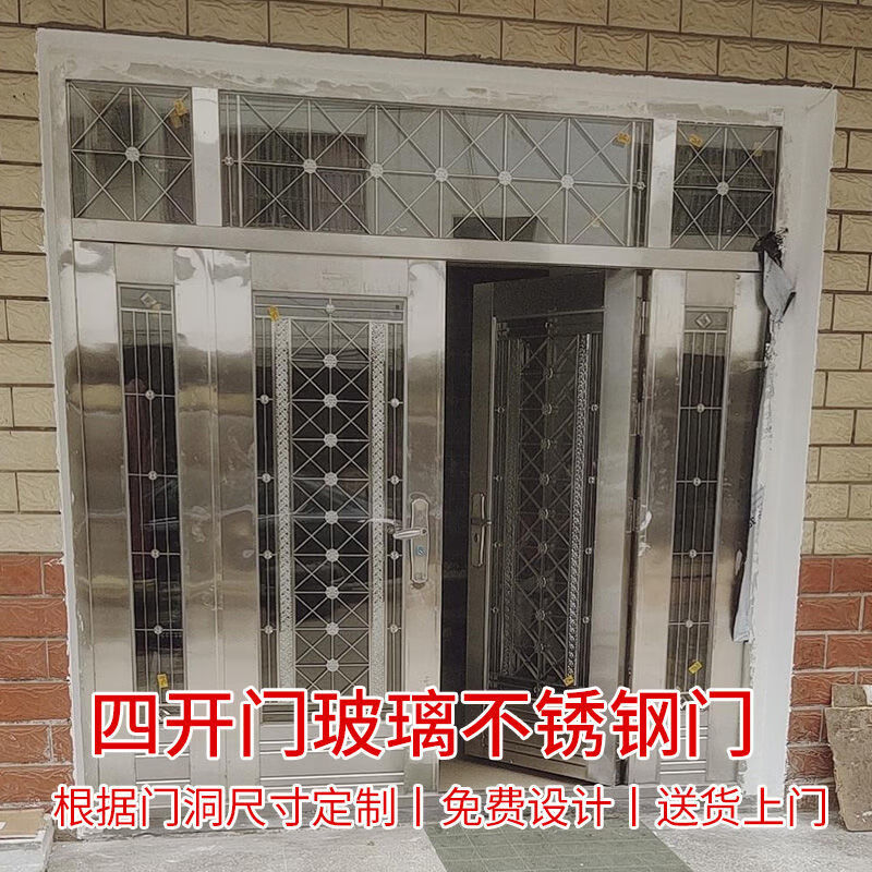 美克杰不锈钢门纯304加厚不锈钢防盗门四开门白钢门家用玻璃乡村安全门 加厚不锈钢 根据您的尺寸定制