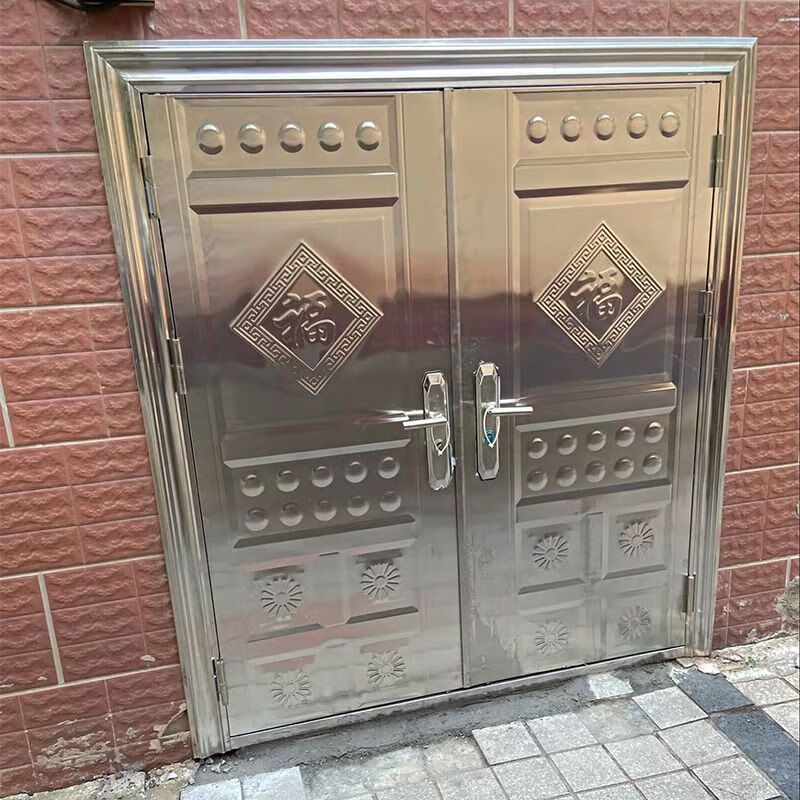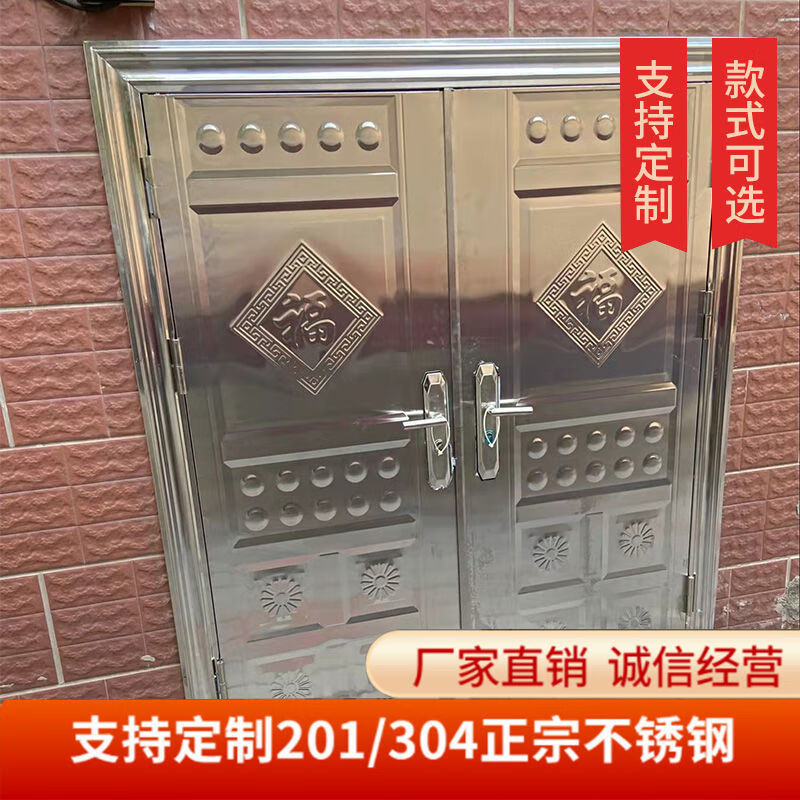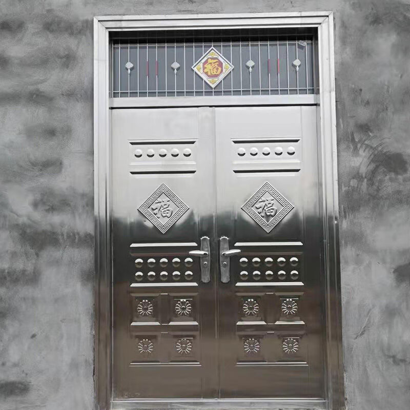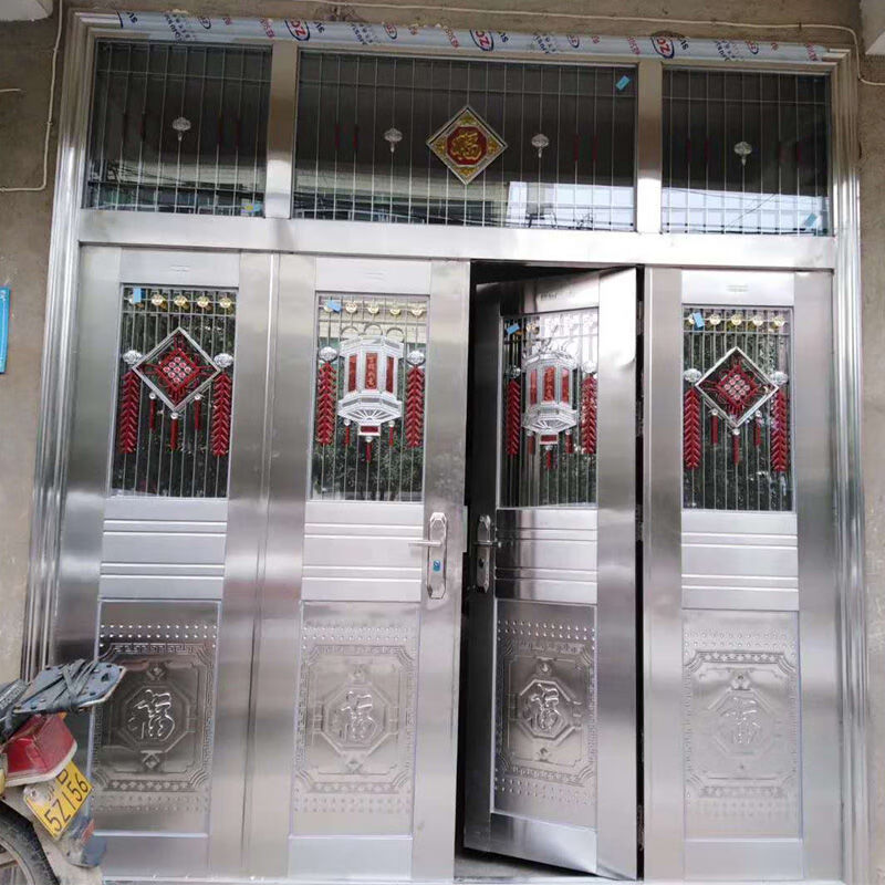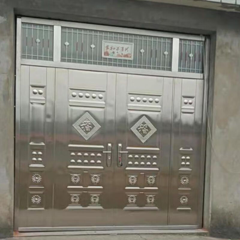 美克杰不锈钢门纯304加厚不锈钢防盗门四开门白钢门家用玻璃乡村安全门 加厚不锈钢 根据您的尺寸定制