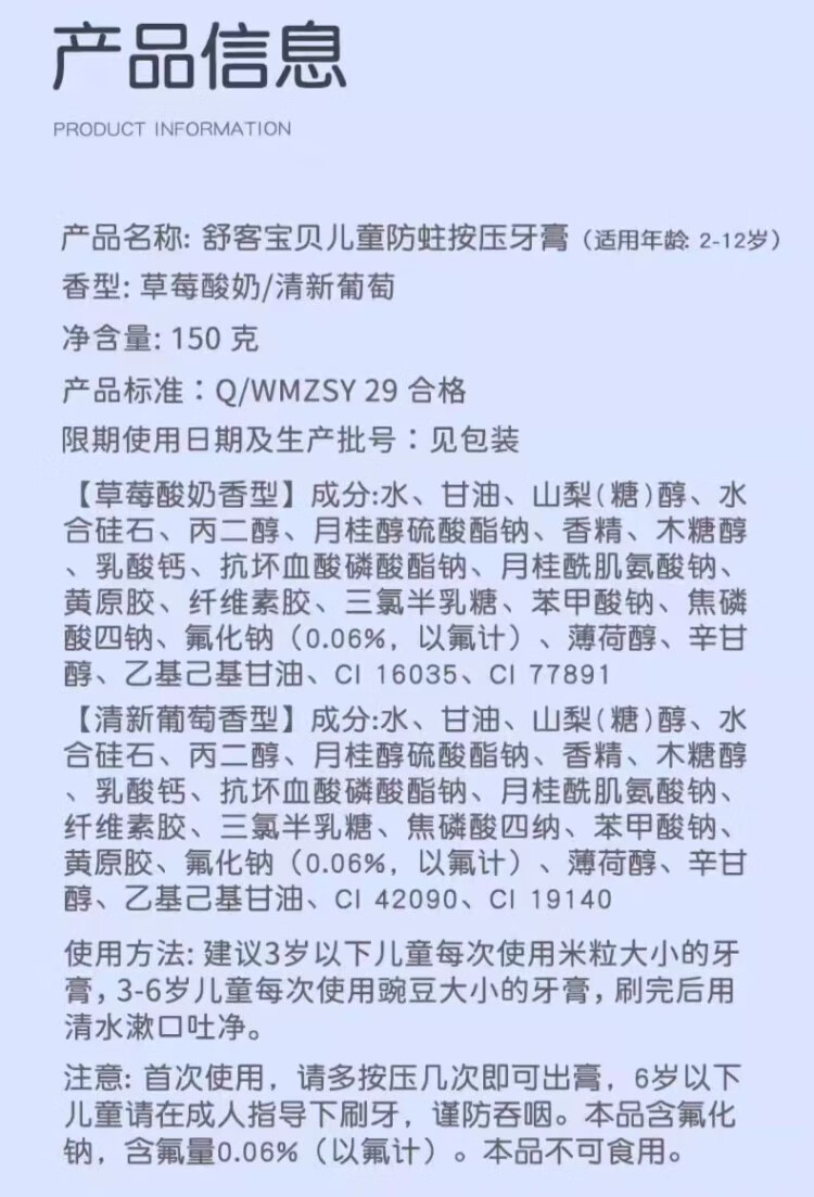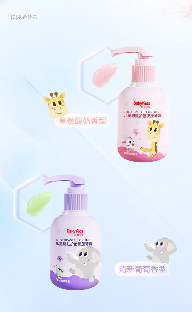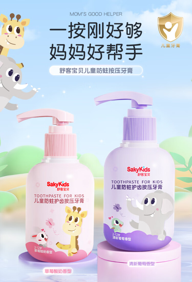 Shuke push-type toothpaste for children and babies containing fluoride and anti-moth for 3 to 6 to 12 years old and above, strawberry flavor + fresh orange flavor 60g 2 pieces