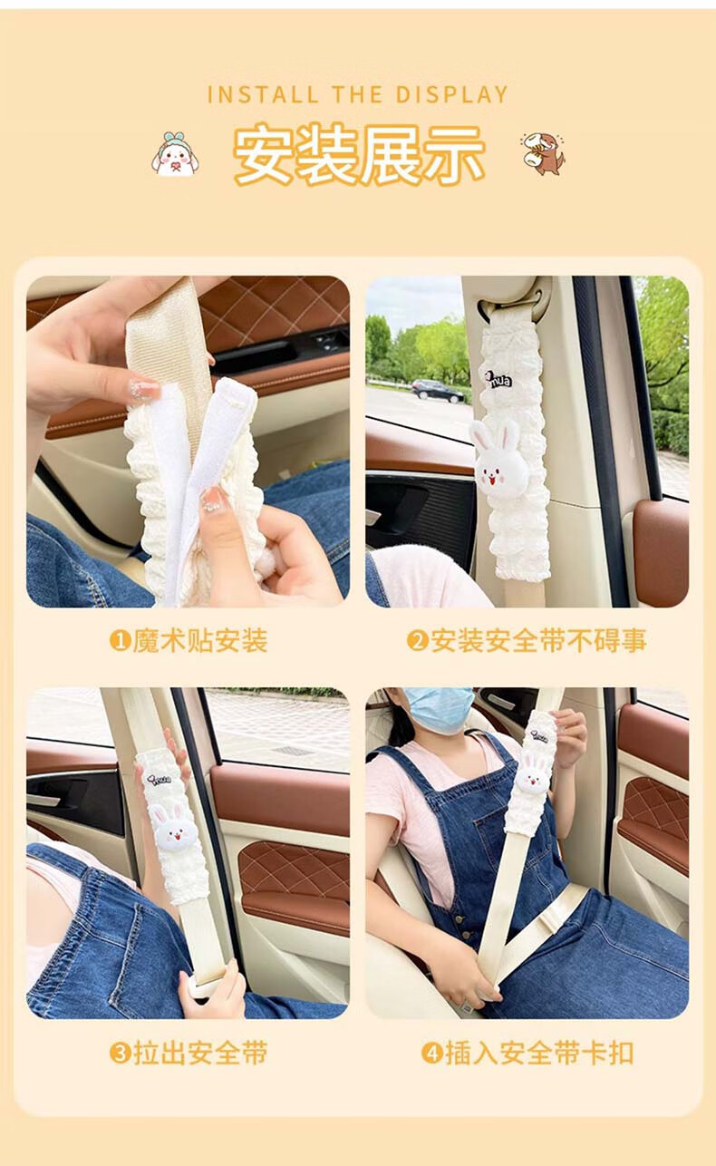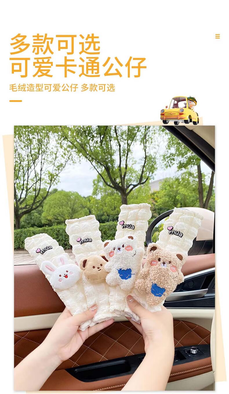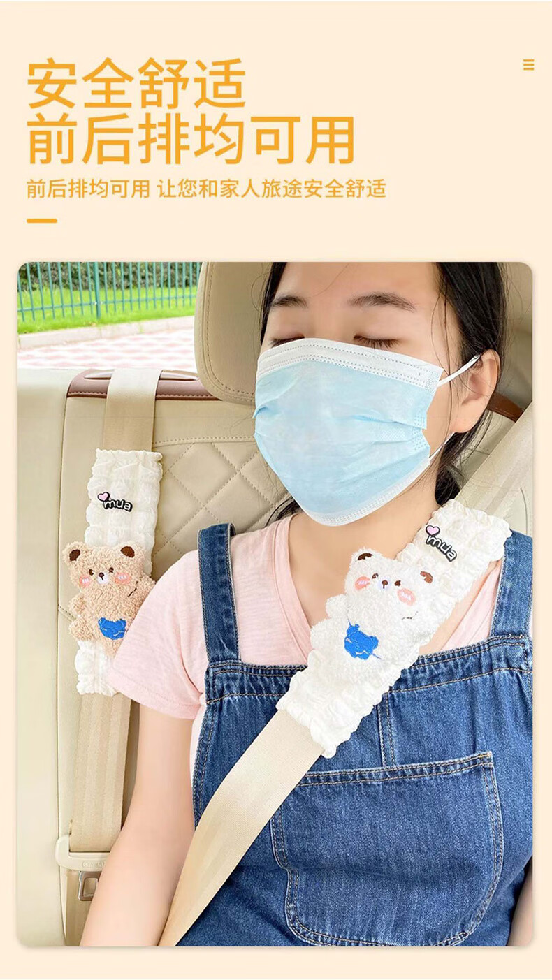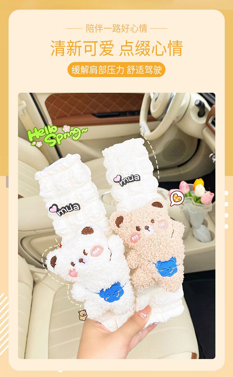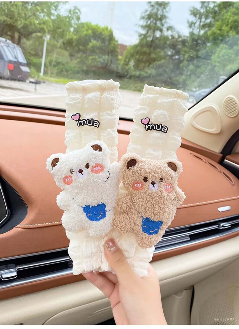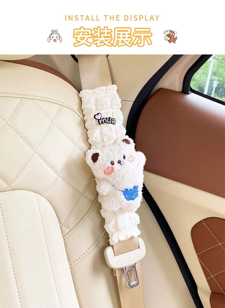锋上汽车安全带护肩套创意可爱儿童车内防勒保险带一对车内装饰保护套 泡芙护肩【白熊+棕熊】