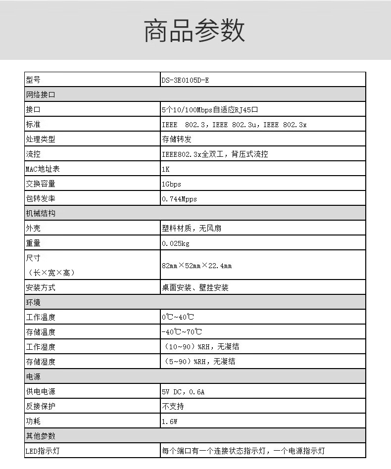 海康威视监控交换机 5口8口百兆千兆交换机 家用办公企业远程监控器安防设备网络分流器网线集线分线器 塑壳【5口千兆非POE】 DS-XS05GD