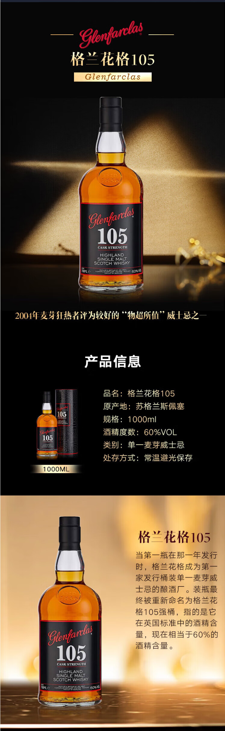 格兰花格(Glenfarclas)10年/12年/105单一麦芽威士忌洋酒礼盒 原瓶进口 海外 格兰花格10年700ml