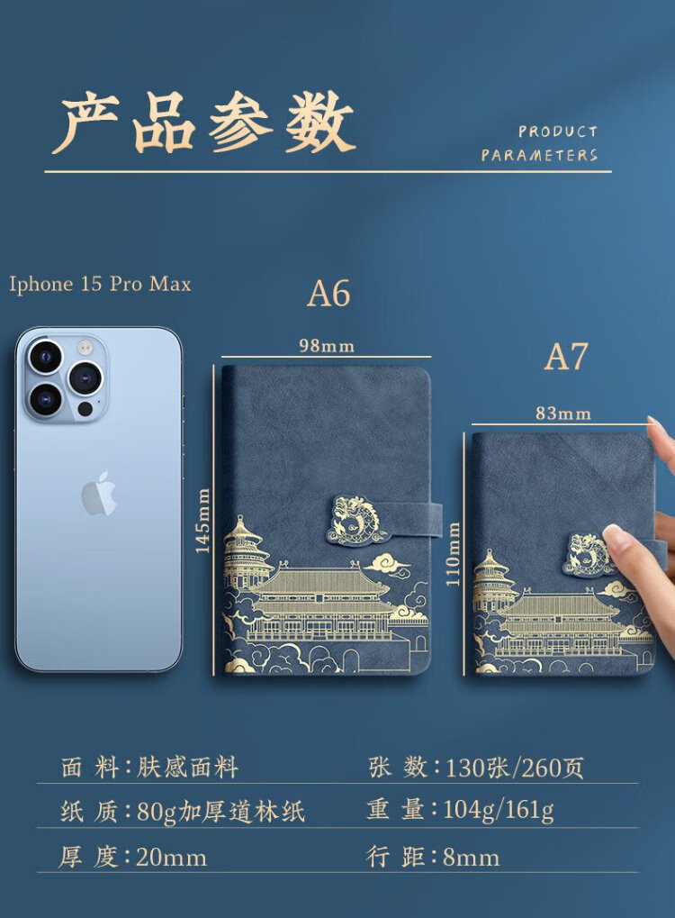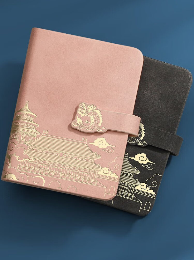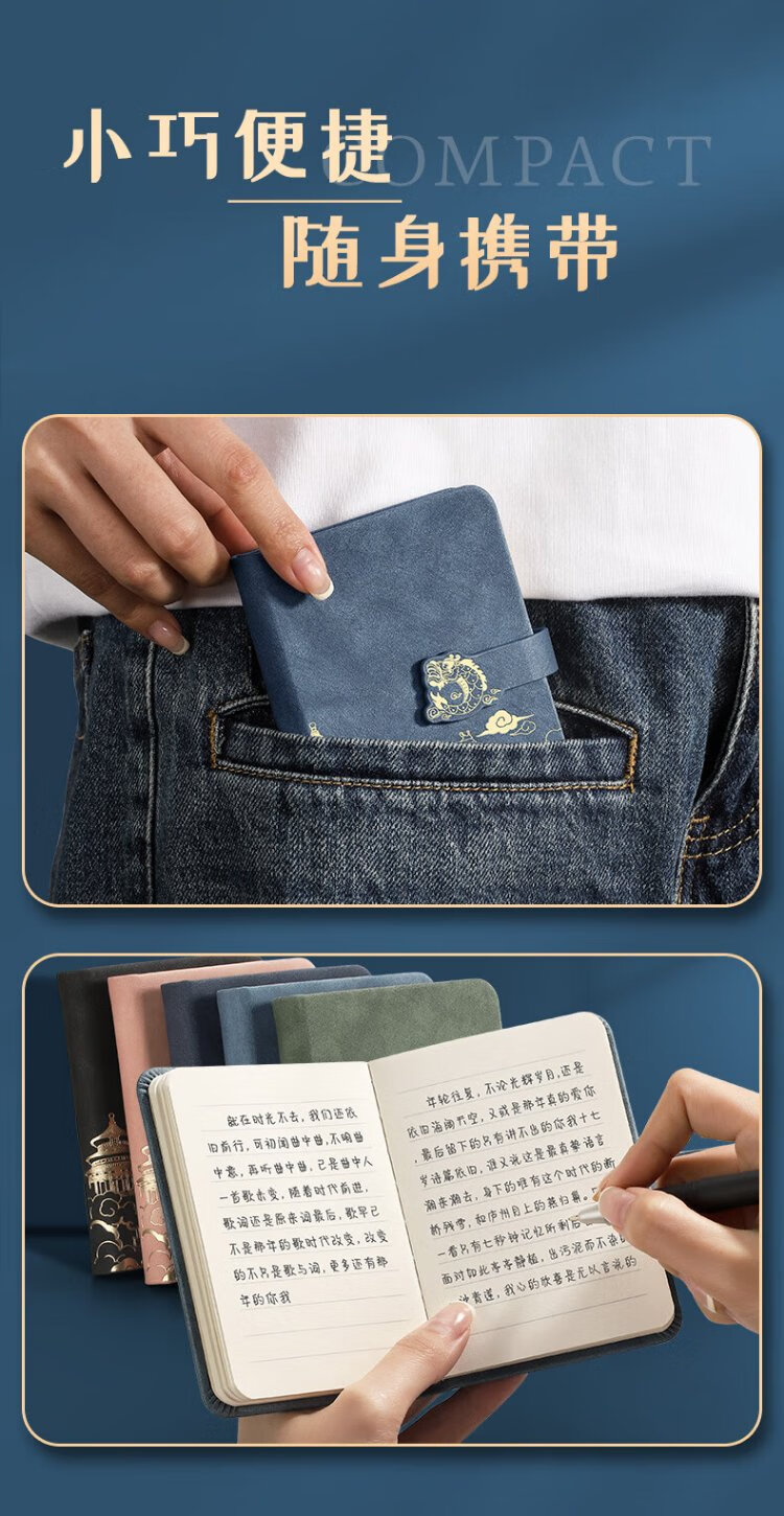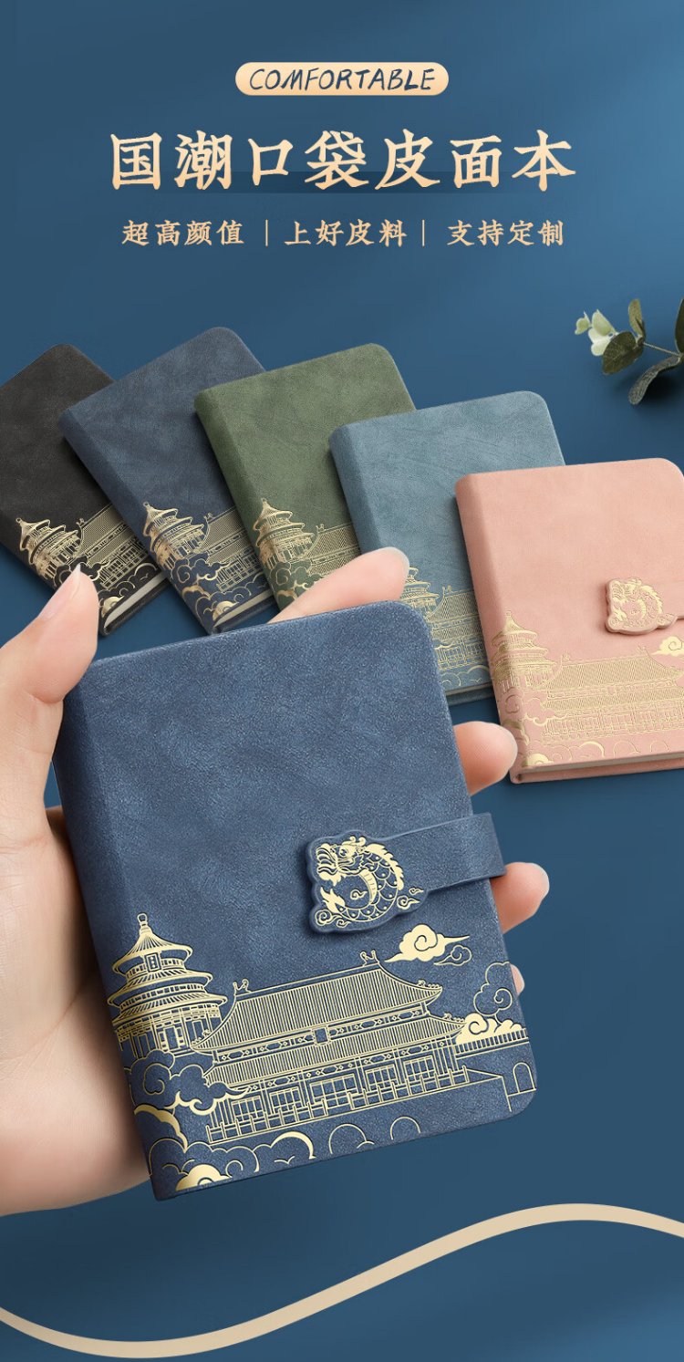 淼许 小本子口袋记事本定制国潮随身笔记本本子加厚皮面本故宫文创迷你日记本备忘录支持订制logo A7黑色/加厚260页+随身笔